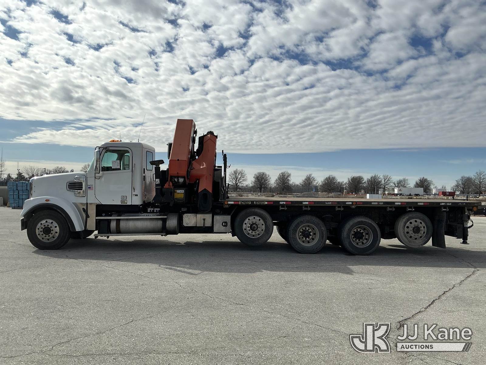 Palfinger PK76002-EH, Knuckleboom Crane s/n 100179532, with 4 Hydraulic Outriggers, mounted behind cab on 2015 Freightliner Coronado 122 T/A Flatbed Truck, 14.9L L6 DIESEL 6X4, Auto, A/C, with Has Palfinger Remote Control, 2 Air Lift Axles, (151,523 miles) (Runs, Moves, Seller States: Operates) (Check Engine Light On) This is a Titled Item NOTE: This unit is being sold AS IS/WHERE IS via Timed Auction and is located in Kansas City, MO. Inspection & preview days for this unit are the 2 business days prior to the first day of items closing for this auction, item is located at 962 Tel Aviv Ave Kansas City, MO 64153 and hours of operations are 8a-4p. For pre-sale questions, please contact Ricky McPherson @ (816) 610-2250. (Buyer is responsible for removal. Assistance by consignor or JJ Kane Auctions is not assured.)
