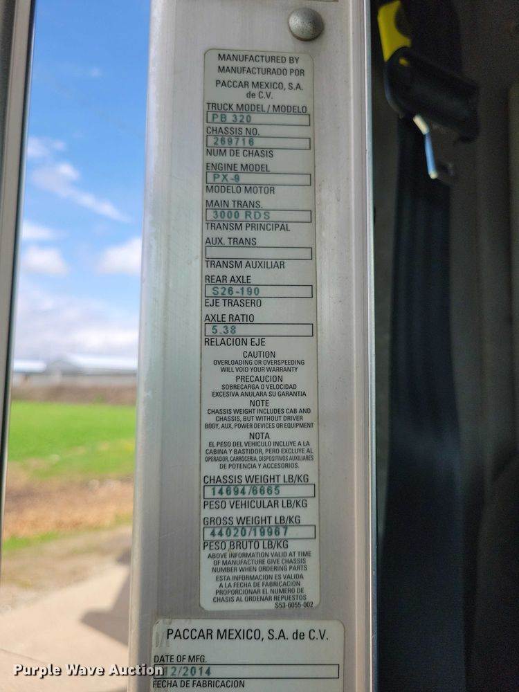 2017 Peterbilt PB320 refuse truck, Miles: Unknown, Hours: 9,780 on meter, VIN: 3BPZLJ0X6HF108038, Engine, Paccar PX9, Cylinders: 6, Fuel...
