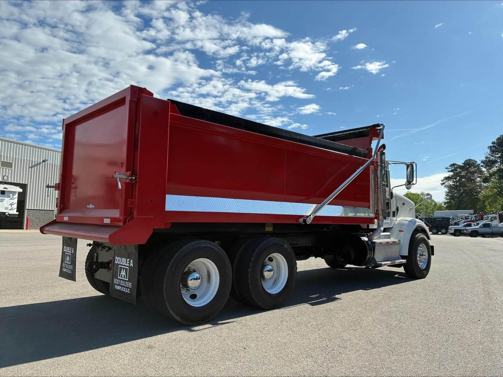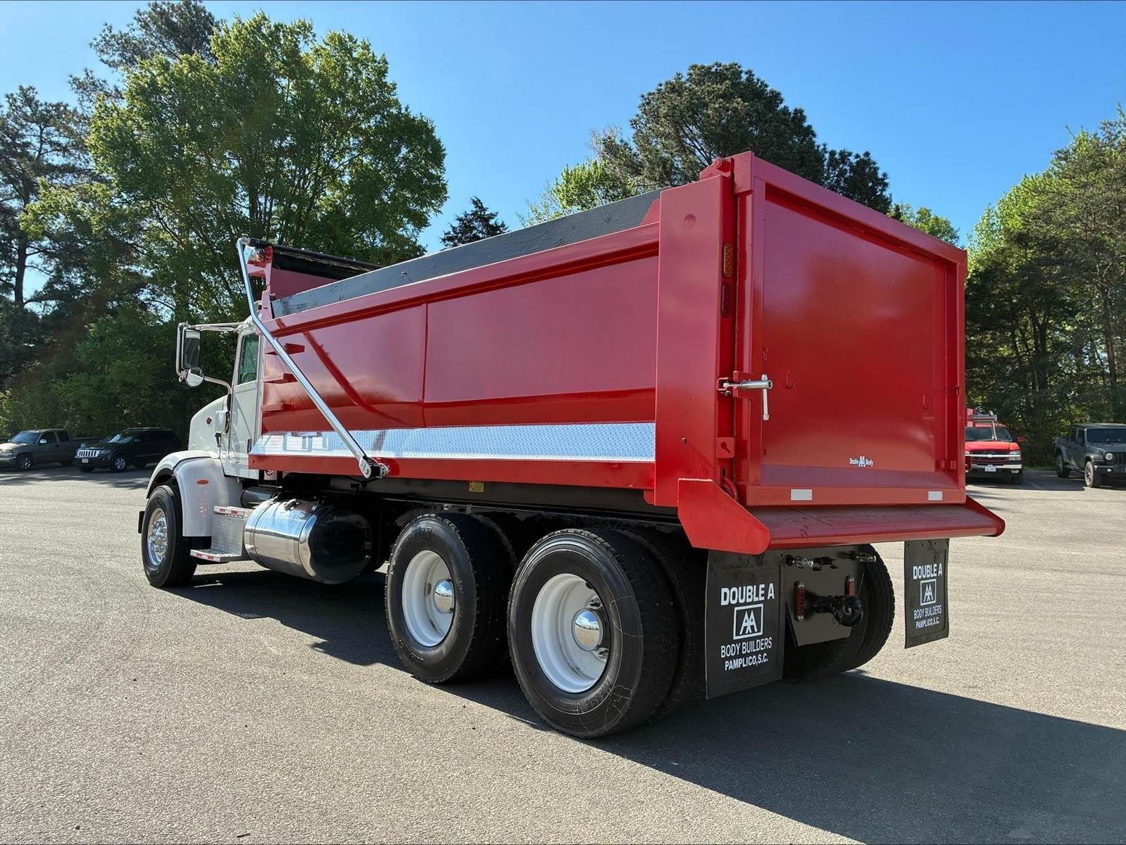 Tandem, NEW 17' Double AA Steel Dump w/50" Sides, ISX12 Cummins 425 HP, 8LL, 4.33 Ratio, 3 Stage Engine Brake, Air Trac, 224" WB, 20'11" Bridge, Diff Lock, 13,200 FA, 40,000 RA, Electric Tarp, Air Tailgate, Swivel Pintle Hitch w/Air, 7 Prong Pole, P/S, A/C, AM/FM CD Bluetooth, Heated Mirrors, Cruise, Tilt/Tele Wheel, Dual High Back Seats, Peep Window, Power Passenger Window, 100 Gallon Aluminum Fuel Tank, 3154/80R22.5 Steer Tires on Aluminum Wheels, 1R22.5 Tires on Steel Wheels