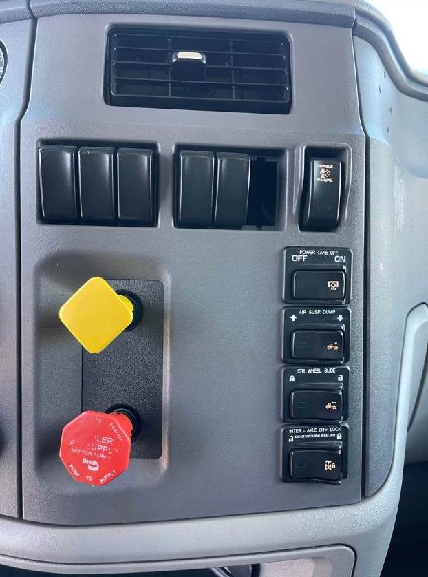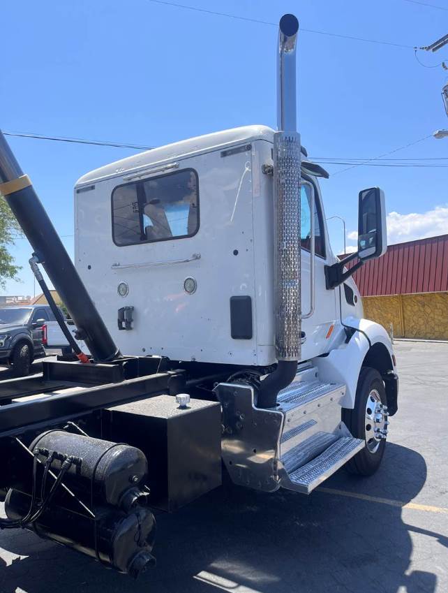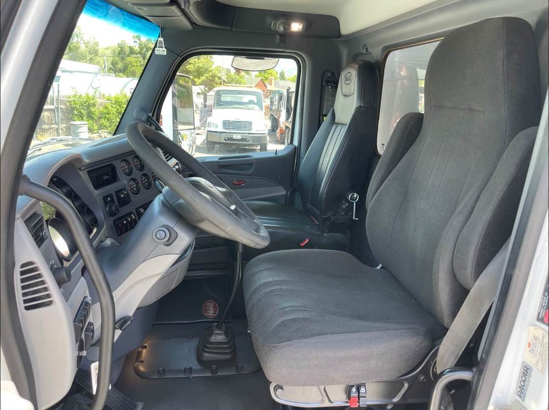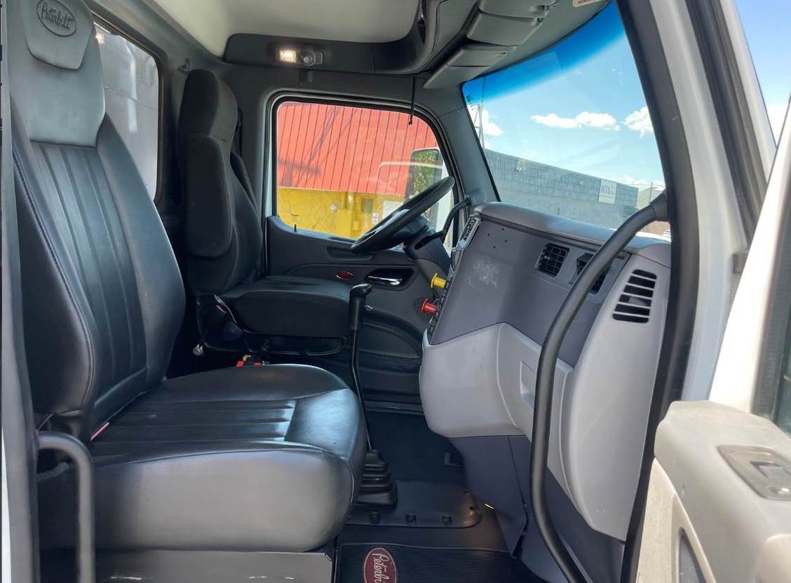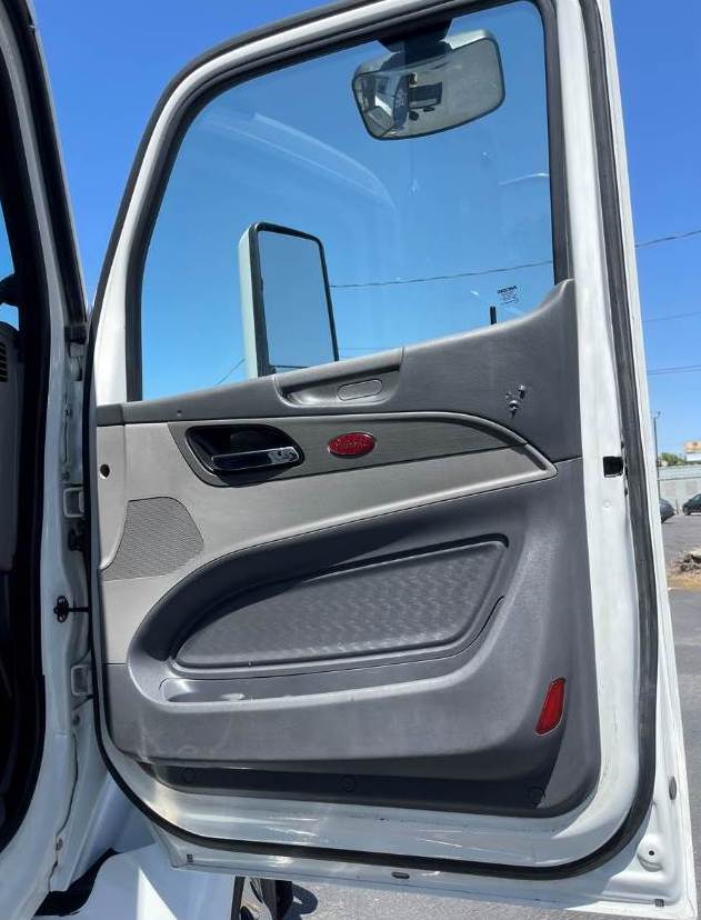 This is a 2015 Peterbilt 579, Tandem truck with a New 15' Dump Body, MX-13 -12.9 Ltr, Engine, 10-Speed Manual Transmission, Full Air-brakes, Jake Brake, Leaf-Air Suspension, 455+ H.P., Aluminum Fuel Tanks, (1) Stainless Steel Stack, Chrome Grill, Aluminum Steps, Power Steering, Air-ride seat w/ arm rests, Comfortable fixed passenger seat, Power Windows/Locks/Mirrors, AM/FM/CD/Aux radio w/ Speakers, Cup holders, A/C and Heat, Tinted Glass, Dump body Controls in the Cab, DEF/DPF, Inner Axle Locks, W.B. 191", Battery Box System, Large painted mirrors, Site Mirrors and Rear window, Stainless Steel Sun Visor (not shown), Polished Aluminum Wheels, Front axle 12,000 lbs. (315/80RX22.5)  Rear Axle rating 40,000 lbs. (295/75R22.5) - Wheels: 10 holes 22.5 (Steel disc). C.Y. 14.34