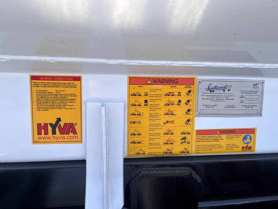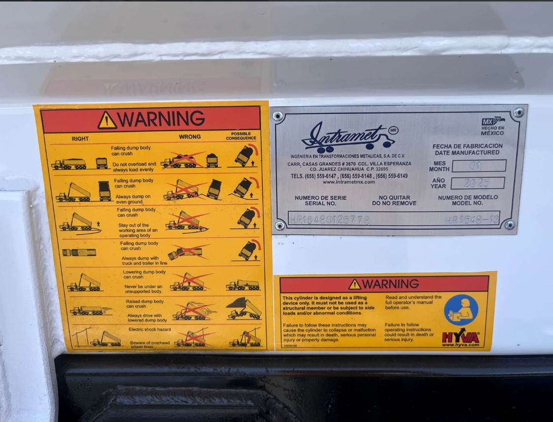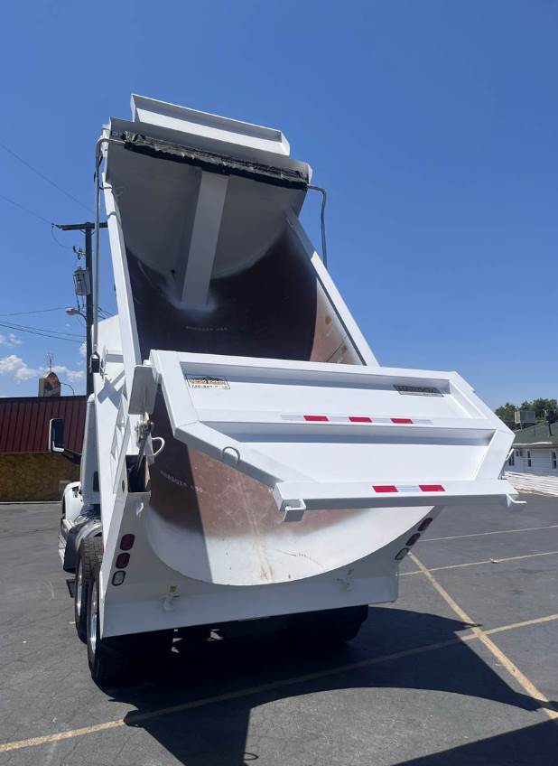 Body Specs: NEW 15' Half Round Style, Sides 48" Standard Height, HARDOX 450, Subframe Length: Always 1 ft shorter than interior body dimensions, Includes: Commercial Grade 1/4" Hardox 450 wear plate (Sides, Floor, Tailgate), Dual Cylander Air Actuated Tailgate Latches, Multi-stage Diamond Mounted H.D. Top rail 4" X 4" X 3/16", Exterior Steps (Driver Side), Dual Action Gate Sysyem: High Lift/ Conventional Operation, Dual Cylander Air Actuated High-lift Tail-gate (Inside position), Ladder on right side, Dual Cylander Air Actuated Tailgate Latches, Multi-Stage Hoist, Haudraulic Tank, Heavy Duty 8" Spreader Apron with Chain Lock Pockets, Subframe: Square Tubing with Hinge System & Hydraulic Cylandars attached, DOT-LED Lighting System: (4) Red tail/brake/turn, (2) White reverse & Clearance lights, Epoxy Primer & Polyurethane Top Coat Color: Super White, Electrical Swing Arm Tarping Sysytem Includes: Mesh Tarp, Electric Motor, Arms, heavy Electrical Cables and Switch.