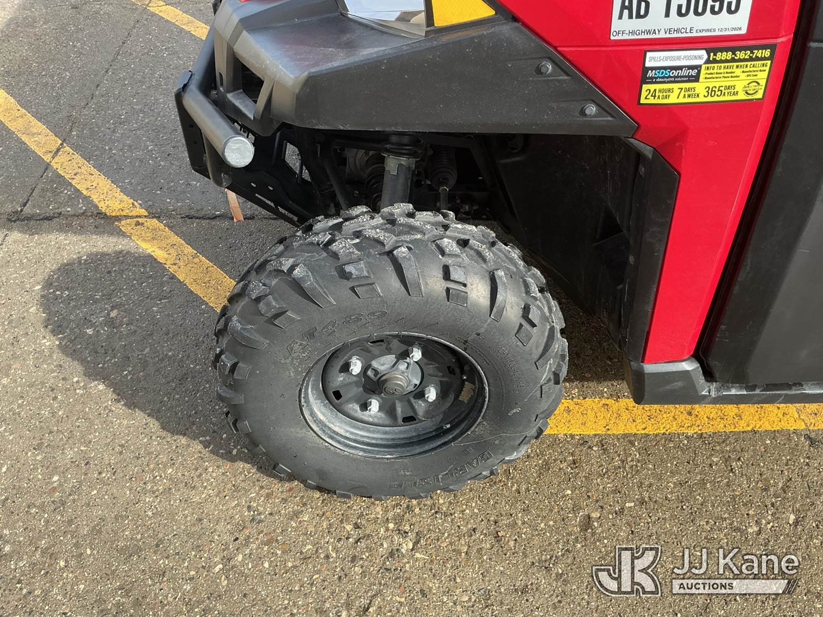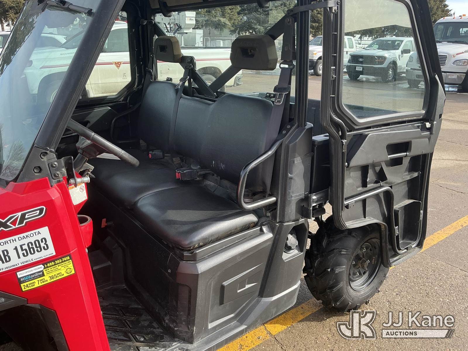 2015 Polaris Ranger XP 900 EPS Utility Vehicle, 875cc gas, Auto, with Set of Polaris winter tracks, front winch, (2,291 miles) Investor Utility Owned (Runs & Moves) This is a Titled Item NOTE: This unit is being sold AS IS/WHERE IS via Timed Auction and is located in Bismarck, ND. For specific technical information or questions about this item, contact Ben Boucher at (612) 616-2798. For load-out and pick information, reference the hauler sheet sent out after purchase. These items are used and may contain defects that are not immediately detectable. Text descriptions and photos given are meant to be used as a guide only. The conditions are provided by the consignor. The Buyer is responsible for inspecting the item before bidding. Purchaser acknowledges ALL lots must be removed within 10 business days of the Auction, or a storage fee may be incurred. All information provided is believed to be correct but no warranty as such is either intended or implied. All items are sold AS IS - WHERE IS AND WITH ALL FAULTS AND DEFECTS THEREIN. (Buyer is responsible for removal. Assistance by consignor or JJ Kane Auctions is not assured.)