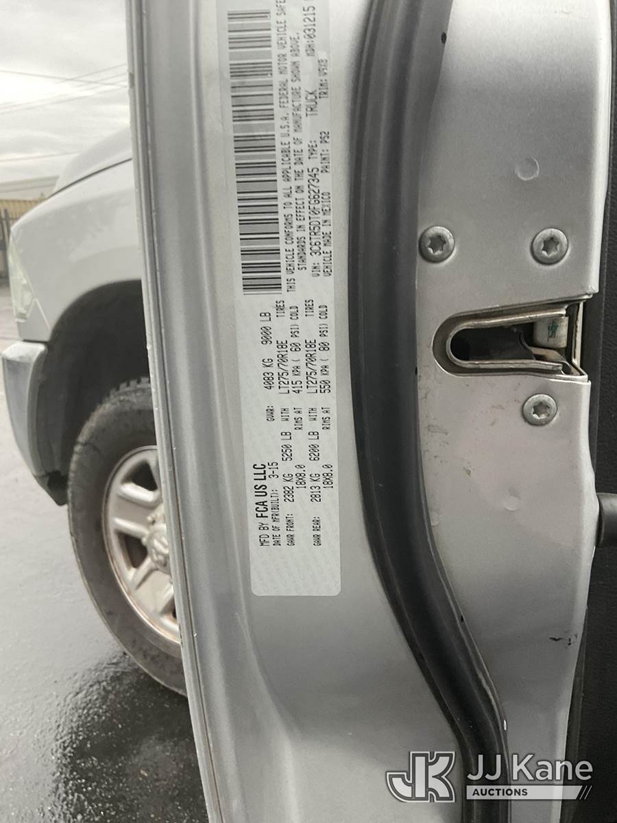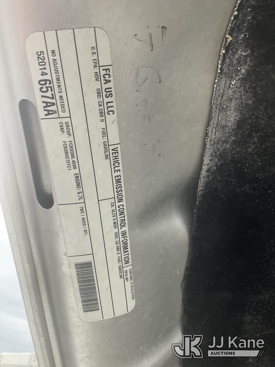 2015 RAM 2500 Crew-Cab Pickup Truck, 8-cyl gas, 6-Speed Automatic, 4wd, A/C, with Tool Box, (74,285 miles) (Runs & Moves) (Check Engine Light On) This is a Titled Item NOTE: This unit is being sold AS IS/WHERE IS via Timed Auction and is located in Jurupa Valley, CA. Inspection & preview days for this unit are the 2 business days prior to the first day of items closing for this auction, item is located at 4510 Muth Way Jurupa Valley, CA 92509 and hours of operations are 8a-4p. For pre-sale questions, please contact please contact Office Staff @ (310) 353-7140. Dealer License Number 45696. (Buyer is responsible for removal. Assistance by consignor or JJ Kane Auctioneers is not assured.)