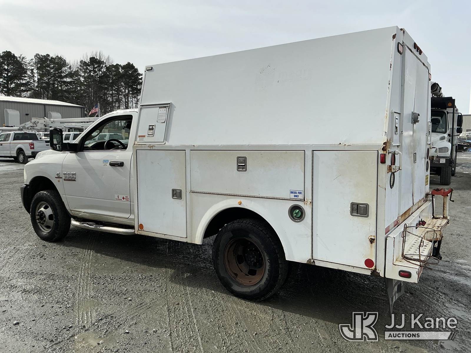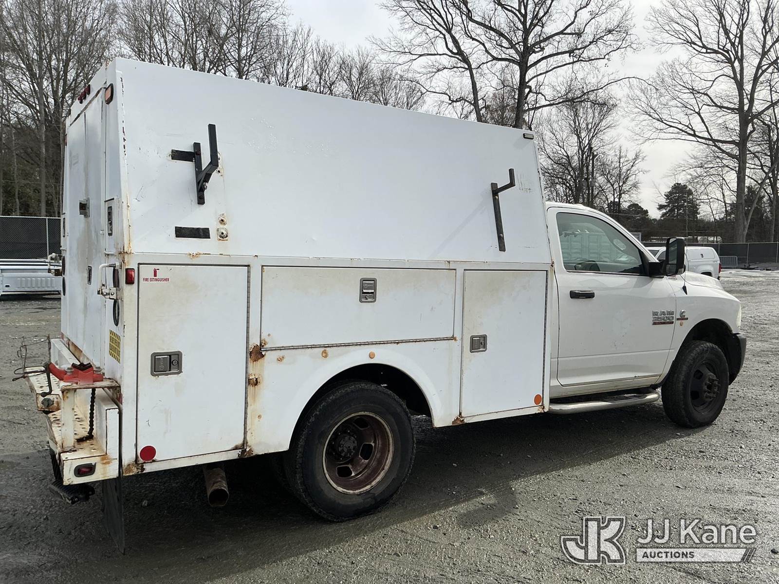 2015 RAM 3500 4x4 Enclosed Service Truck, Cummins 6.7L diesel, 6-Speed Automatic, A/C, with aux fuel tank w/ pump & hose reel, (143,026 miles) (Runs & Moves) (Check Engine Light On, ABS Light On, Traction Control Light On, Body/Paint Damage ) This is a Titled Item NOTE: This unit is being sold AS IS/WHERE IS via Timed Auction and is located in China Grove, NC. Inspection & preview days for this unit are the 2 business days prior to the first day of items closing for this auction, item is located at 820 E NC Hwy 152 China Grove, NC 28023 and hours of operations are 8a-4p. For pre-sale questions, please contact Office Staff @ (704) 674-1113. (Buyer is responsible for removal. Assistance by consignor or JJ Kane Auctions is not assured.)