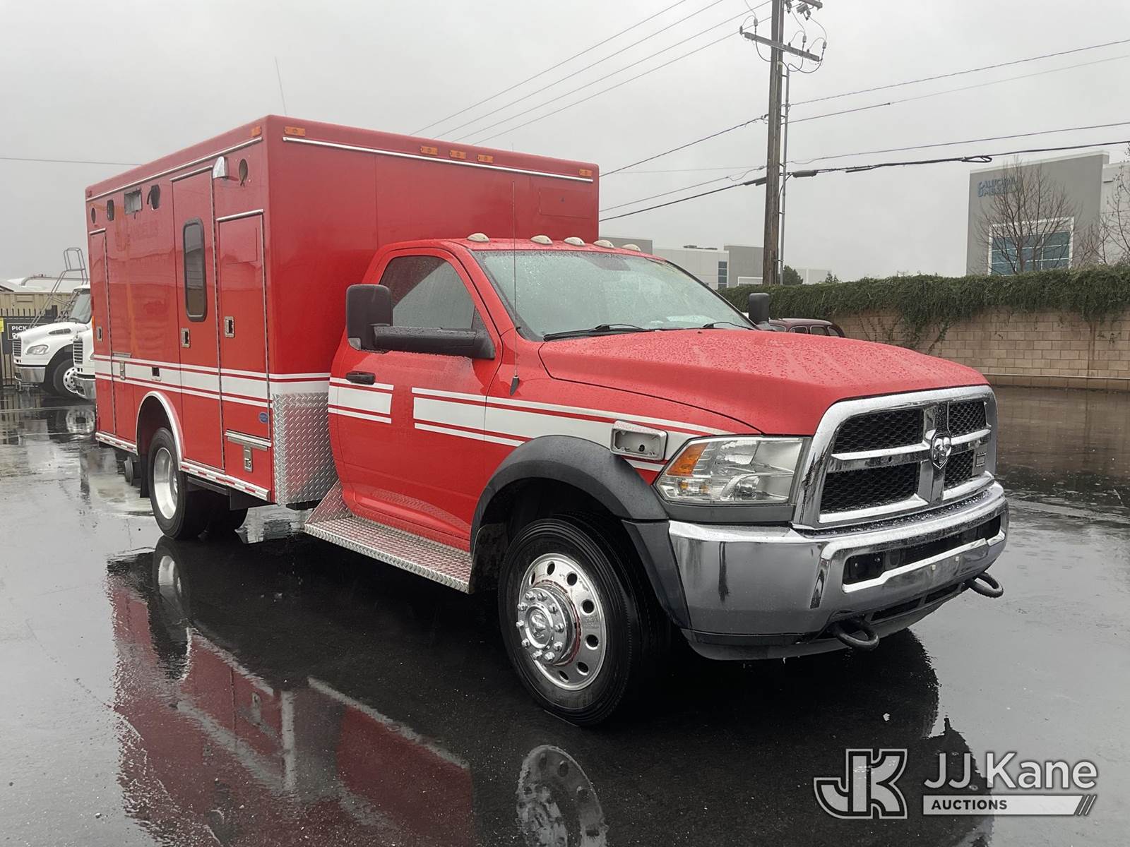 2015 RAM 4500 Regular Cab 2WD DRW Ambulance, s/n 3C7WRKBL4FG670810, 6.7L L6 OHV 24V TURBO DIESEL RWD, Auto, (189,981 miles) (Runs & Moves) (Check Engine Light On) (Bidding Restricted to Licensed Vehicle Dealers Only), May be subject to ARB Regulations This is a Titled Item NOTE: This unit is being sold AS IS/WHERE IS via Timed Auction and is located in Jurupa Valley, CA. Inspection & preview days for this unit are the 2 business days prior to the first day of items closing for this auction, item is located at 4510 Muth Way Jurupa Valley, CA 92509 and hours of operations are 8a-4p. For pre-sale questions, please contact please contact Office Staff @ (310) 353-7140. Dealer License Number 45696. (Buyer is responsible for removal. Assistance by consignor or JJ Kane Auctions is not assured.)