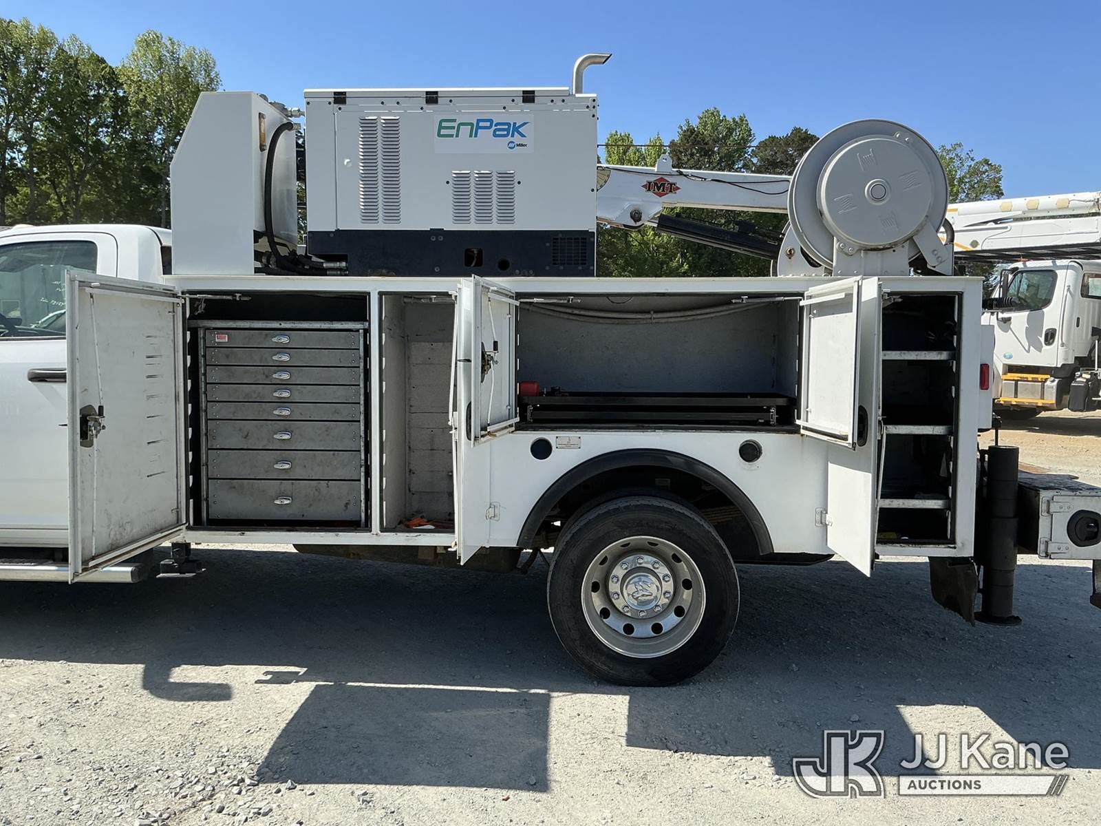 2015 RAM 5500 4X4 Mechanics Service Truck, Cummins 6.7L DIESEL, Auto, A/C, with IMT 3820 material crane w/remote, Miller EnPak hyd pump, air compressor w/hose reel, & waste oil recovery tank, (97,184 miles) (Runs & Moves) (Jump To Start, No Power To EnPak Upper Condition Unknown ) This is a Titled Item NOTE: This unit is being sold AS IS/WHERE IS via Timed Auction and is located in China Grove, NC. Inspection & preview days for this unit are the 2 business days prior to the first day of items closing for this auction, item is located at 820 E NC Hwy 152 China Grove, NC 28023 and hours of operations are 8a-4p. For pre-sale questions, please contact Office Staff @ (704) 674-1113. (Buyer is responsible for removal. Assistance by consignor or JJ Kane Auctions is not assured.)