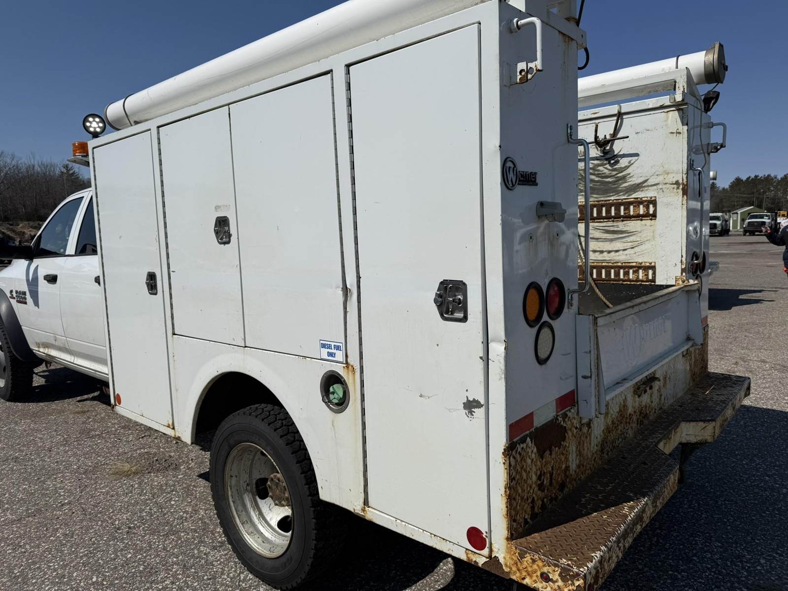 6.7L Cummins Turbo Diesel Engine, Automatic Transmission, 4x4, PTO, Front Heavy Duty Winch, Crew Cab, Approx 9'x96" (8) Door Service Body, Fuel/Hydraulic Tank, Heat/Ac, Am/Fm Radio, Cruise Control, Steering Wheel Controls, Power Windows, Power Locks, Power Mirrors, Heated Mirrors, Integrated Brake Controller, 225/70R22.5 Tires