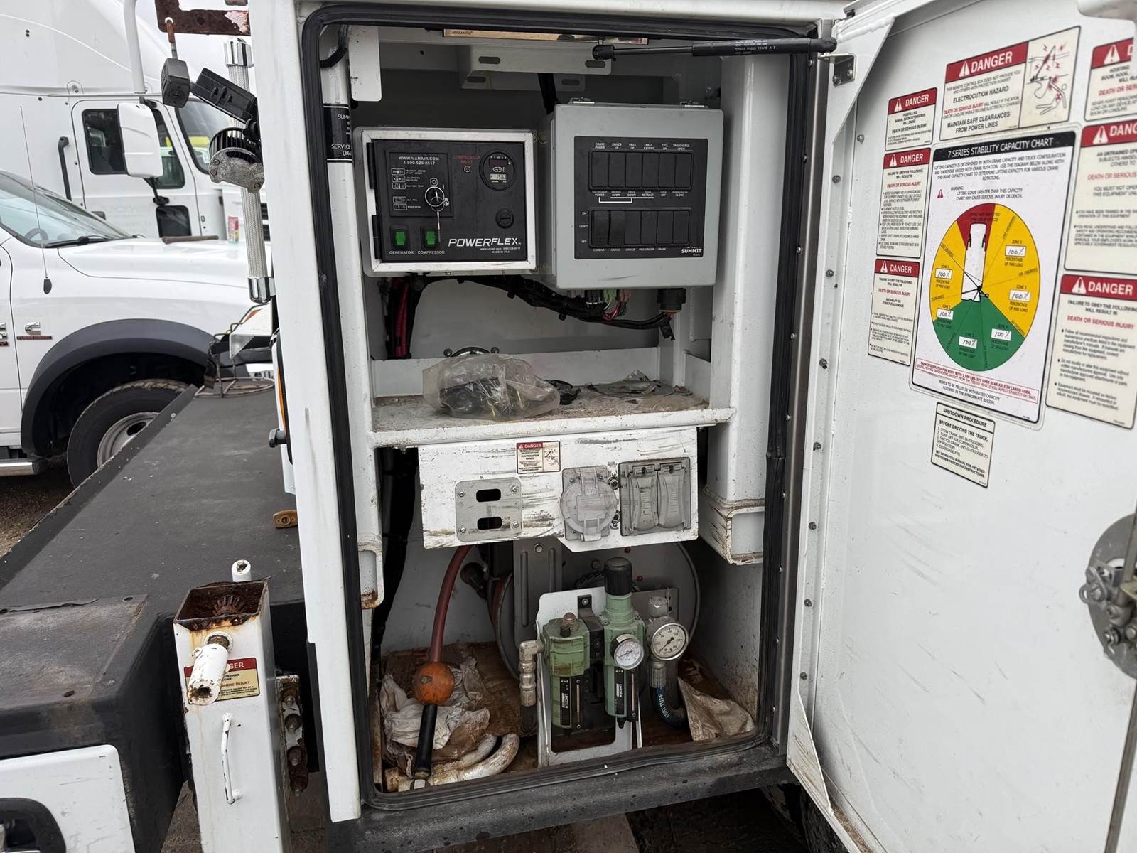 NICE TRUCK, WELL MAINTAINED, SUMMIT 11 FT BODY, 4416 SUMMIT CRANE WITH REMOTE, ROLLING DRAWER TOOL BOXES, LOTS OF STORAGE, VANAIR POWER FLEX GENERATOR/ AIR COMPRESSOR COMBO!