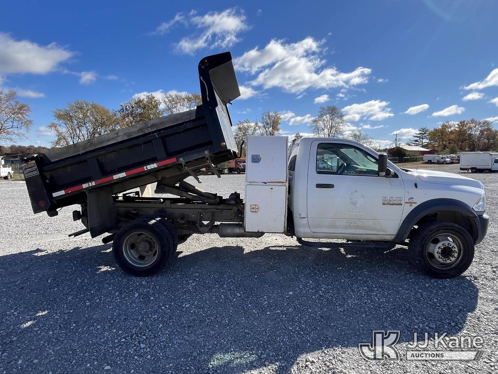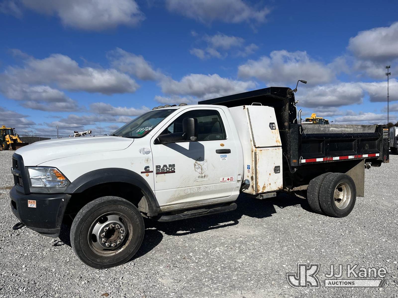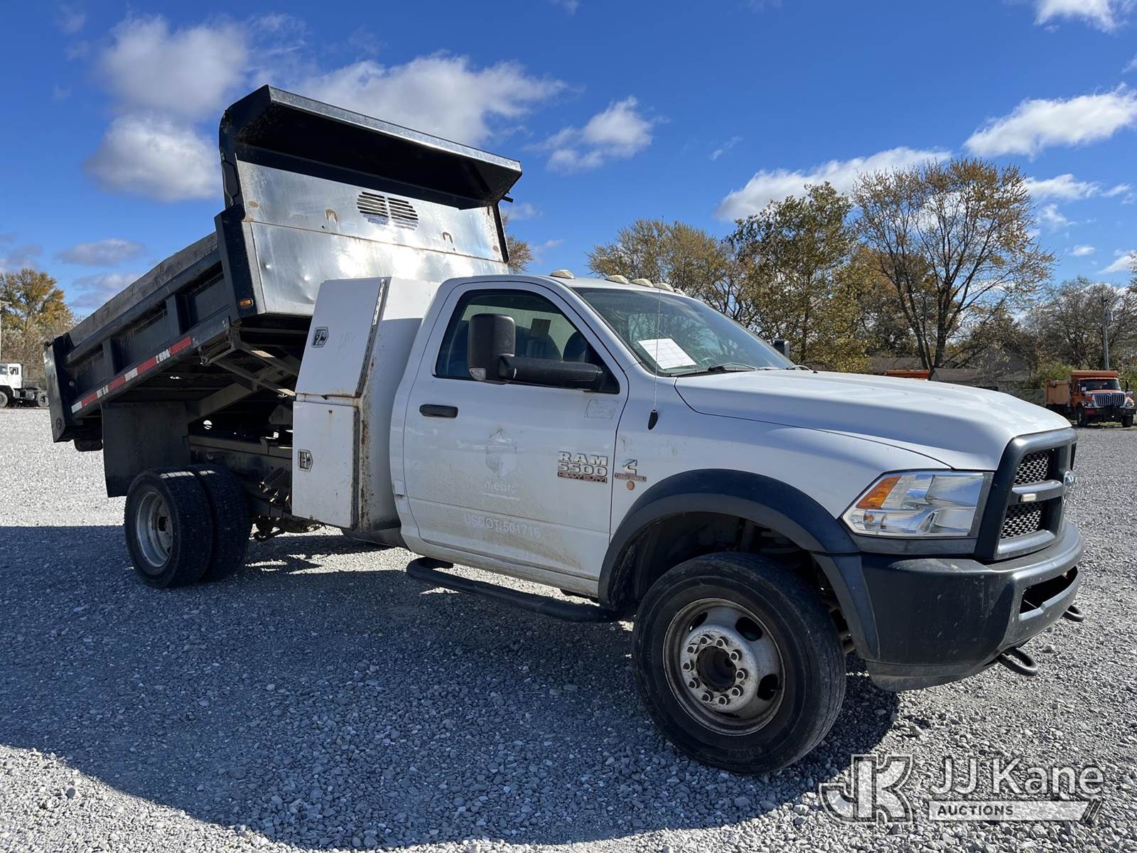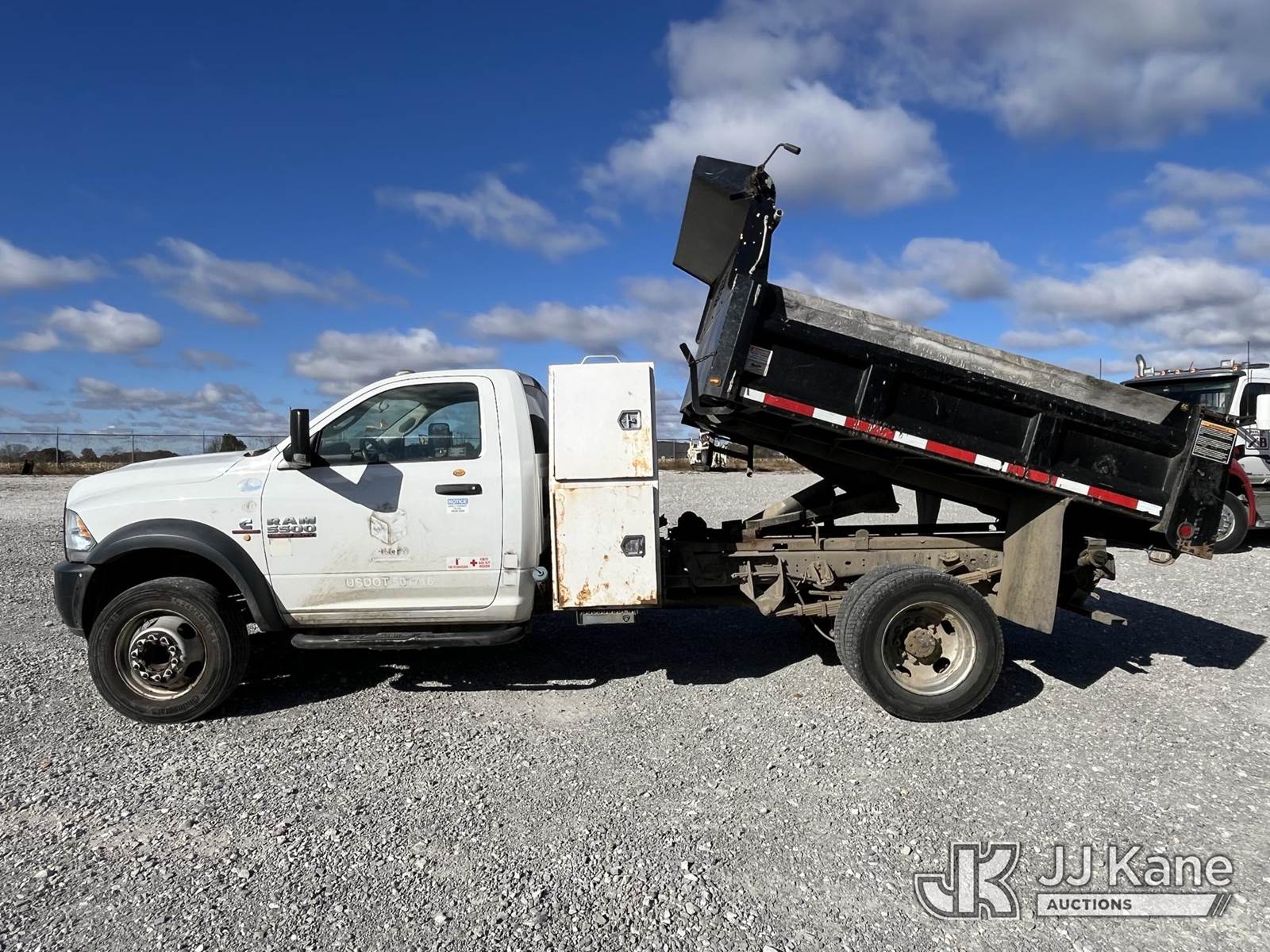 2015 RAM 5500 Regular Cab 2WD DRW Dump Truck, 6.7L L6 OHV 24V TURBO DIESEL Auto, RWD, A/C, (132,573 miles) (Runs, Moves, Operates) (Paint & Body damage, Rust Noted). ) (Reads 6,592 hours) This is a Titled Item NOTE: This unit is being sold AS IS/WHERE IS via Timed Auction and is located in Hawk Point, MO. For more information & removal arrangements please contact Adam Stanek at 636-295-1594. (Buyer is responsible for removal. Assistance by consignor or JJ Kane Auctioneers is not assured.)