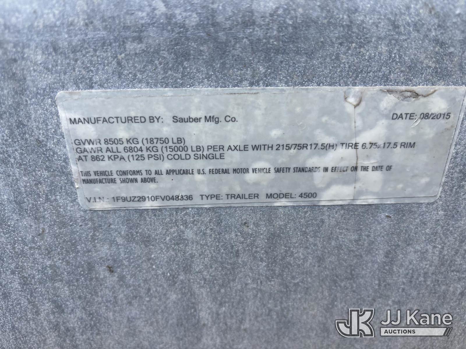 2015 Sauber 4500 Pole Trailer, This is a Titled Item NOTE: This unit is being sold AS IS/WHERE IS via Timed Auction and is located in Geneva, NY. For pre-sale questions, please contact Adel Cekic at adel.cekic@jjkane.com. Inspection by appointment only. Removal of items will begin the day following the sale and continue Monday through Friday, 8:00 am to 4:00 pm. Purchaser acknowledges ALL lots must be removed within (10) business days or a storage fee may be incurred. There will be no payments accepted onsite. Buyer/Hauler must present a copy of the (Paid in Full) Invoice or Release Form upon arrival. Please refer to the Pick Up Terms listed on the Release Form sent out after purchase. (Buyer is responsible for removal. Assistance by consignor or JJ Kane Auctions is not assured.)