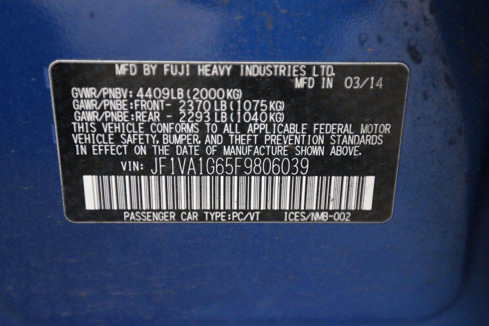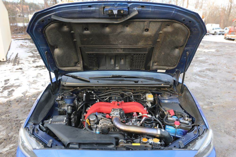 2015 Subaru Impreza WRX, 2.0L H4 DOHC 16V engine, 6-speed manual transmission, VIN# JF1VA1G65F9806039, odometer reading: 149,210. Leather interior, power windows/locks/mirror, cruise control, heated seats, sunroof. Aftermarket modifications include upgraded fuel pump, upgraded fuel injectors, oil catch can, E85 fuel kit, BRZ intake manifold, and front mount intercooler. Computer needs to be tuned to get rid of the check engine light. Runs, drives. Has keys, title & bill of sale.