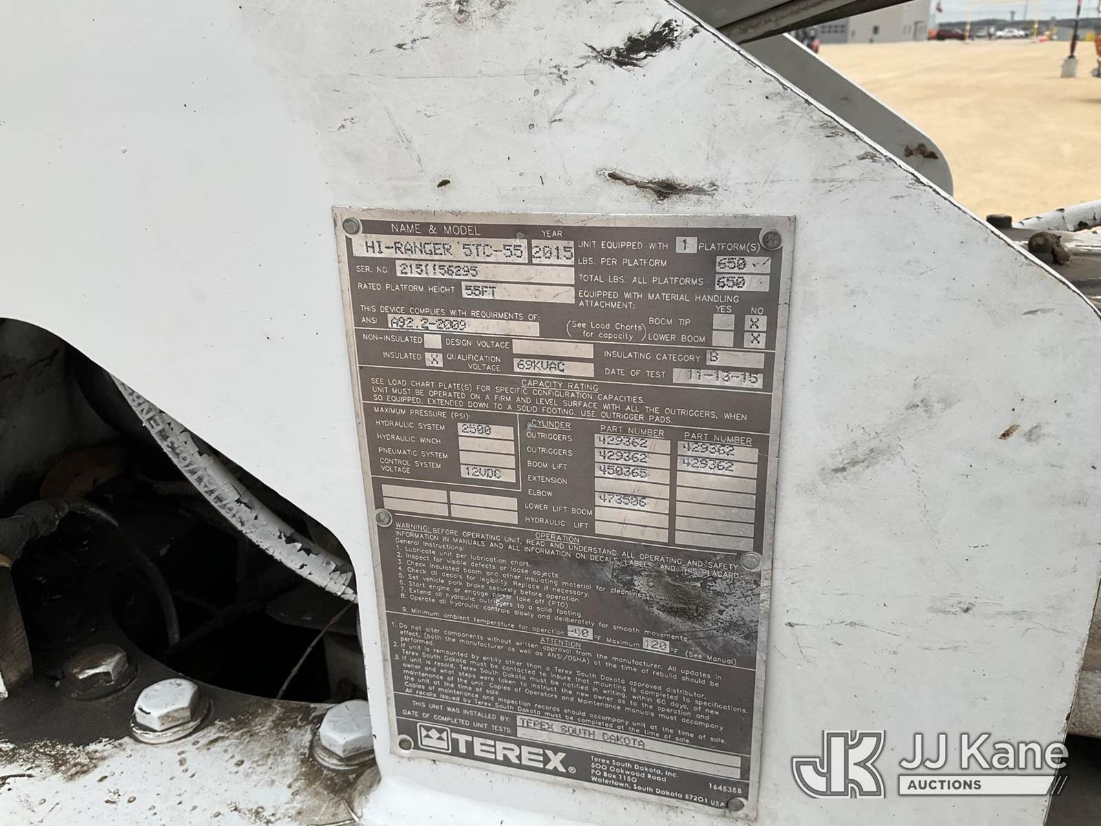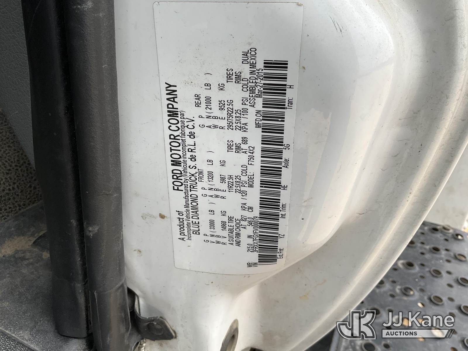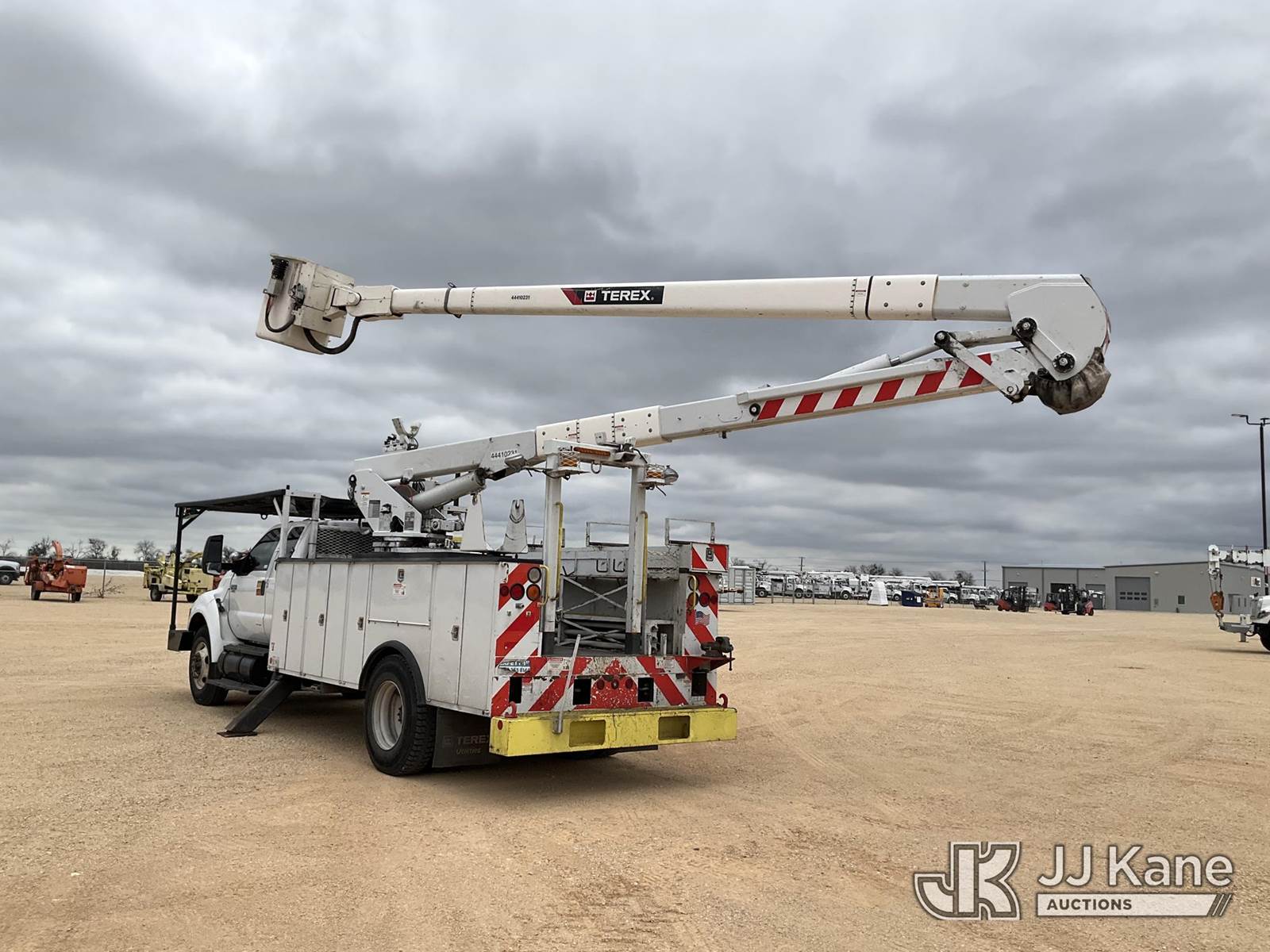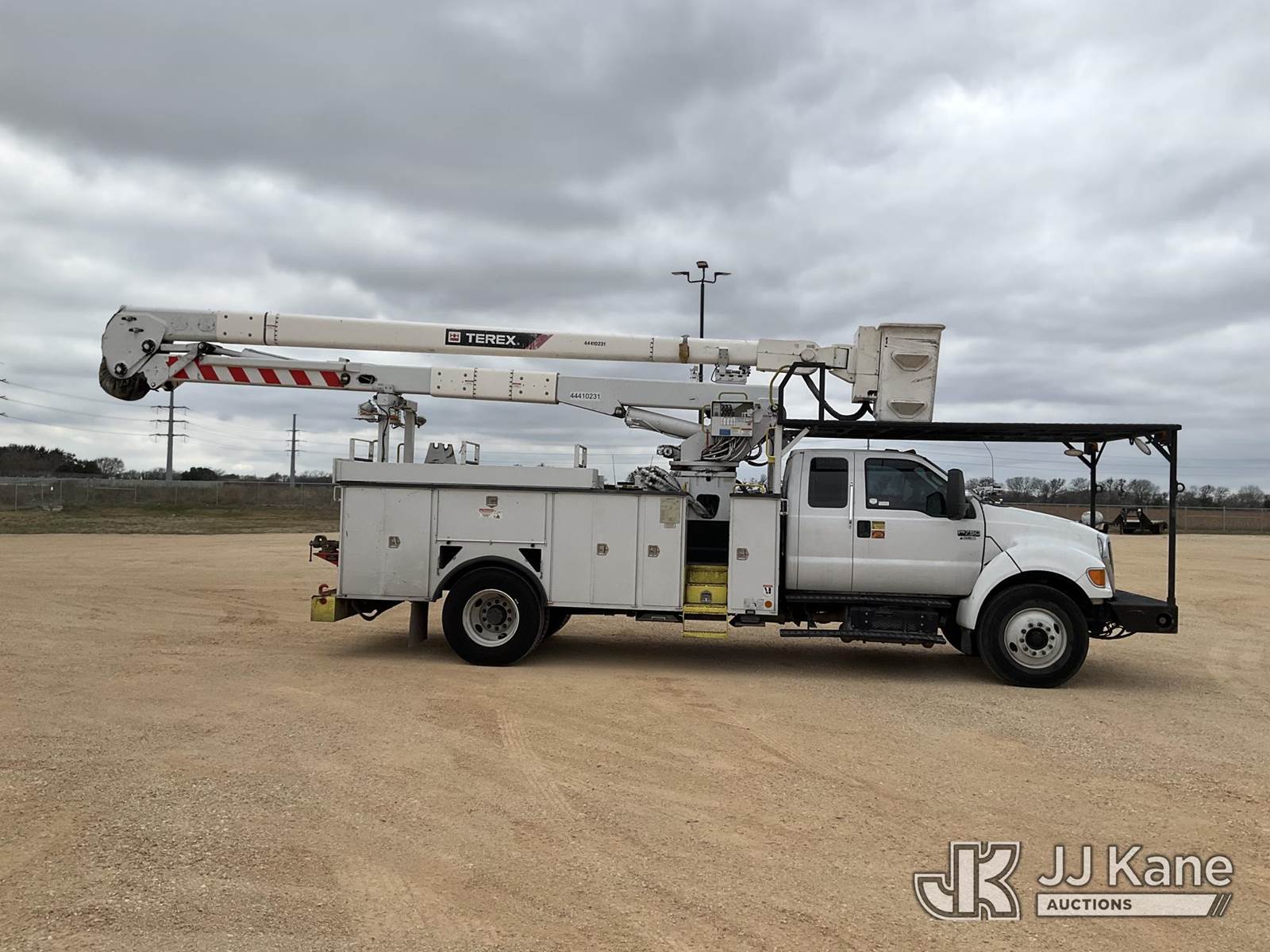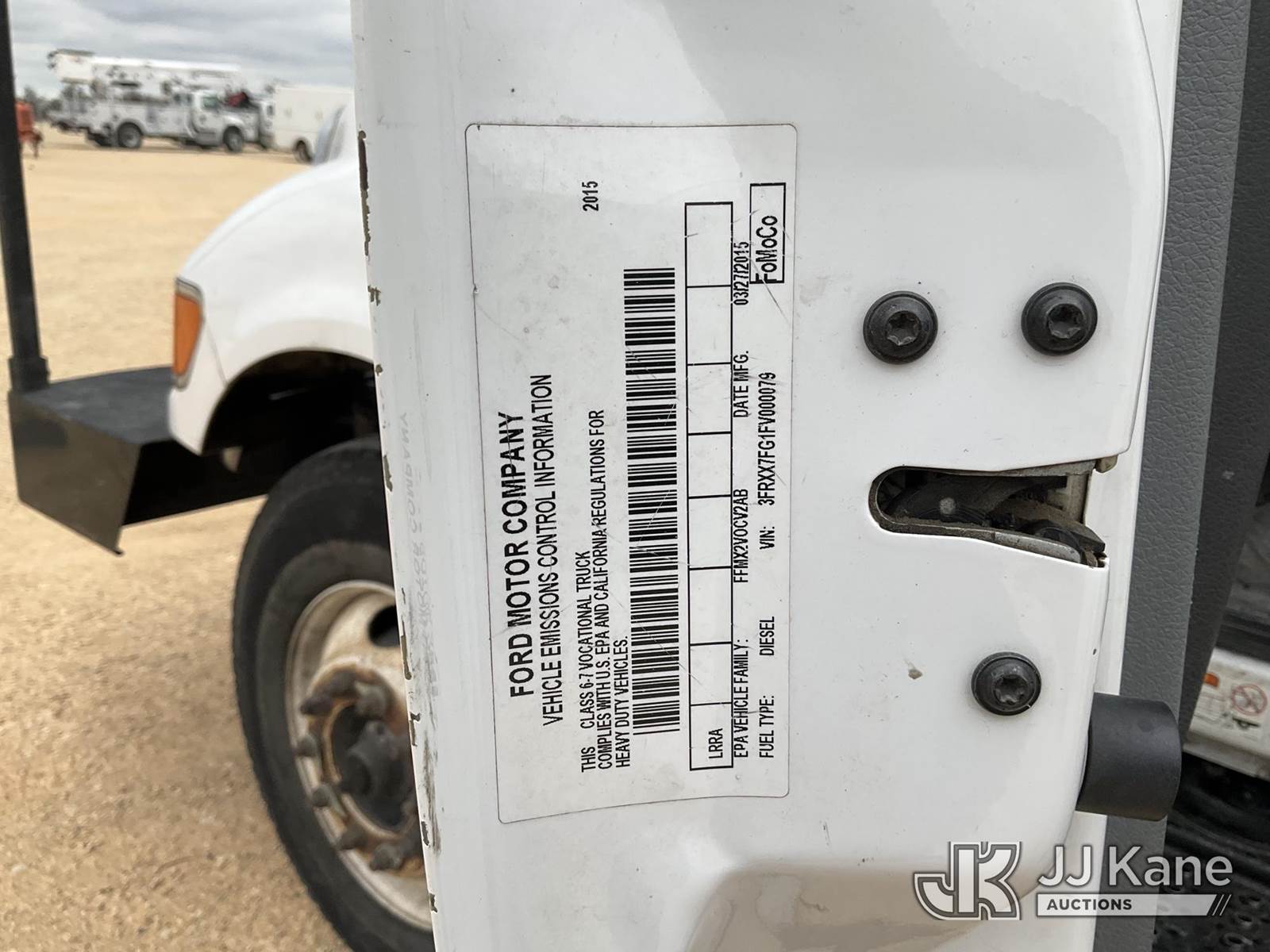 Terex 5TC55, 60 ft, Bucket Truck s/n 2151156295, with two man bucket, mounted behind cab on 2015 Ford F-750 Utility Truck, 6.7L diesel, 4X2, Auto, A/C, (67,350 miles) (Runs, Moves & Upper Operates) (Jump To Start, Check Engine Light On) This is a Titled Item NOTE: This unit is being sold AS IS/WHERE IS via Timed Auction and is located in Marion, TX. Inspection & preview days for this unit are the 2 business days prior to the first day of items closing for this auction, item is located at 3292 S Santa Clara Rd Marion, TX 78124 and hours of operations are 8a-4p. For pre-sale questions, please contact Brian Jarrell @ 210-540-3147. (Missing manuals, See Auction Company for Manufacturers Information to obtain manuals) (Buyer is responsible for removal. Assistance by consignor or JJ Kane Auctions is not assured.)