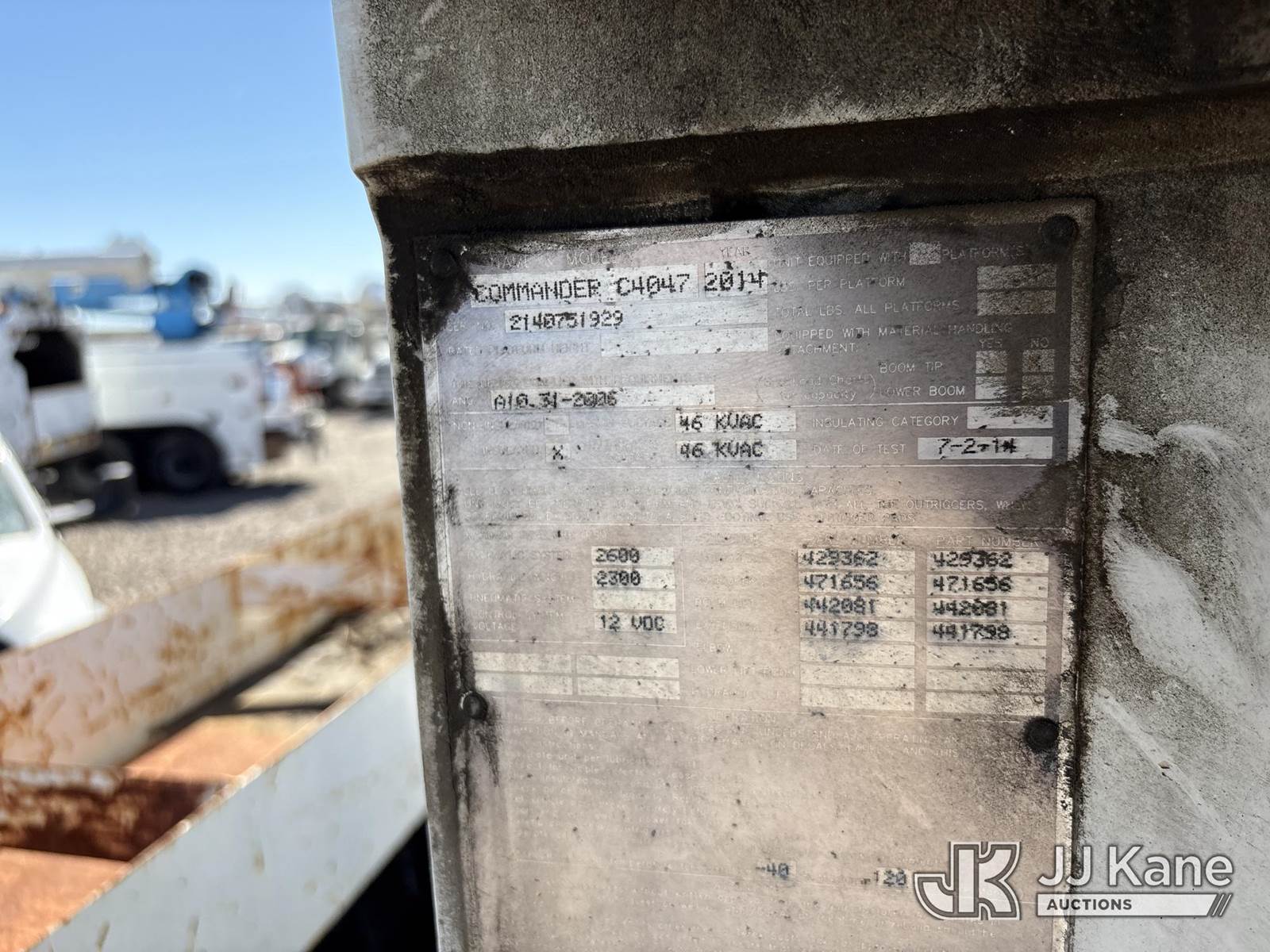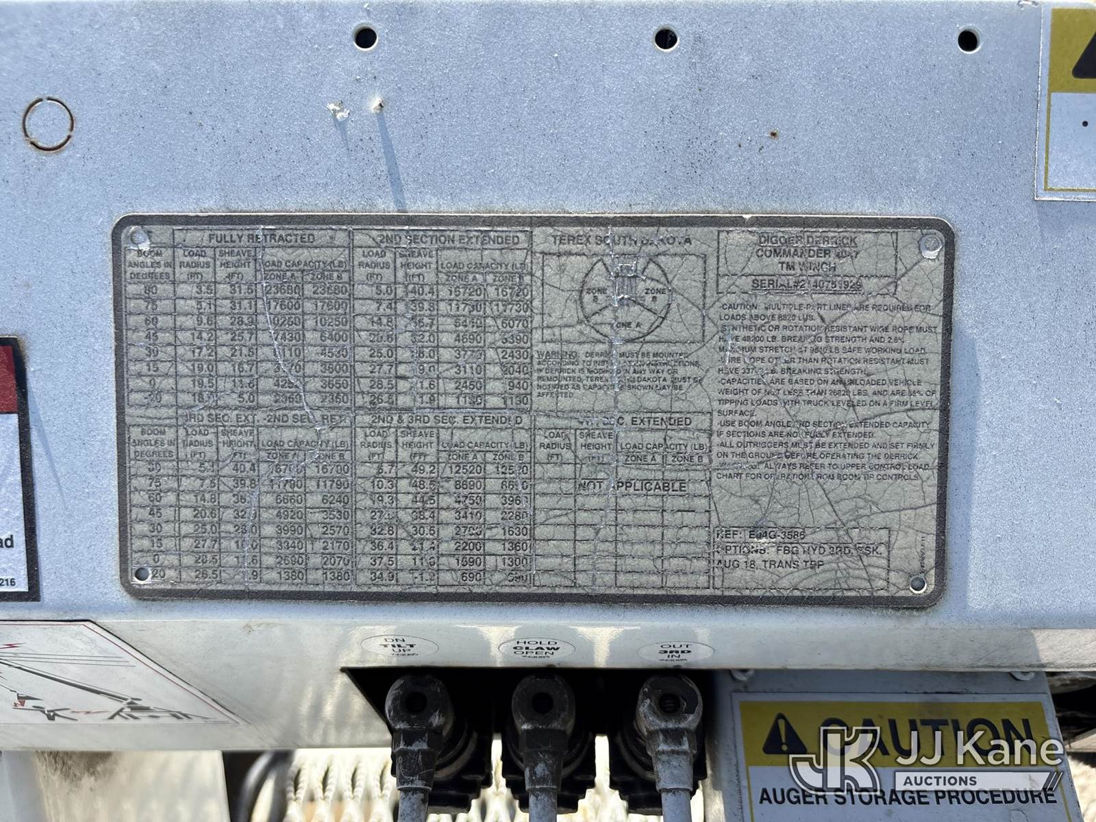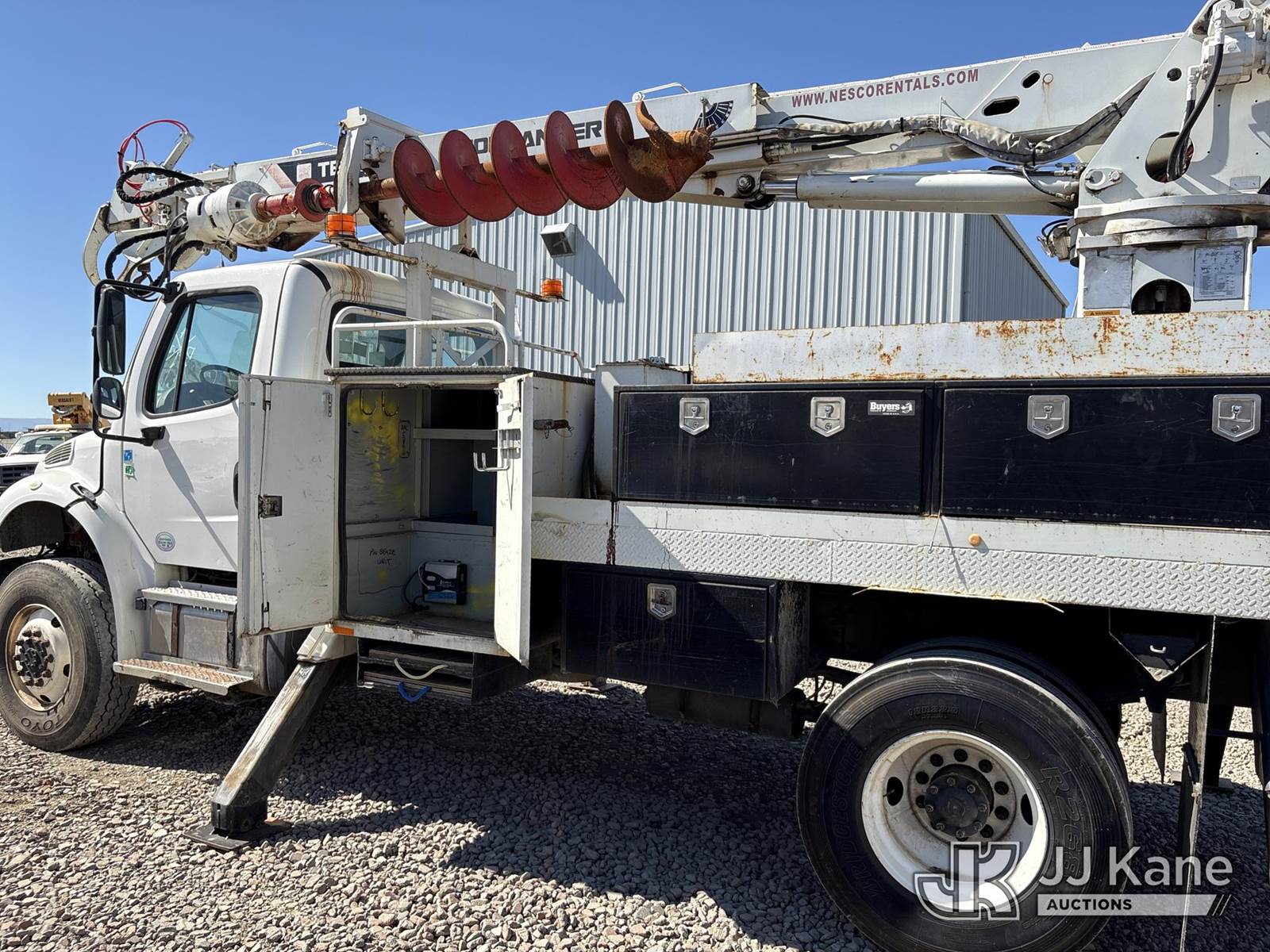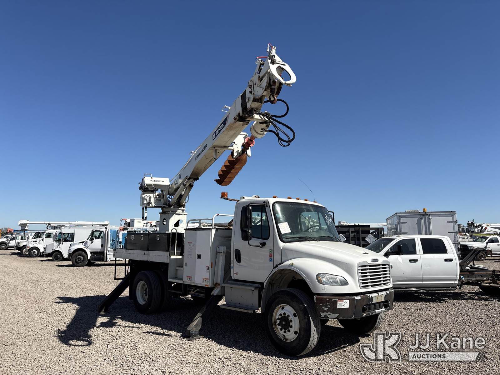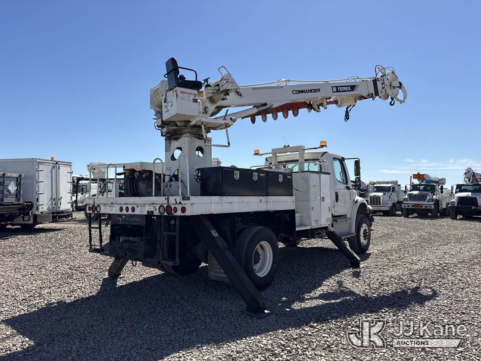 Terex Commander C4047, 23,680 Lb Digger Derrick s/n 2140751929, with 47 ft sheave height, 2spd digger, heel winch, pole grabs, riding console & 4 hyd outriggers, rear mounted on 2015 Freightliner M2 106 Medium Duty Flatbed/Service Truck, s/n 3ALDCXDT7FDGE0179, 6.7L L6 4X4, diesel, Auto, A/C, (135,197 miles) (Runs, Moves & Operates, Auger Release Does Not Operate, Worn Out Belt Sound In Engine) (Reads 6,939 hours) May be subject to ARB Regulations This is a Titled Item NOTE: This unit is being sold AS IS/WHERE IS via Timed Auction and is located in Dixon, CA. Inspection & preview days for this unit are the 2 business days prior to the first day of items closing for this auction, item is located at 8668 Sparling Ln Dixon, CA 95620 and hours of operations are 8a-4p. For pre-sale questions, please contact JJ Kane Staff at (707) 678-8060 (dixon@jjkane.com). Dealer License Number 45696. (Missing manuals, See Auction Company for Manufacturers Information to obtain manuals) (Buyer is responsible for removal. Assistance by consignor or JJ Kane Auctions is not assured.)
