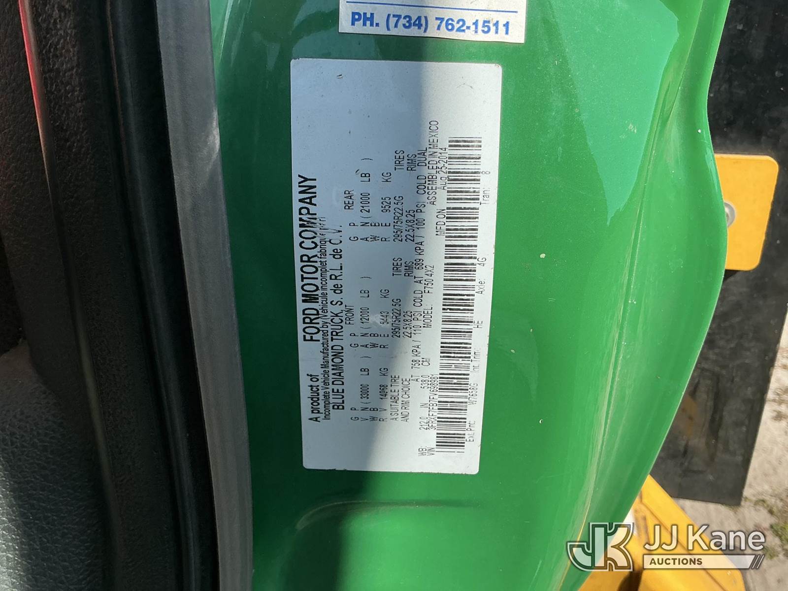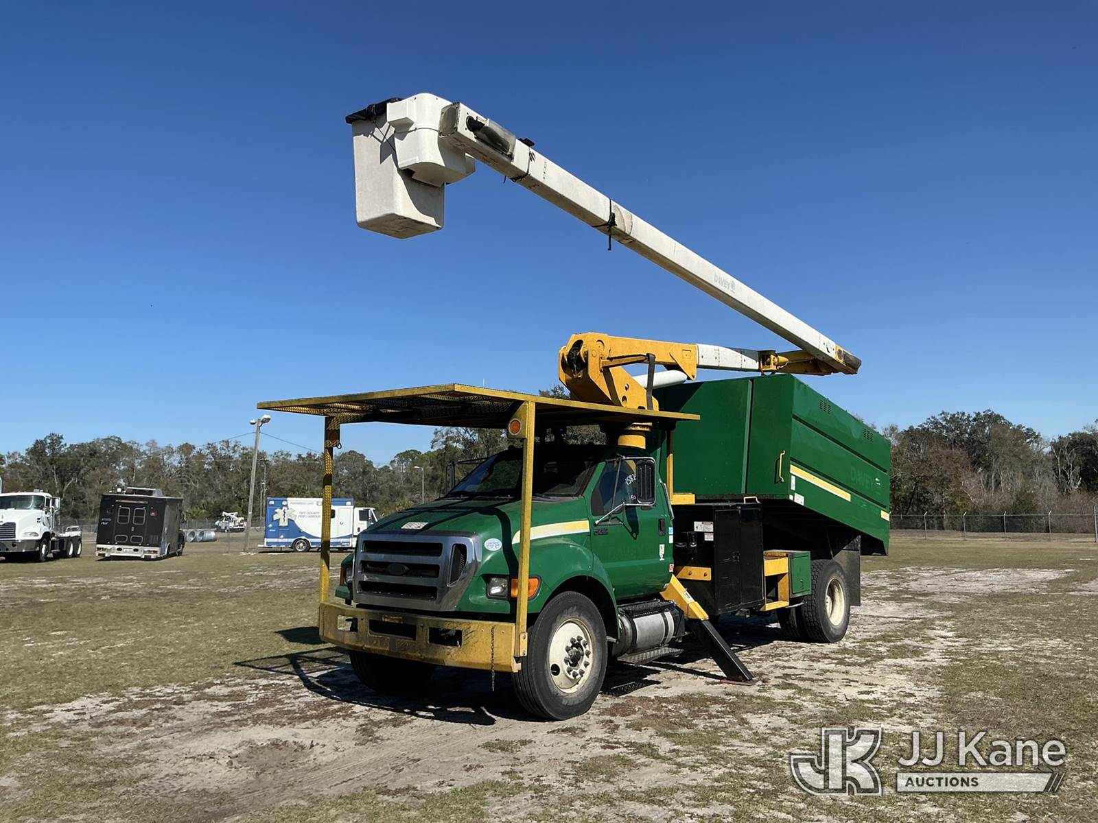 Terex/HiRanger XT60, 65 ft, Over-Center Bucket Truck s/n 2150354820, with single-man bucket & 2 hyd outriggers, mounted behind cab on 2015 Ford F-750 Chipper Dump Truck, 6.7L diesel, 4X2, 6-spd, A/C, (75,728 miles) (Runs, Moves & Operates)(Check Engine Light On, Jump To Start) This is a Titled Item NOTE: This unit is being sold AS IS/WHERE IS via Timed Auction and is located in Thonotosassa, FL. Inspection & preview days for this unit are the 2 business days prior to the first day of items closing for this auction, item is located at 11720 N US 301 Thonotosassa, Fl 33592 and hours of operations are 8a-4p. For pre-sale questions, please contact Office Staff @ (813) 986-2485. (Missing manuals, See Auction Company for Manufacturers Information to obtain manuals) (Buyer is responsible for removal. Assistance by consignor or JJ Kane Auctions is not assured.)