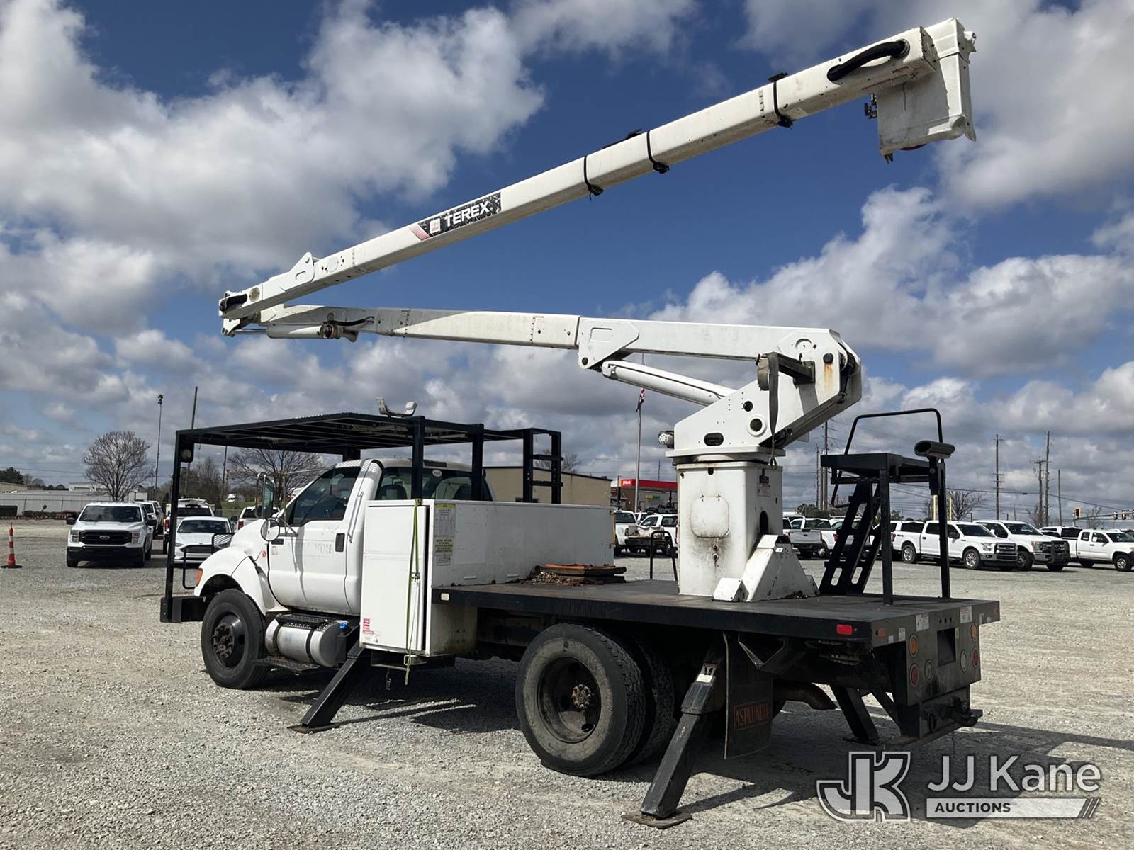 Terex/HiRanger XT60, 350 Lb 65 ft, Articulating Material Handling Bucket Truck s/n 2140853137, with single-man bucket & 4 hyd outriggers, rear mounted on 2015 Ford F-750 Regular Cab 2WD DRW Flatbed/Utility Truck, 6.7L L6 DIESEL 4X2, DIESEL, 6-spd, A/C, with Front winch , (66,890 miles) Platform Missing (Bucket) (Runs, Moves & Upper Operates) (Check Engine Light On, Missing Bucket) This is a Titled Item NOTE: This unit is being sold AS IS/WHERE IS via Timed Auction and is located in Villa Rica, GA. Inspection & preview days for this unit are the 2 business days prior to the first day of items closing for this auction, item is located at 100 Liberty Rd Villa Rica, GA 30180 and hours of operations are 8a-4p. For pre-sale questions, please contact Office Staff @ (470) 590-8453. (Missing manuals, See Auction Company for Manufacturers Information to obtain manuals) (Buyer is responsible for removal. Assistance by consignor or JJ Kane Auctions is not assured.)