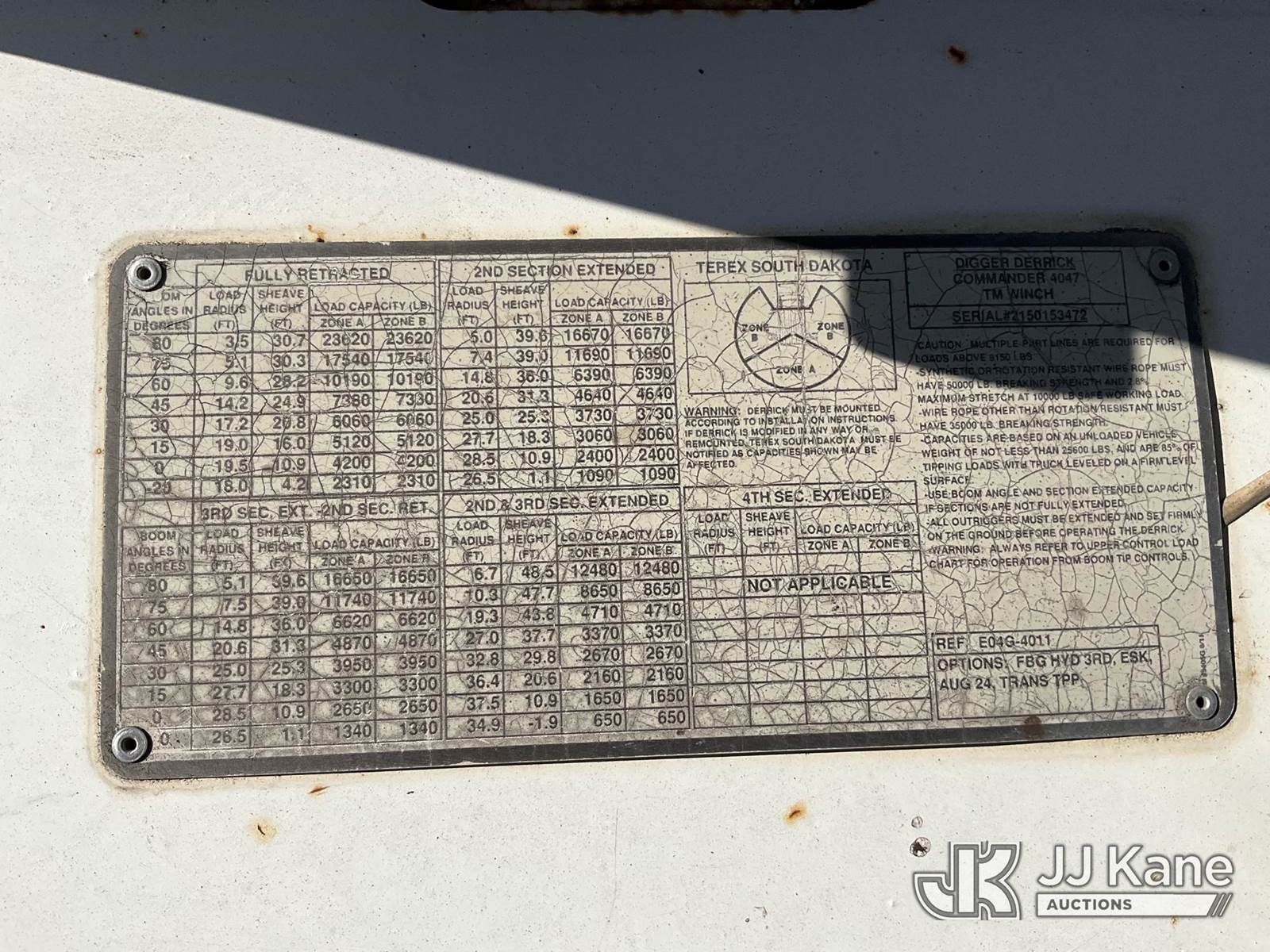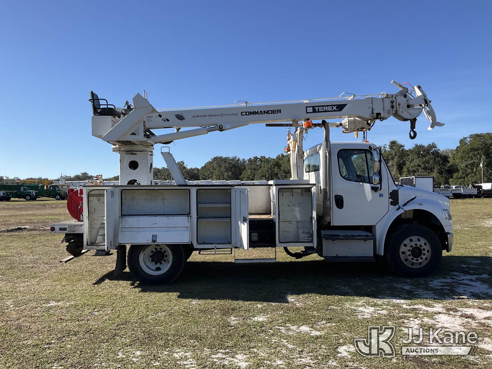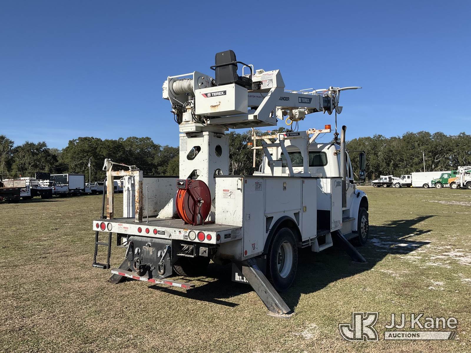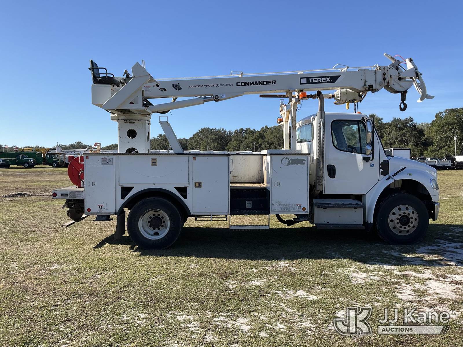 Terex/Telelect C4047, 23,620 Lb Digger Derrick s/n 2150153472, with 47 ft. sheave height, 3 section hyd boom, 2 spd digger, heel winch, pole guides, riding console & 4 hyd outriggers, rear mounted on 2015 Freightliner M2 106 Utility Truck, 8.9L L6 diesel, 4X2, Auto, A/C, (39,677 miles) (Runs, Moves, Upper Operates) (Check Engine Light On, Jump To Start, Radio Not Included, No Auger, Needs Battery) (FL Residents Purchasing Titled Items – tax, title & registration fees will be collected at the maximum rate of $400.00 under 25,999 and $800.00 for Over 26,000 and $250.00 trailers – Proof of insurance is mandatory; Out of State Residents Purchasing Title Items – tax will be collected based upon your state rate.) (Reads 4,292 hours) This is a Titled Item NOTE: This unit is being sold AS IS/WHERE IS via Timed Auction and is located in Thonotosassa, FL. Inspection & preview days for this unit are the 2 business days prior to the first day of items closing for this auction, item is located at 11720 N US 301 Thonotosassa, Fl 33592 and hours of operations are 8a-4p. For pre-sale questions, please contact Office Staff @ (813) 986-2485. (Buyer is responsible for removal. Assistance by consignor or JJ Kane Auctions is not assured.)