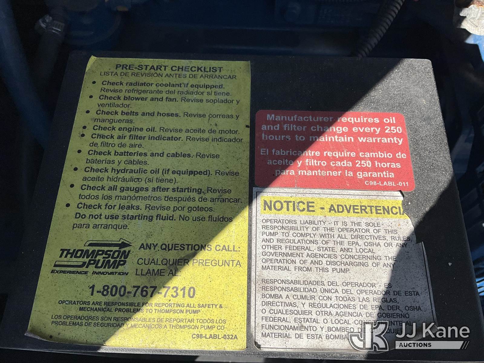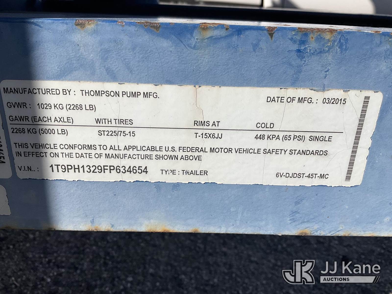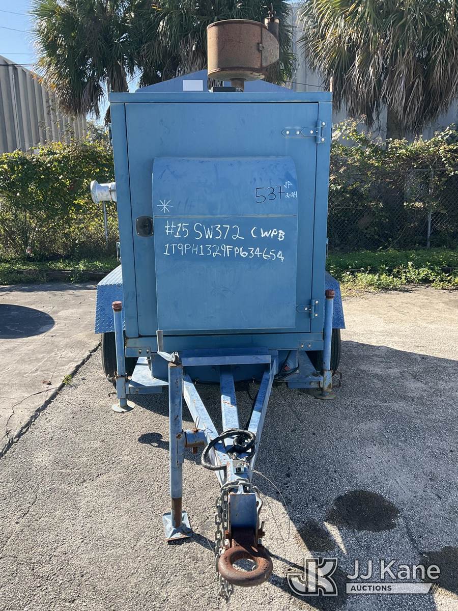 2015 Thompson 6V-DJDST-45T-MC Water Pump Trailer, s/n 1T9PH1329FP634654, diesel, (No Title) (Cranks But Does Not Start, Operating Condition Unknown, Frame Rust) (Reads 766 hours) NOTE: This unit is being sold AS IS/WHERE IS via Timed Auction and is located in West Palm Beach, FL. For Pick Up & Removal information, please contact: Andy Garcia @ 561-215-0085. Removals require 24-hr Notice by Appointment Only, Buyer/Hauler must present copy of Paid-in-Full JJ Kane Release Form upon arrival. Purchaser acknowledges ALL lots must be removed within 10 business days of Auction, or a towing & storage fee may be incurred. (Buyer is responsible for removal. Assistance by consignor or JJ Kane Auctions is not assured.)
