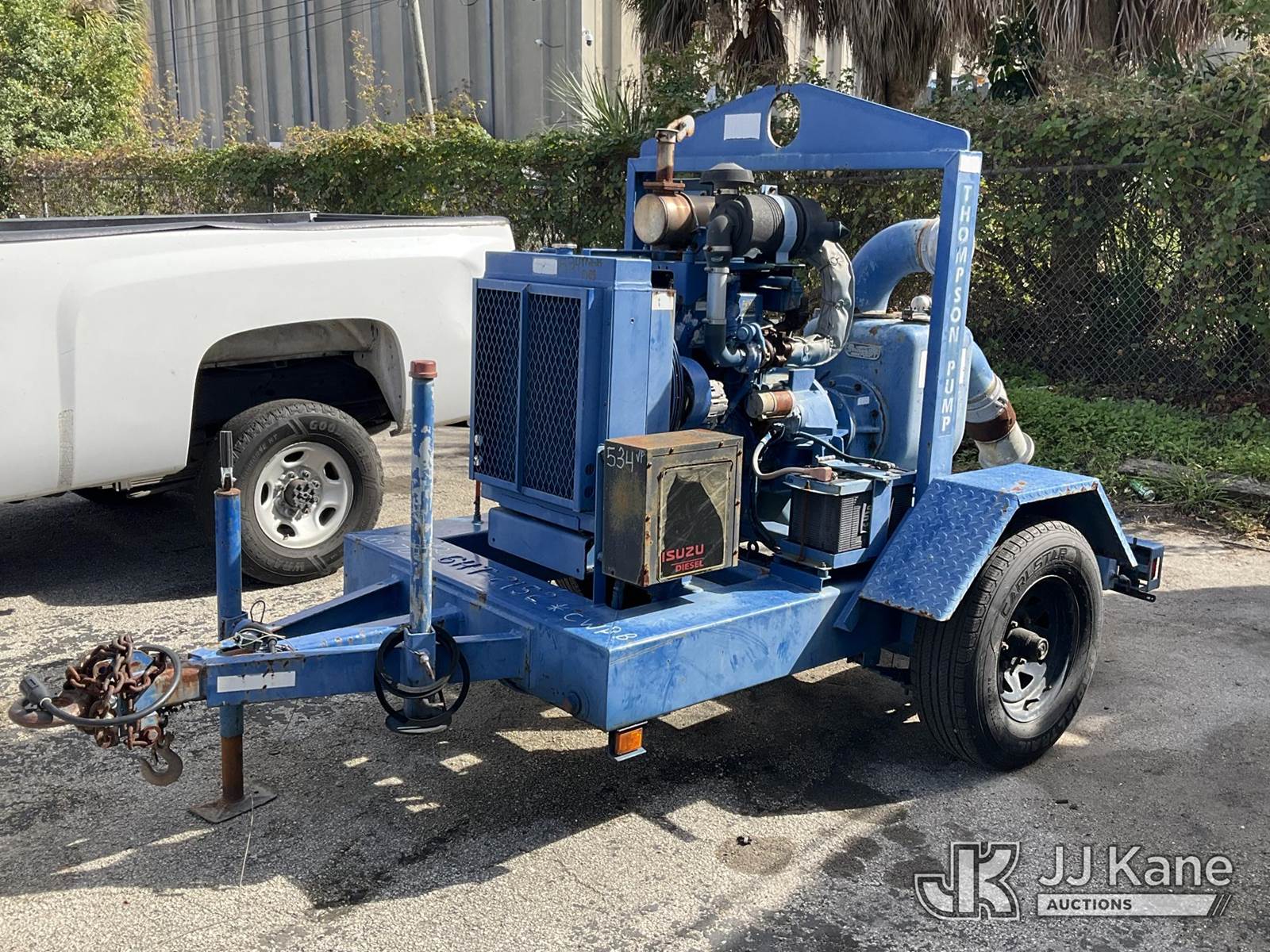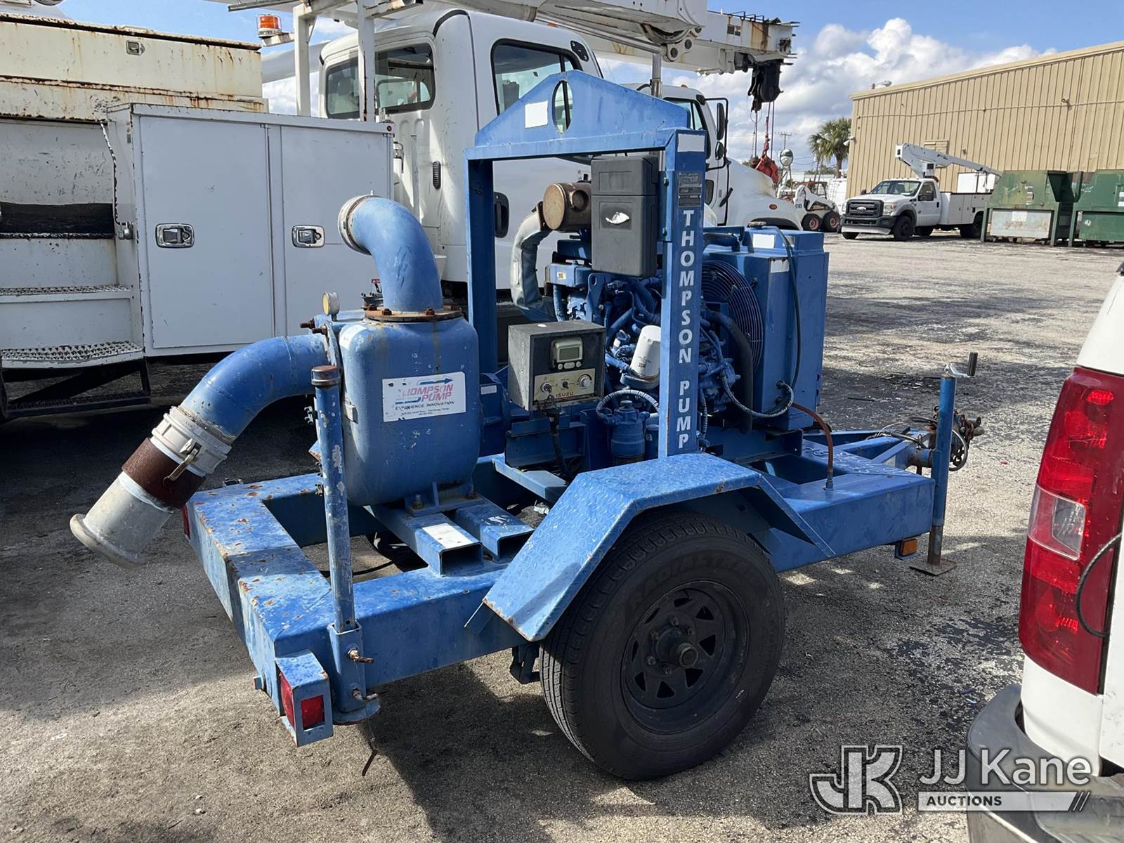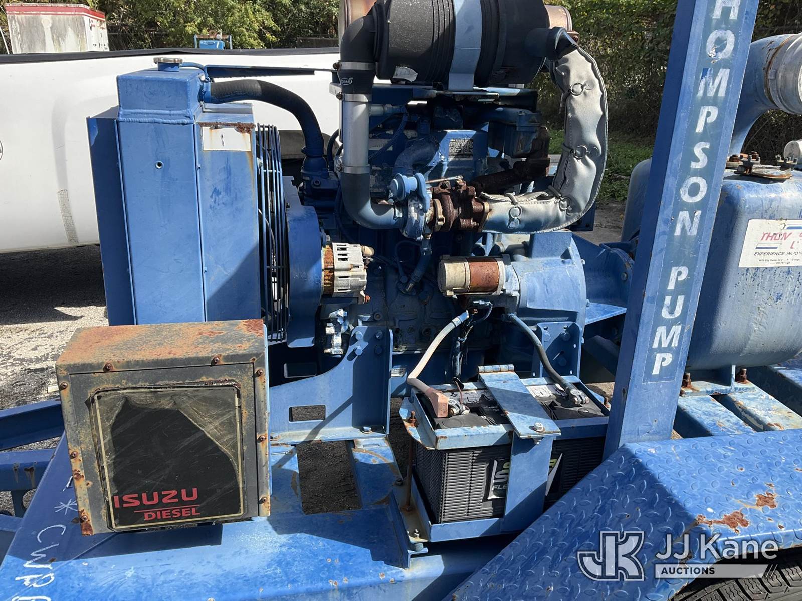 2015 Thompson Water Pump, s/n 6HT-2152, Isuzu diesel, trailer mtd. Vin: 1T9PT1110FP634616 (No Title) (Operating Condition Unknown, Paint Damage & Rust) NOTE: This unit is being sold AS IS/WHERE IS via Timed Auction and is located in West Palm Beach, FL. For Pick Up & Removal information, please contact: Andy Garcia @ 561-215-0085. Removals require 24-hr Notice by Appointment Only, Buyer/Hauler must present copy of Paid-in-Full JJ Kane Release Form upon arrival. Purchaser acknowledges ALL lots must be removed within 10 business days of Auction, or a towing & storage fee may be incurred. (Buyer is responsible for removal. Assistance by consignor or JJ Kane Auctions is not assured.)