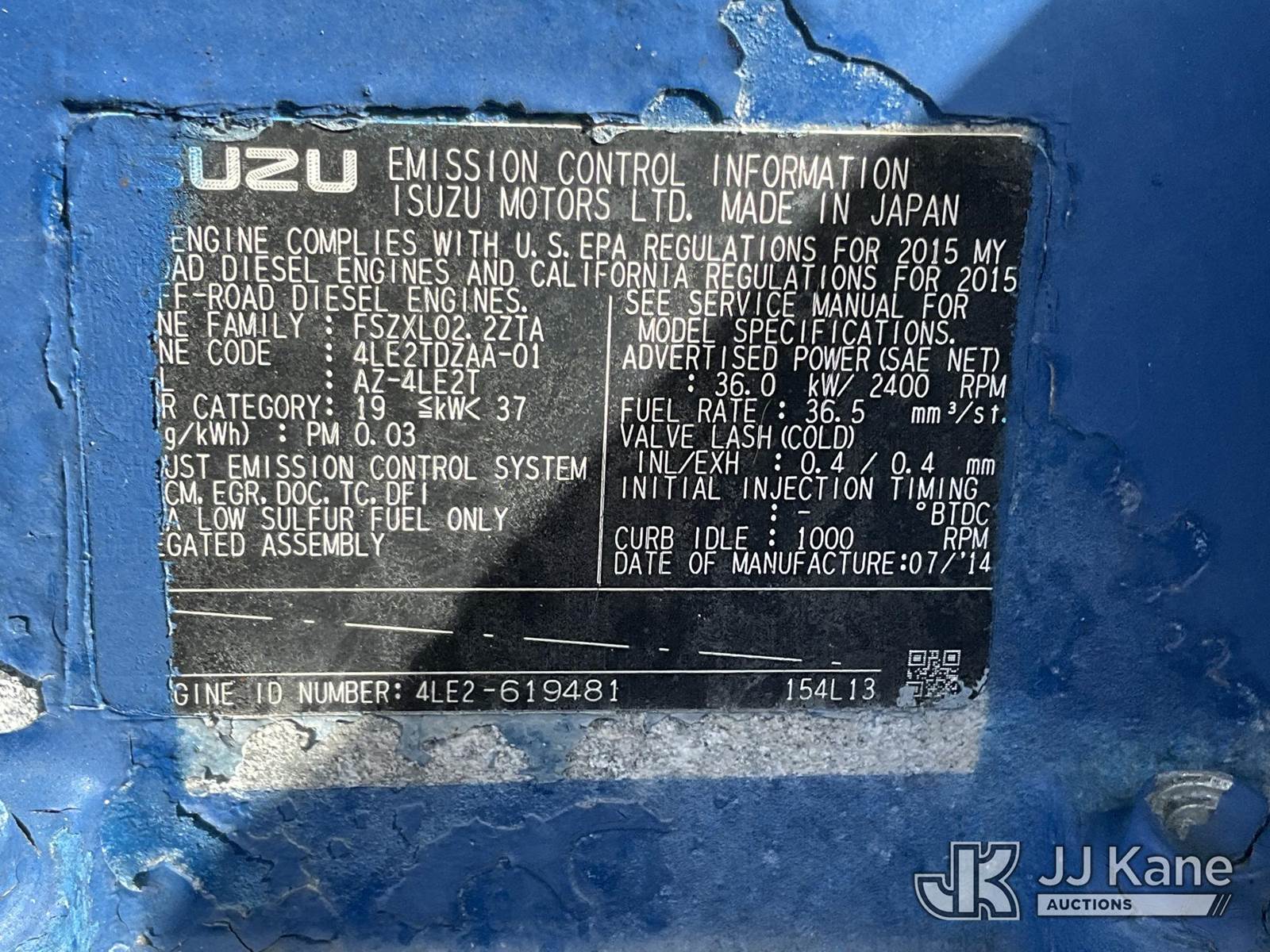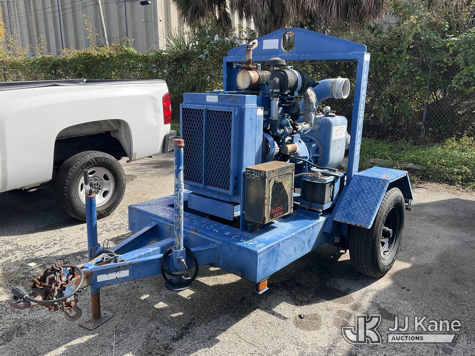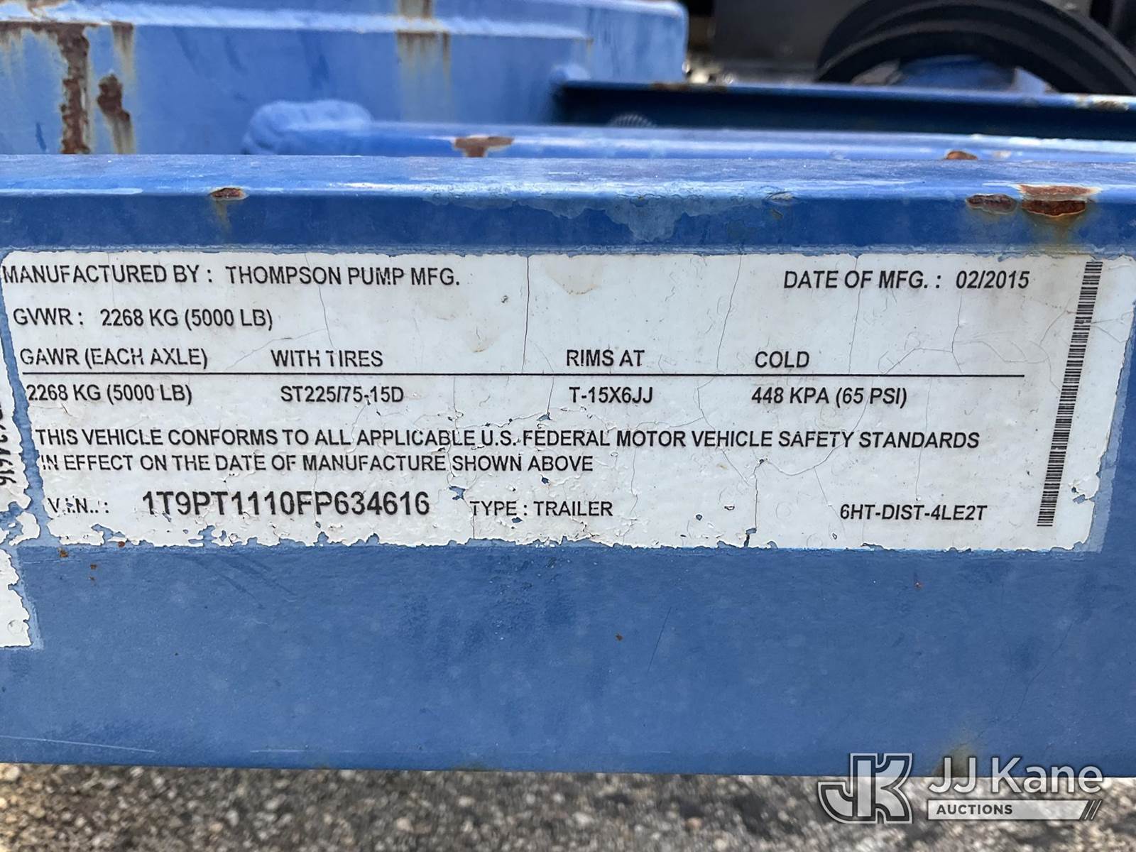 2015 Thompson Water Pump, s/n 6HT-2152, Isuzu diesel, trailer mtd. Vin: 1T9PT1110FP634616 (No Title) (Operating Condition Unknown, Paint Damage & Rust) NOTE: This unit is being sold AS IS/WHERE IS via Timed Auction and is located in West Palm Beach, FL. For Pick Up & Removal information, please contact: Andy Garcia @ 561-215-0085. Removals require 24-hr Notice by Appointment Only, Buyer/Hauler must present copy of Paid-in-Full JJ Kane Release Form upon arrival. Purchaser acknowledges ALL lots must be removed within 10 business days of Auction, or a towing & storage fee may be incurred. (Buyer is responsible for removal. Assistance by consignor or JJ Kane Auctions is not assured.)