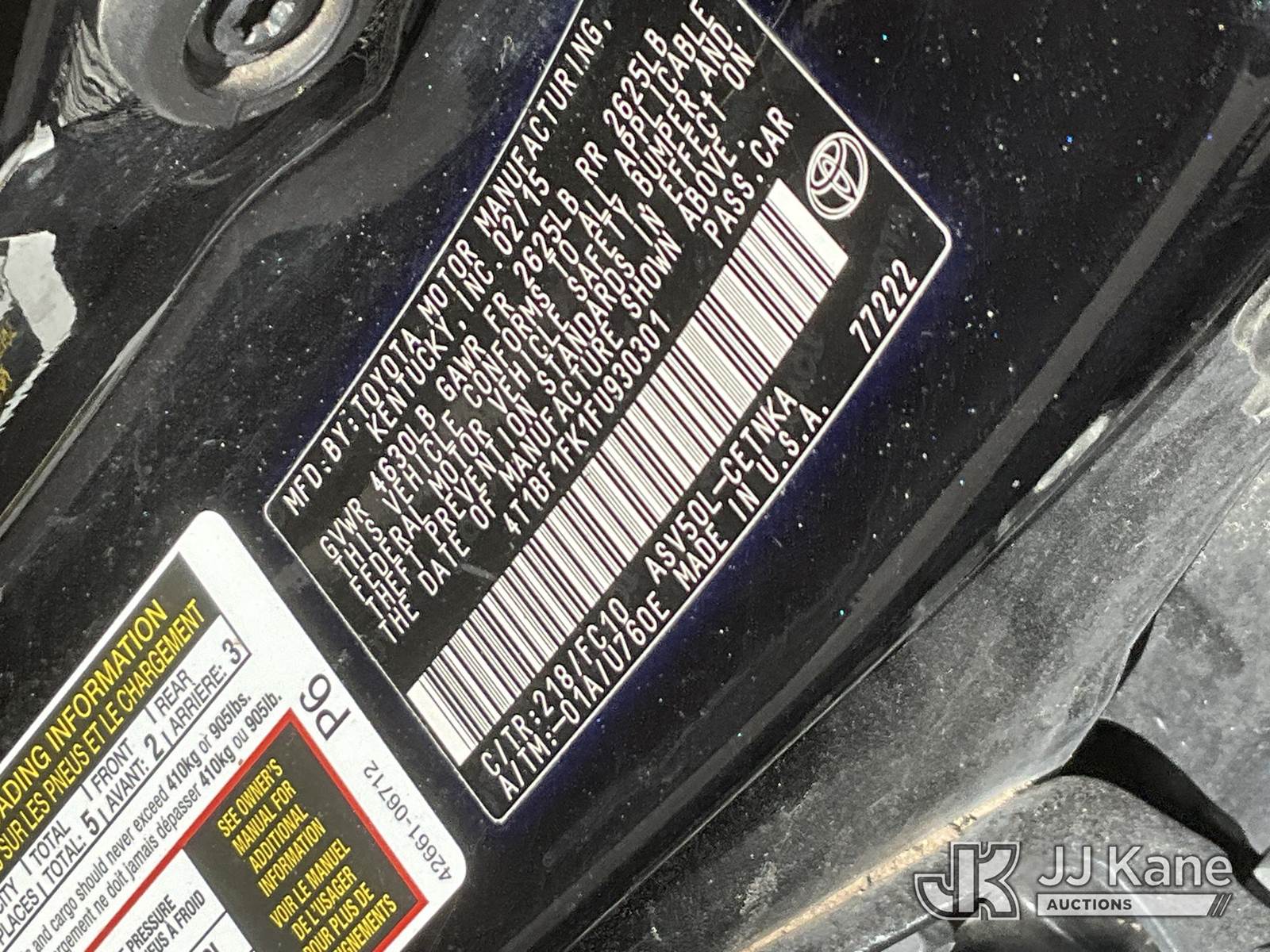 2015 Toyota Camry 4-Door Sedan, 4-cyl gas, Auto, A/C, (162,734 miles) (Runs & Moves) (Airbag Light On) This is a Titled Item NOTE: This unit is being sold AS IS/WHERE IS via Timed Auction and is located in Salt Lake City, UT. Inspection & preview days for this unit are the 2 business days prior to the first day of items closing for this auction, item is located at 2353 N Redwood Rd Salt Lake City, UT 84116 and hours of operations are 8a-4p. Titles executed exactly as bidder registered. Ensure your name and/or business name and address in JJ Kane and/or ProxiBid is correct before bidding. For pre-sale questions, please contact Office Staff @ (801) 519-0123. (Buyer is responsible for removal. Assistance by consignor or JJ Kane Auctions is not assured.)