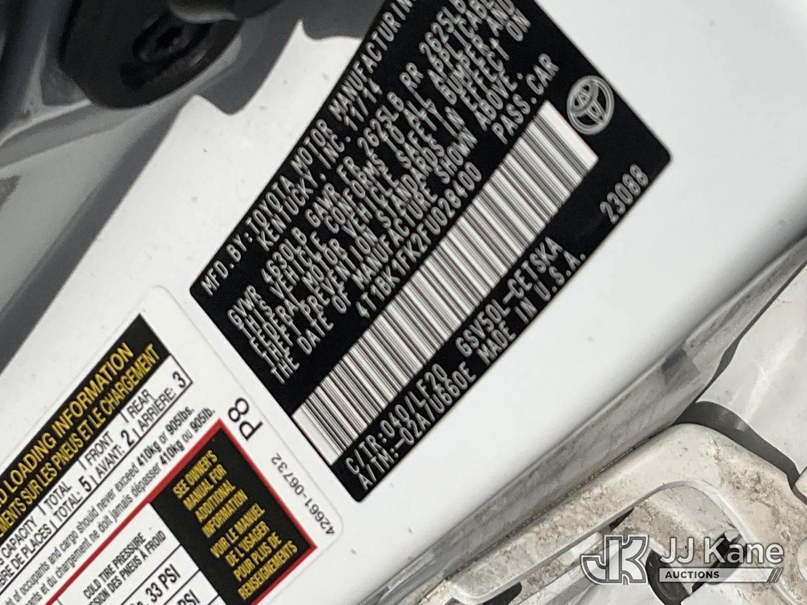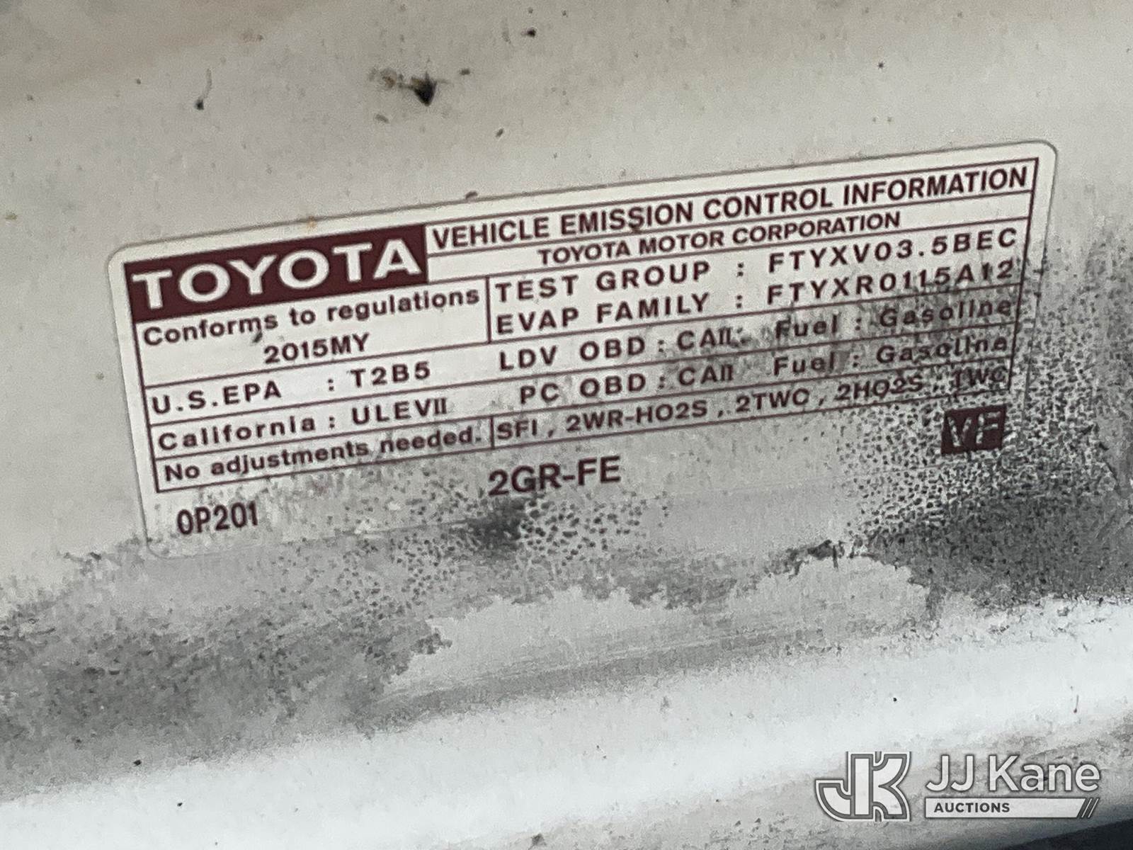 2015 Toyota Camry 4-Door Sedan, 6-cyl gas, Auto, A/C, (161,609 miles) (Runs & Moves) This is a Titled Item NOTE: This unit is being sold AS IS/WHERE IS via Timed Auction and is located in Salt Lake City, UT. Inspection & preview days for this unit are the 2 business days prior to the first day of items closing for this auction, item is located at 2353 N Redwood Rd Salt Lake City, UT 84116 and hours of operations are 8a-4p. Titles executed exactly as bidder registered. Ensure your name and/or business name and address in JJ Kane and/or ProxiBid is correct before bidding. For pre-sale questions, please contact Office Staff @ (801) 519-0123. (Buyer is responsible for removal. Assistance by consignor or JJ Kane Auctions is not assured.)