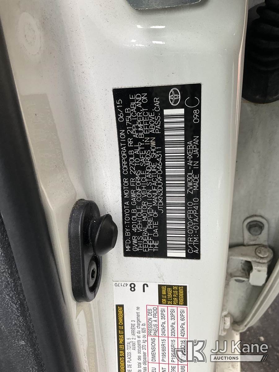 2015 Toyota Prius Hybrid 4-Door Hatch Back, 4-cyl Gas/Electric, Continuously Variable Transmission, A/C, (66,130 miles) (Runs & Moves) This is a Titled Item NOTE: This unit is being sold AS IS/WHERE IS via Timed Auction and is located in Jurupa Valley, CA. Inspection & preview days for this unit are the 2 business days prior to the first day of items closing for this auction, item is located at 4510 Muth Way Jurupa Valley, CA 92509 and hours of operations are 8a-4p. For pre-sale questions, please contact please contact Office Staff @ (310) 353-7140. Dealer License Number 45696. (Buyer is responsible for removal. Assistance by consignor or JJ Kane Auctions is not assured.)