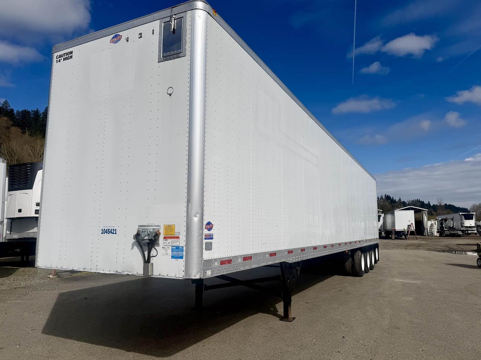 1045396-D, 2015 Utility DX4000 – 53’ Quad-axle High cube swing door Dry Van, 53’ x 102” x 14' Tall Dry van, Tri-axle Spring ride suspension...