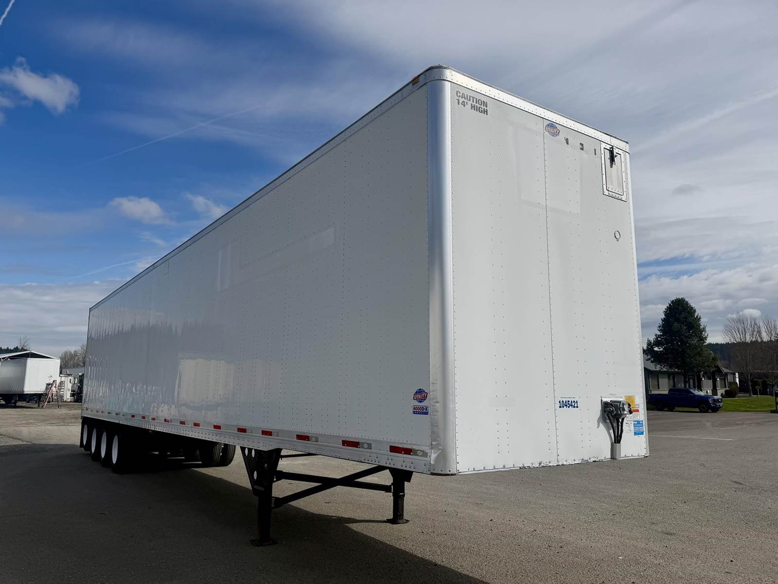 1045405-D 2015 Utility DX4000 – 53’ Quad-axle High cube swing door Dry Van, 53’ x 102” x 14' Tall Dry van, Tri-axle Spring ride suspension...