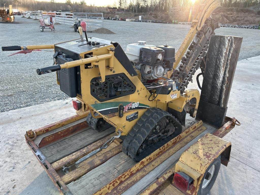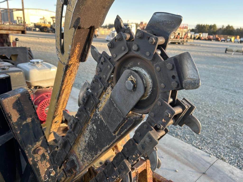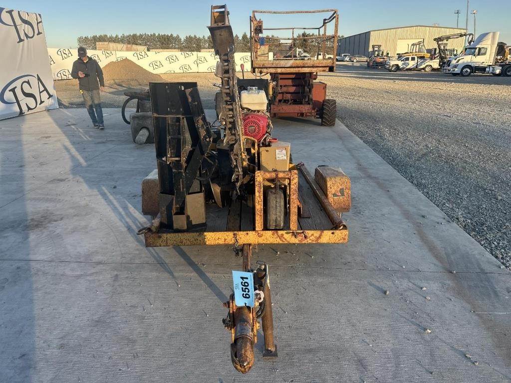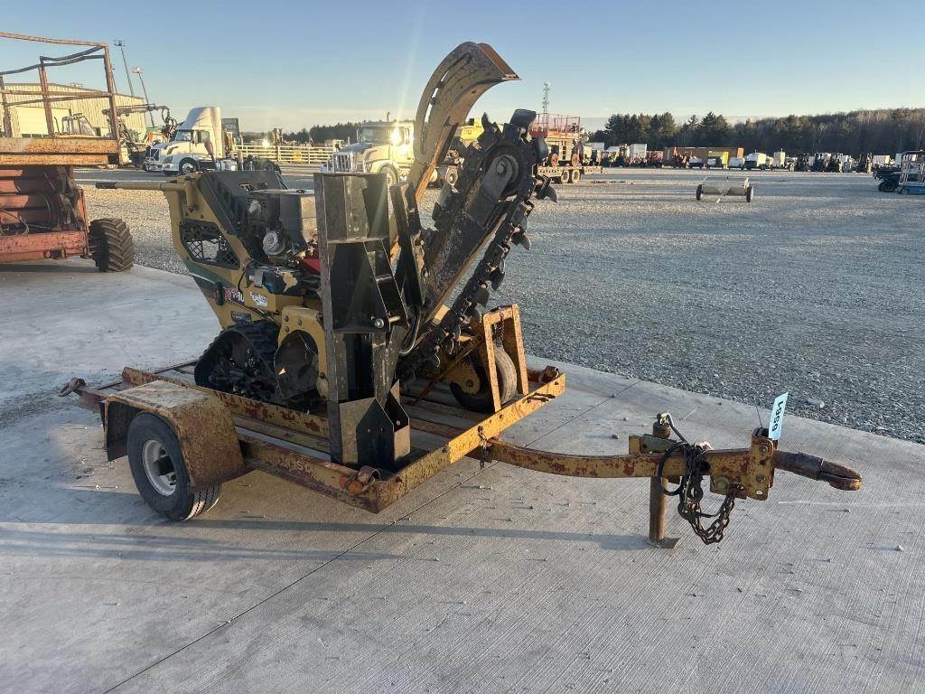 Location: ISA Yard: Merrill, WI Honda GX390 Gasoline Engine, Walk Behind W/ Hydrostatic Drive, Approx 36" Max Trenching Depth, Auger, Approx 7" Rubber Tracks, Trailer GVWR: 2000LB, Approx 6' Deck Length, Approx 52" Deck Width, Tilt Deck, (4) D-Ring Tie Downs, Adjustable 2" Coupler, 5.70-8 Tires, Comes W/ Approx 40" Blade, No Title for Trailer, Bill of Sale Only Serial: 1VR9071R2F1001960 Hours Shown: 755