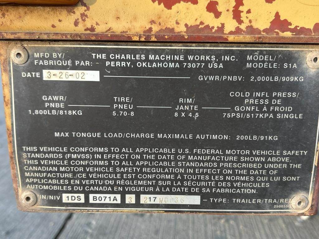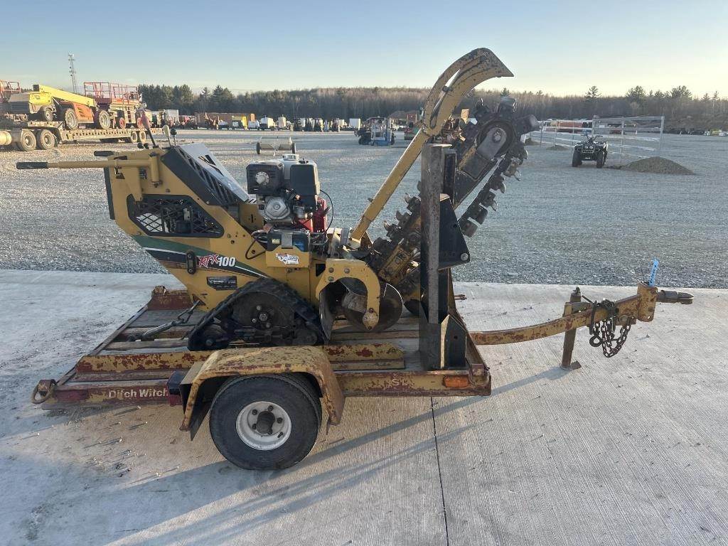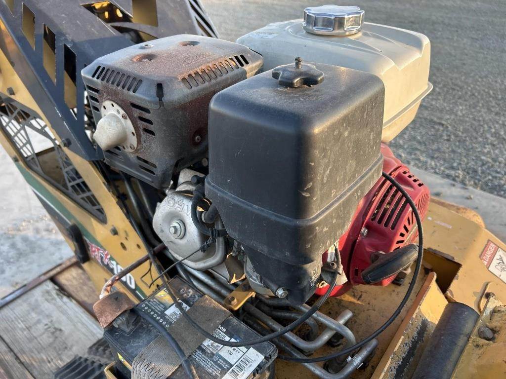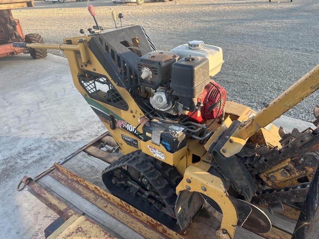 Location: ISA Yard: Merrill, WI Honda GX390 Gasoline Engine, Walk Behind W/ Hydrostatic Drive, Approx 36" Max Trenching Depth, Auger, Approx 7" Rubber Tracks, Trailer GVWR: 2000LB, Approx 6' Deck Length, Approx 52" Deck Width, Tilt Deck, (4) D-Ring Tie Downs, Adjustable 2" Coupler, 5.70-8 Tires, Comes W/ Approx 40" Blade, No Title for Trailer, Bill of Sale Only Serial: 1VR9071R2F1001960 Hours Shown: 755
