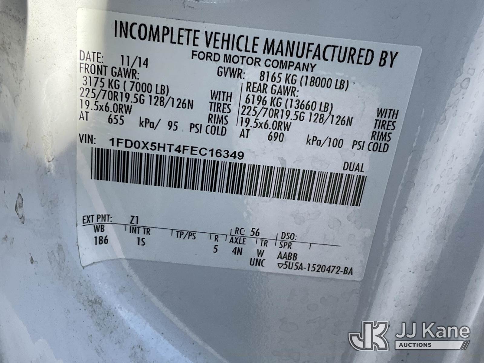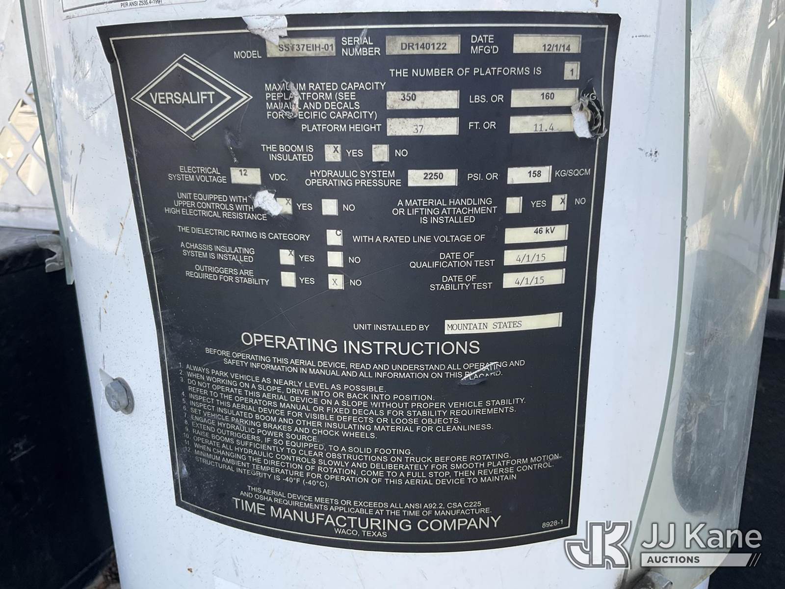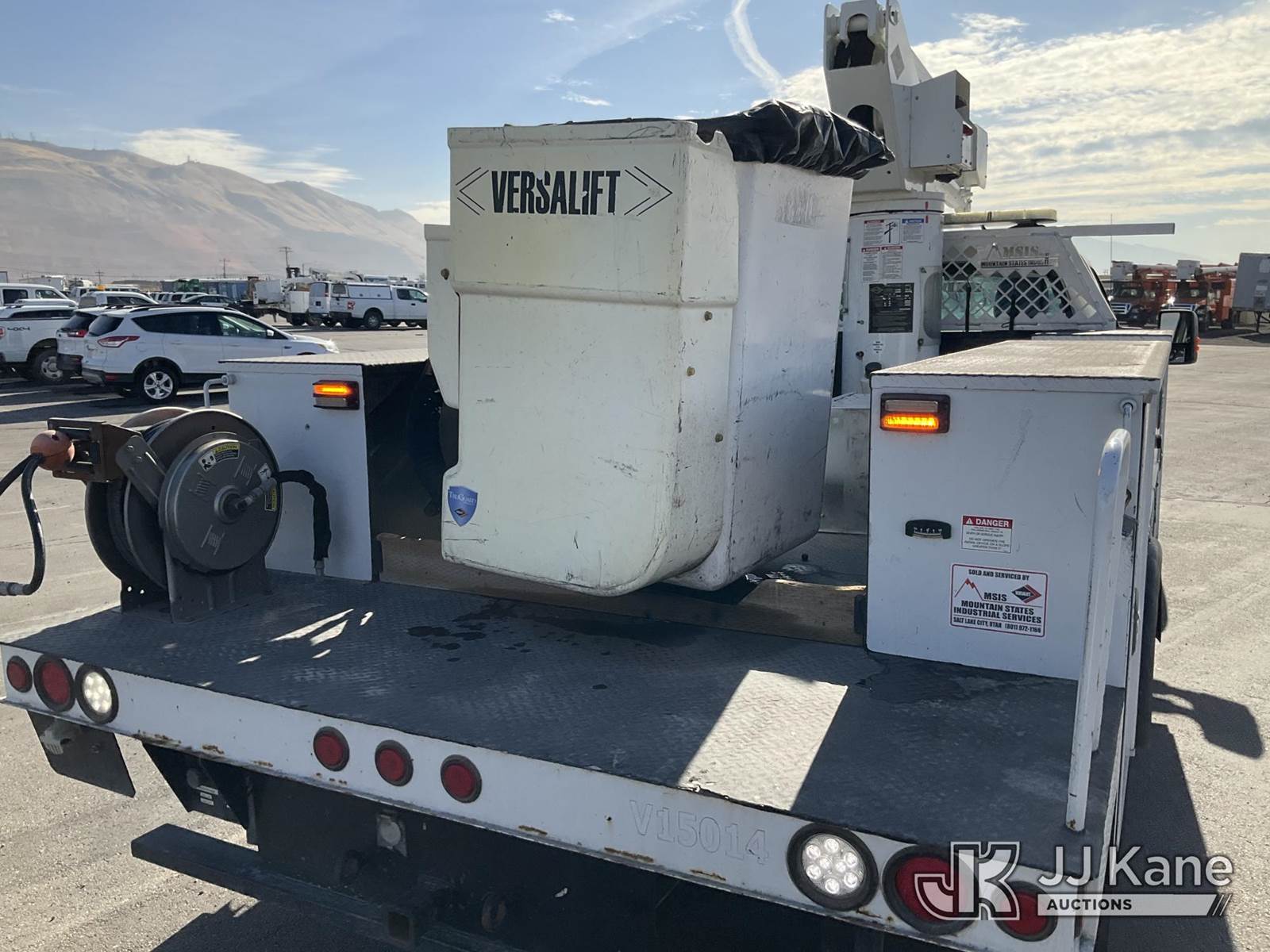 Versalift SST37EIH-01, 42 ft, Articulating & Telescopic Bucket Truck s/n DR140122, with Single-Man Bucket, mounted behind cab on 2015 Ford F550 Service Truck, 6.7L Diesel 4wd, Auto, A/C, (49,273 miles) (Runs, Moves & Upper Operates) This is a Titled Item NOTE: This unit is being sold AS IS/WHERE IS via Timed Auction and is located in Salt Lake City, UT. Inspection & preview days for this unit are the 2 business days prior to the first day of items closing for this auction, item is located at 2353 N Redwood Rd Salt Lake City, UT 84116 and hours of operations are 8a-4p. Titles executed exactly as bidder registered. Ensure your name and/or business name and address in JJ Kane and/or ProxiBid is correct before bidding. For pre-sale questions, please contact Office Staff @ (801) 519-0123. (Manuals provided in cab) (Buyer is responsible for removal. Assistance by consignor or JJ Kane Auctions is not assured.)