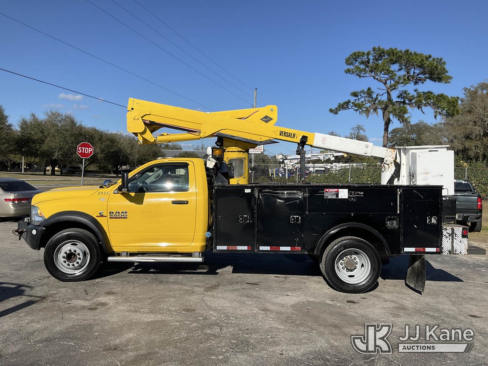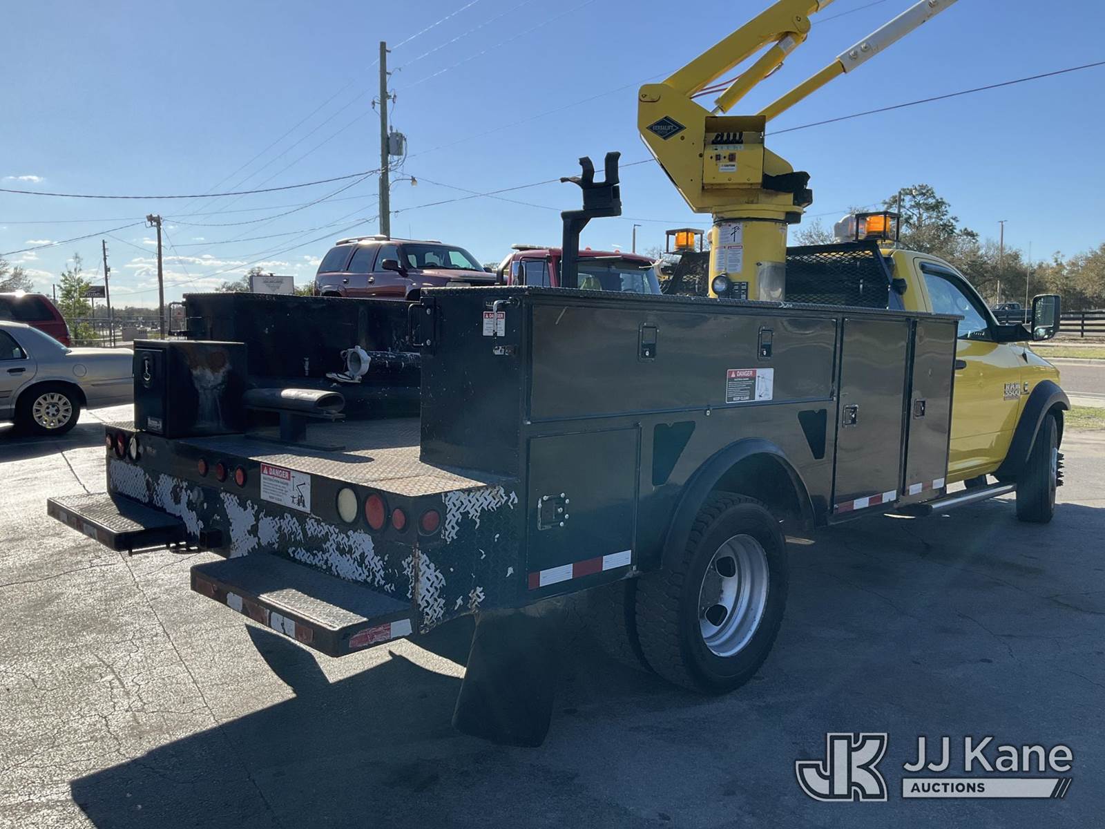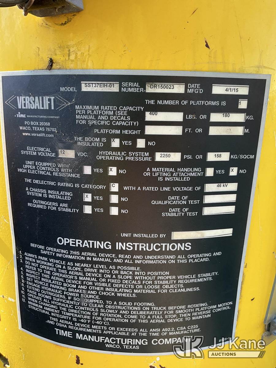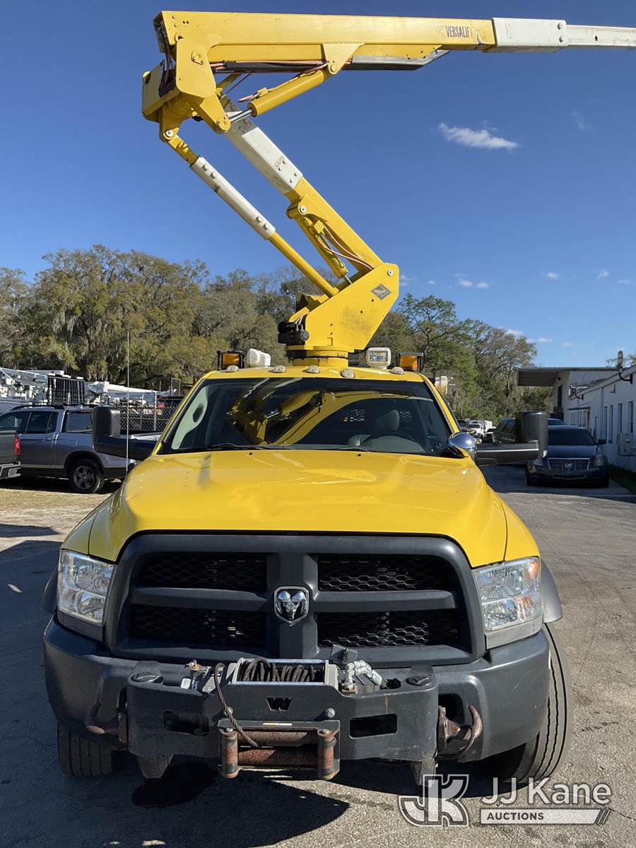 Versalift SST37EIH-01, 42 ft, Articulating & Telescopic Bucket Truck s/n DR150023, with single-man bucket, mounted behind cab on 2015 RAM 5500 4x4 Service Truck, Cummins 6.7L diesel, Auto, A/C, with front winch, (194,785 miles) (Runs, Moves & Upper Operates) (Check Engine Light On, Minor Body and Paint Issues) This is a Titled Item NOTE: This unit is being sold AS IS/WHERE IS via Timed Auction and is located in Ocala, FL. Inspection & preview days for this unit are by appointment only; please contact us at contact@jjkane.com or 84-Go-JJKane for more details. For more information & removal arrangements please contact Mike Lessard @ (352) 629-6677. (Manuals provided in cab) (Buyer is responsible for removal. Assistance by consignor or JJ Kane Auctions is not assured.)