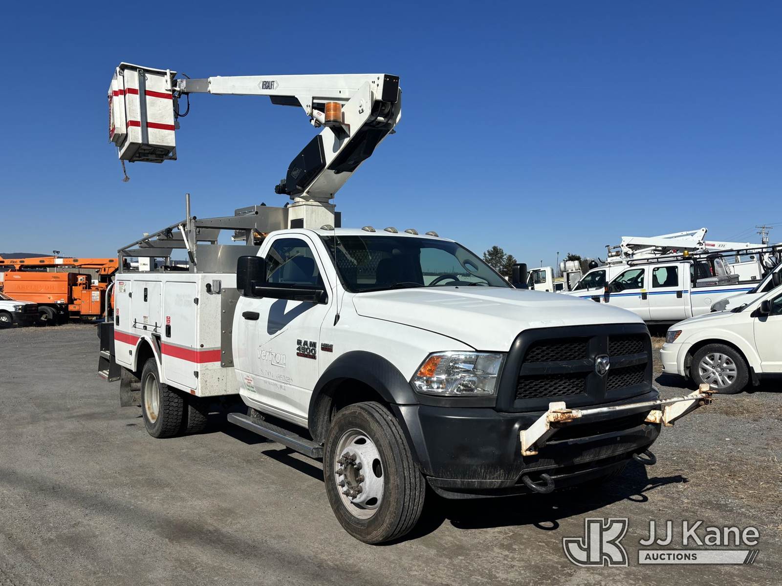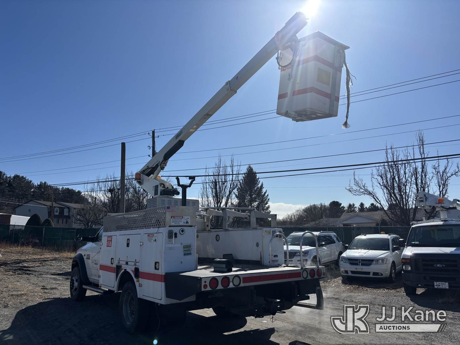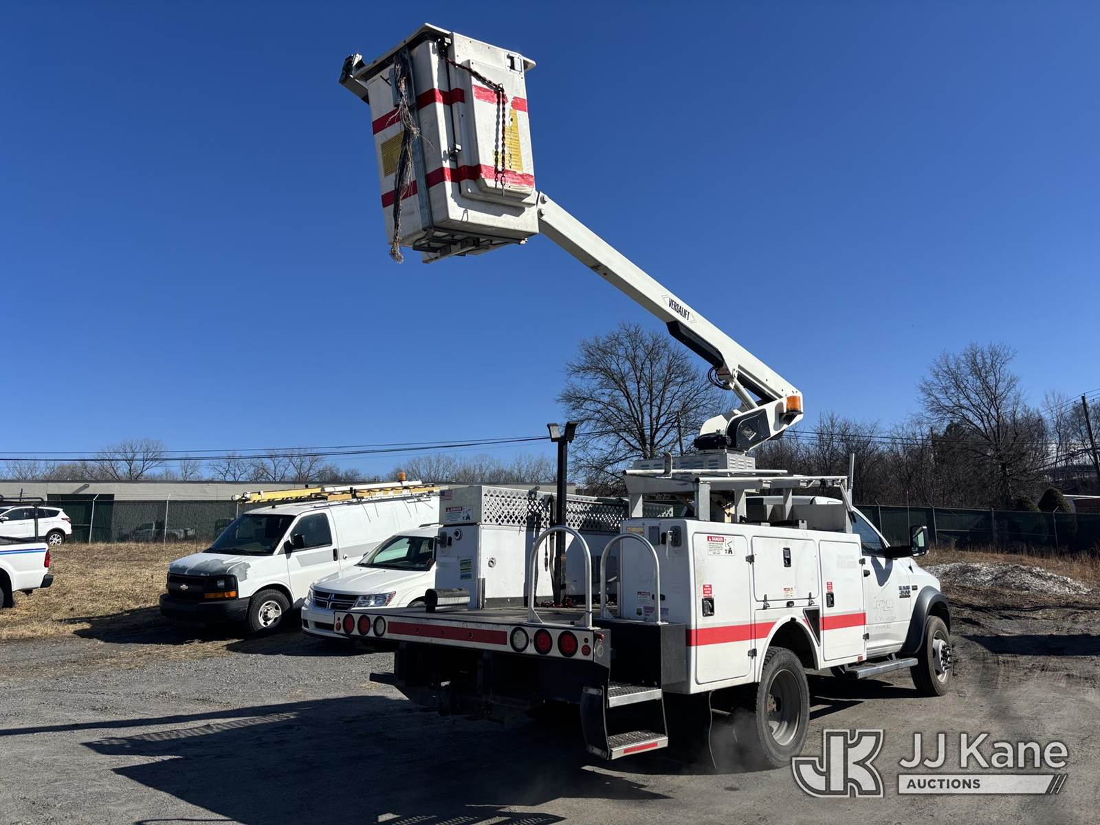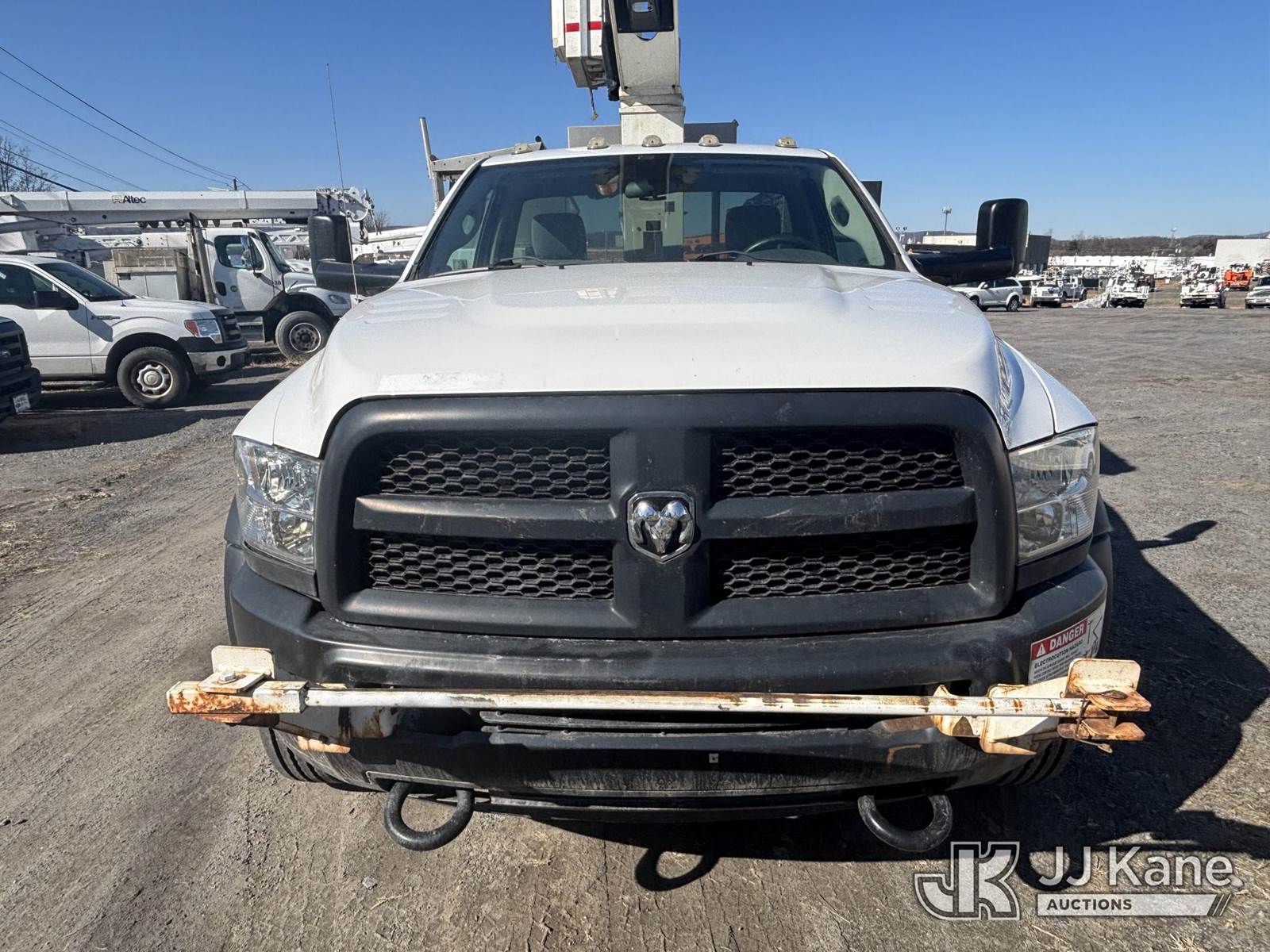 Versalift TEL29N03, 350 Lb 30 ft, Articulating & Telescopic Bucket Truck s/n AG150382, with One-Man Bucket On Non-Insulated Booms, mounted behind cab on 2015 Ram 4500 Super Duty Service Truck, 6.4L 8-cyl Gas, Auto, A/C, (48,557 miles) (**Dealer Only** Runs, Moves, Upper Operates, Check Engine Light On, Rust, Must Tow Rear Differential Concerns)(Seller States this item has been removed from service: Severe Subbase Corrosion - Requires ANSI Inspection for repair/replacement requirements.) (Bidding Restricted to Licensed Vehicle Dealers Only), This is a Titled Item NOTE: This unit is being sold AS IS/WHERE IS via Timed Auction and is located in Plains, PA. Inspection & preview days for this unit are the 2 business days prior to the first day of items closing for this auction, item is located at 250 Laird St Plains, PA 18705 and hours of operations are 8a-4p.For pre-sale questions, please contact Mary Darlington @ (570) 899-4930 or Mary.Darlington@JJKane.com. (Missing manuals, See Auction Company for Manufacturers Information to obtain manuals) (Buyer is responsible for removal. Assistance by consignor or JJ Kane Auctions is not assured.)