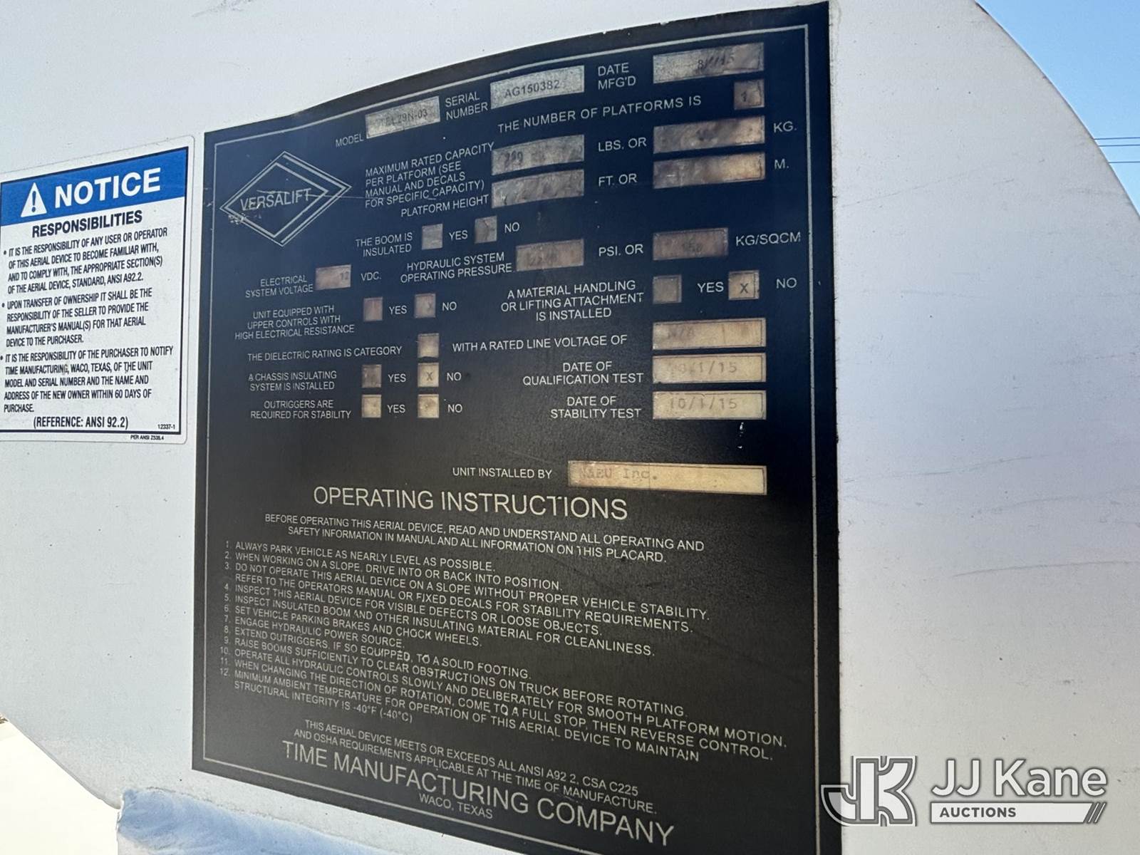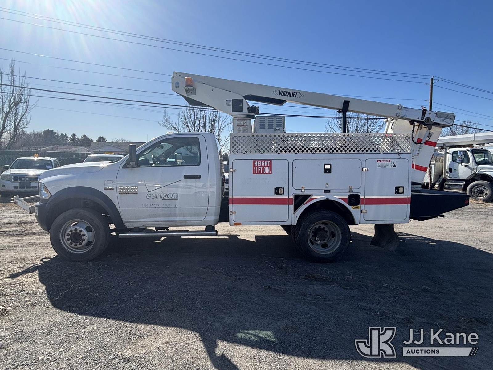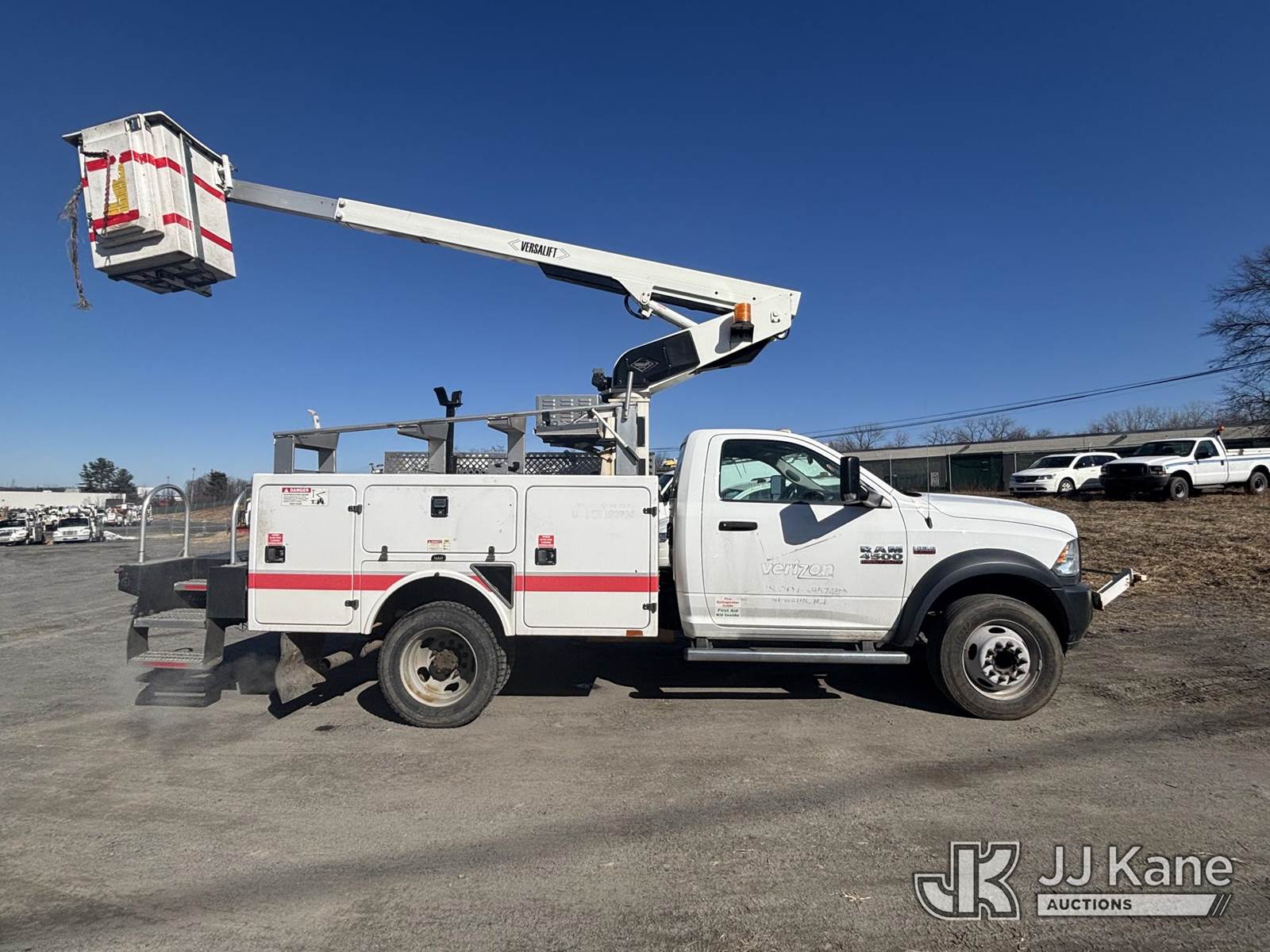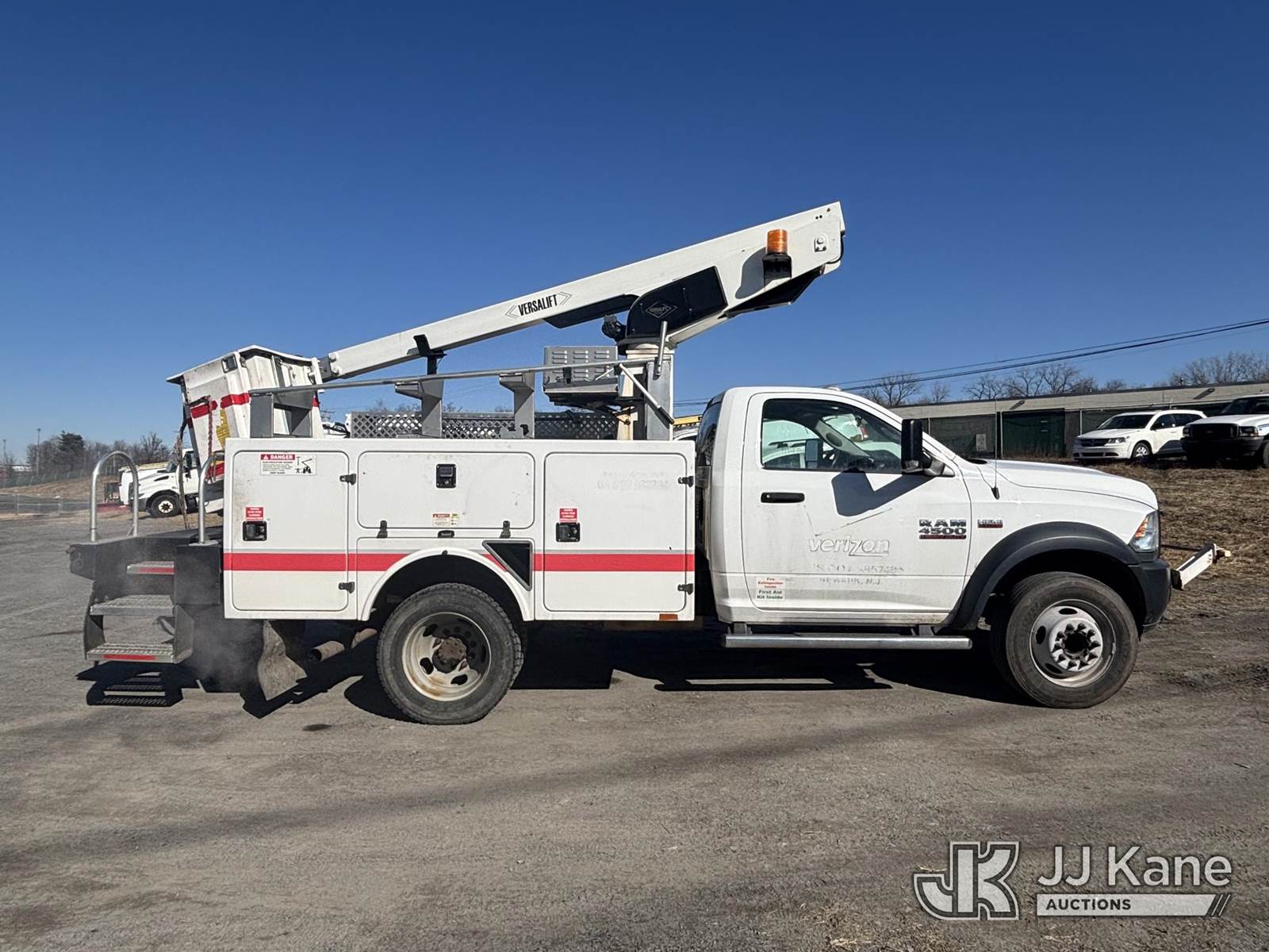 Versalift TEL29N03, 350 Lb 30 ft, Articulating & Telescopic Bucket Truck s/n AG150382, with One-Man Bucket On Non-Insulated Booms, mounted behind cab on 2015 Ram 4500 Super Duty Service Truck, 6.4L 8-cyl Gas, Auto, A/C, (48,557 miles) (**Dealer Only** Runs, Moves, Upper Operates, Check Engine Light On, Rust, Must Tow Rear Differential Concerns)(Seller States this item has been removed from service: Severe Subbase Corrosion - Requires ANSI Inspection for repair/replacement requirements.) (Bidding Restricted to Licensed Vehicle Dealers Only), This is a Titled Item NOTE: This unit is being sold AS IS/WHERE IS via Timed Auction and is located in Plains, PA. Inspection & preview days for this unit are the 2 business days prior to the first day of items closing for this auction, item is located at 250 Laird St Plains, PA 18705 and hours of operations are 8a-4p.For pre-sale questions, please contact Mary Darlington @ (570) 899-4930 or Mary.Darlington@JJKane.com. (Missing manuals, See Auction Company for Manufacturers Information to obtain manuals) (Buyer is responsible for removal. Assistance by consignor or JJ Kane Auctions is not assured.)