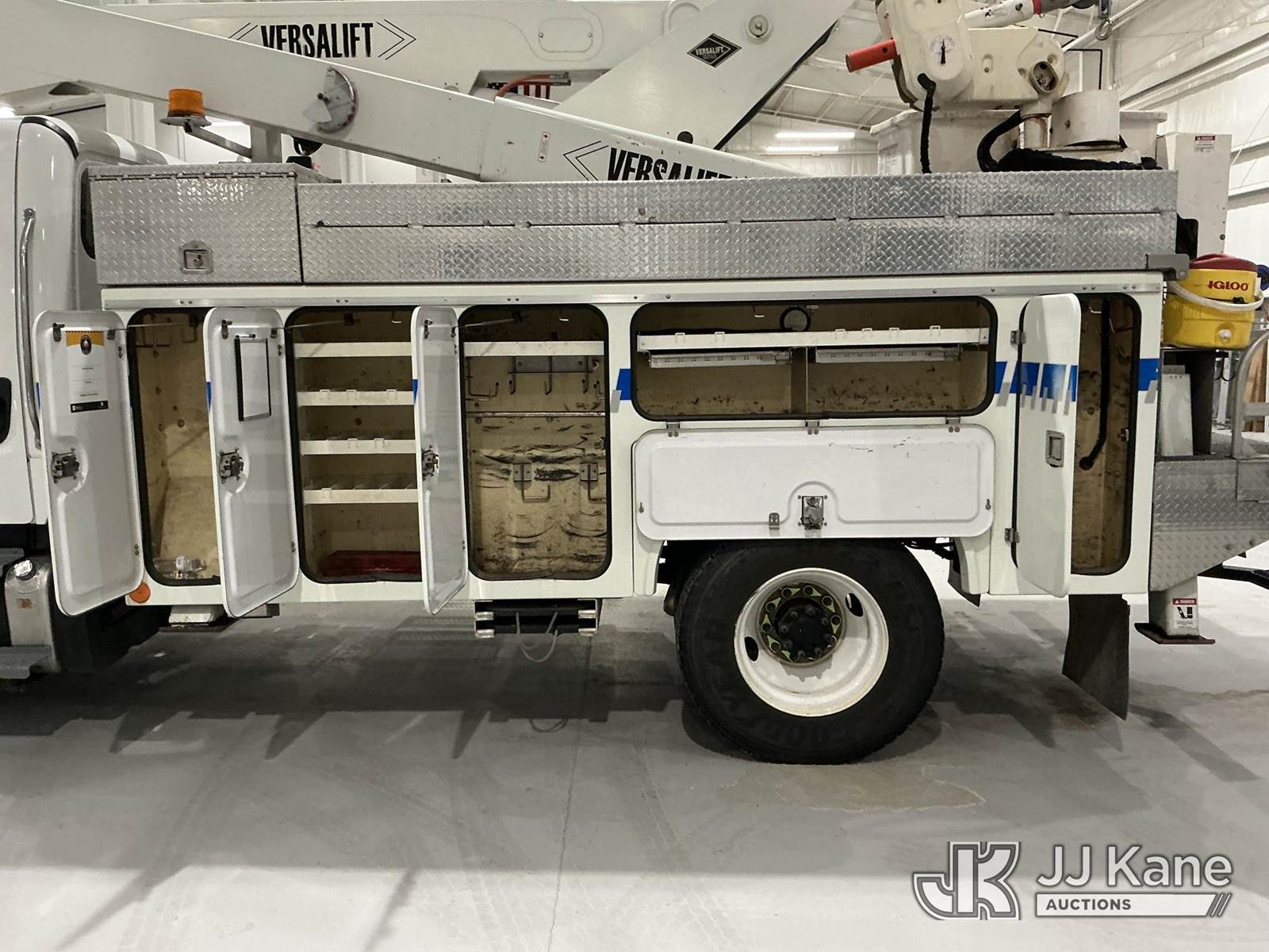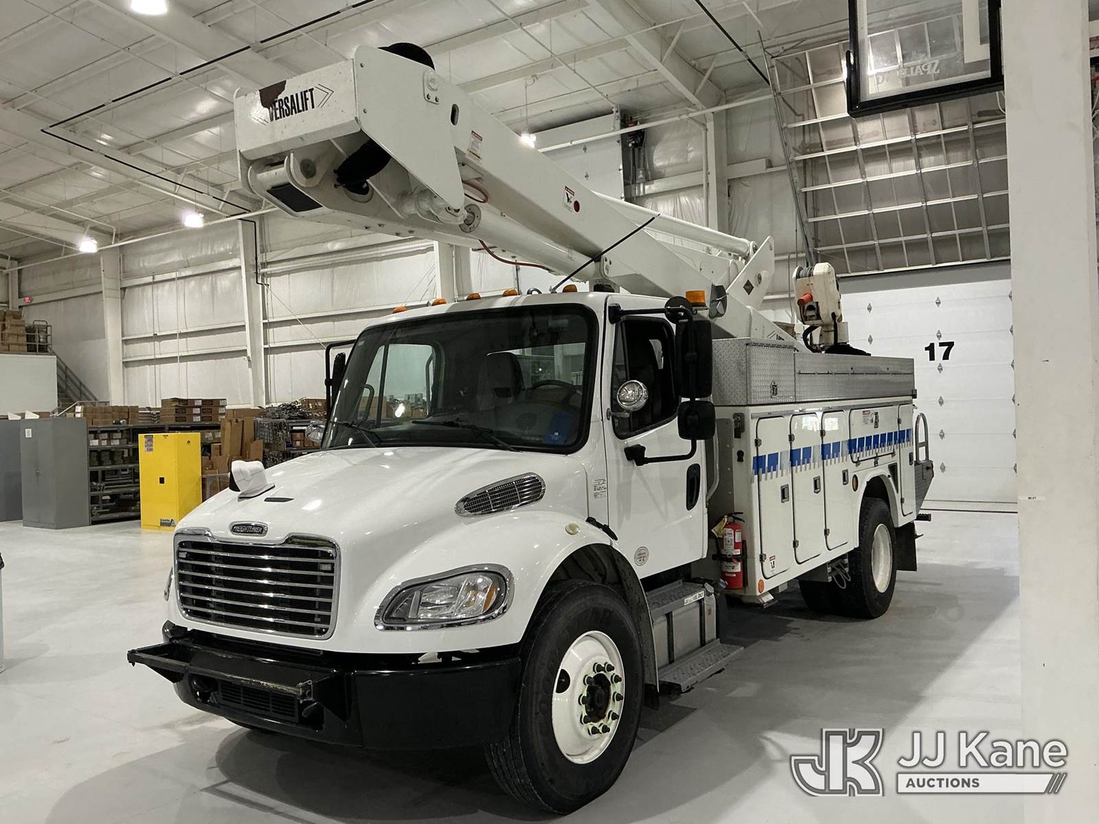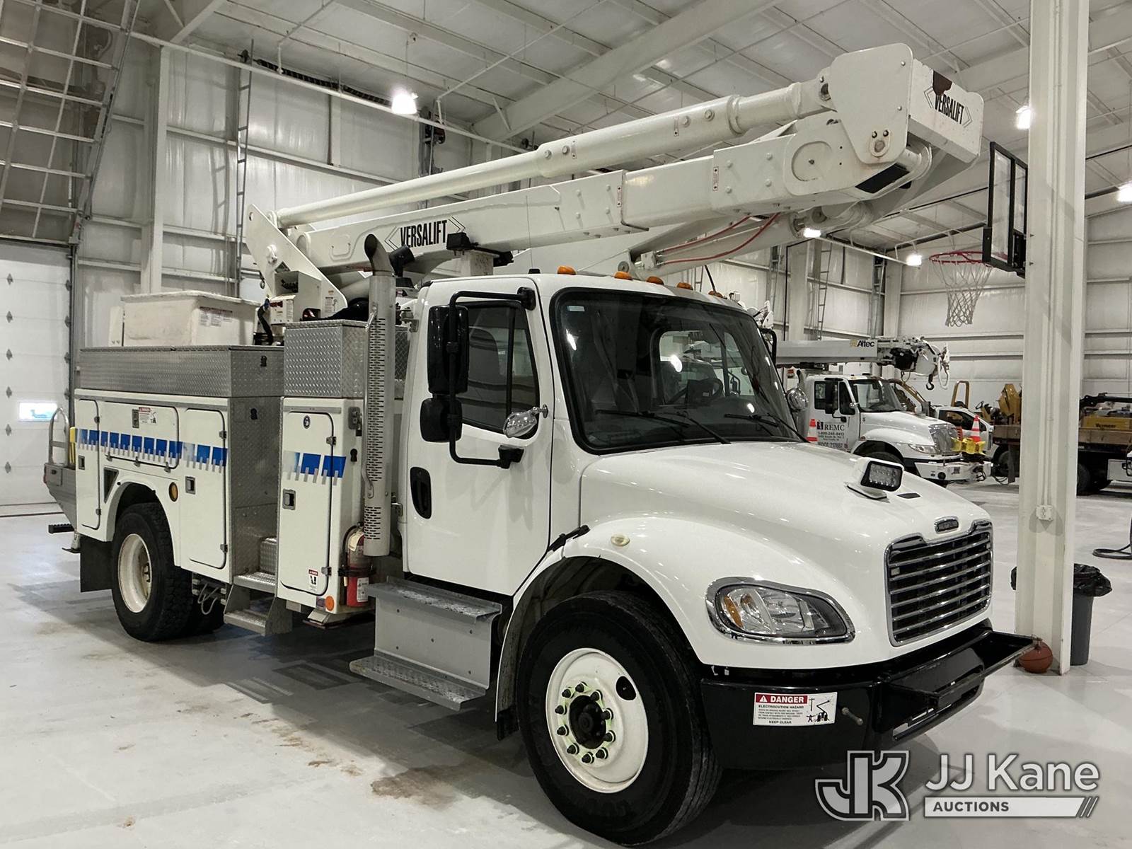 Versalift VST-6000I01, 65 ft, Articulating & Telescopic Material Handling Bucket Truck s/n GJ140014, with two-man bucket & 4 hyd outriggers, center mounted on 2015 Freightliner M2 106 Utility Truck, 6.7L L6 diesel, Auto, 4X2, (86,591 miles) (Per Seller: Due for Dielectric Testing) (Starts, Runs, Moves, And Upper Operates. Co-Op Owned And Maintained Since New) (Reads 8,795 hours) This is a Titled Item NOTE: This unit is being sold AS IS/WHERE IS via Timed Auction and is located in New Castle, IN. (Missing manuals, See Auction Company for Manufacturers Information to obtain manuals) (Buyer is responsible for removal. Assistance by consignor or JJ Kane Auctions is not assured.)