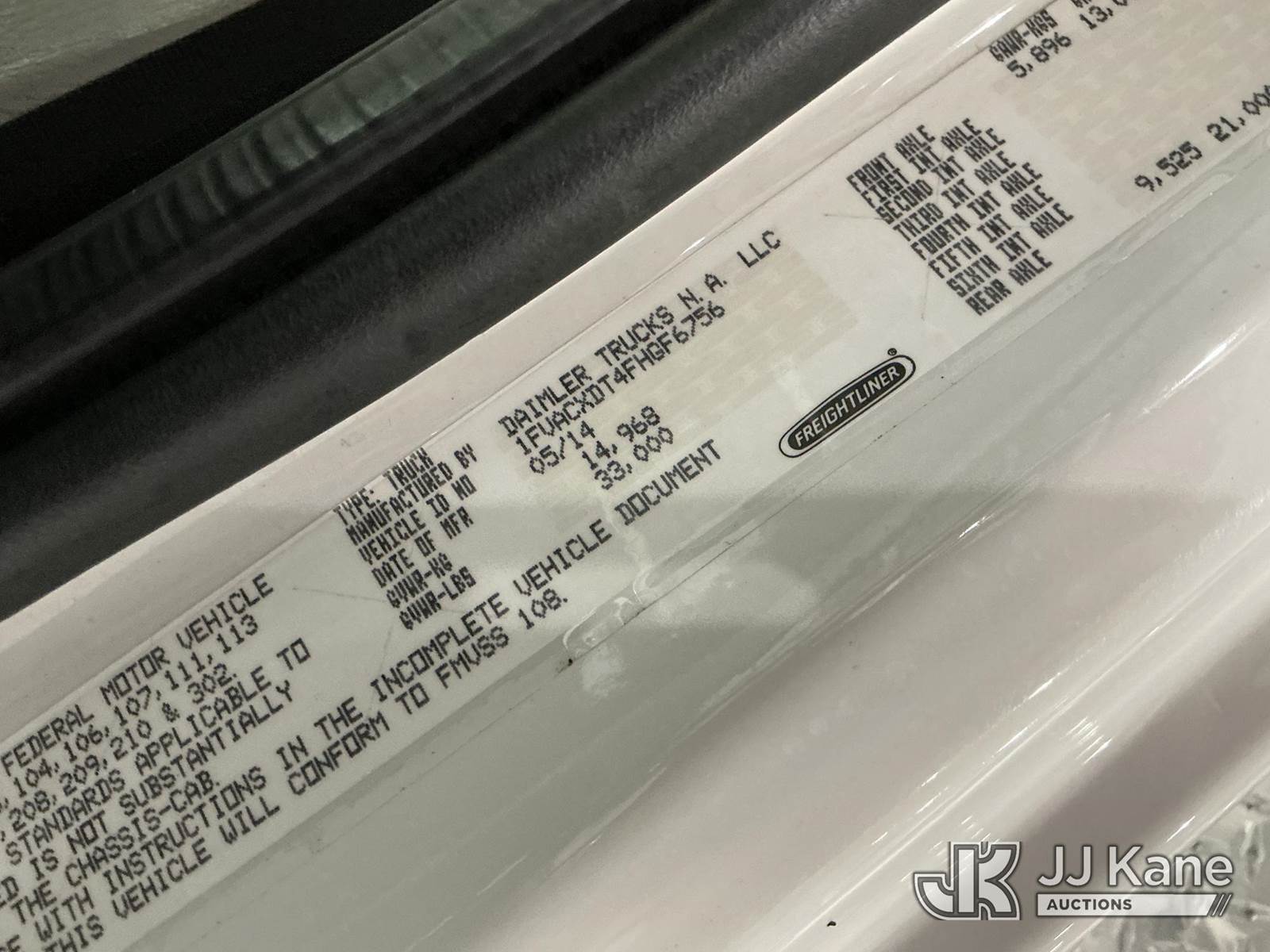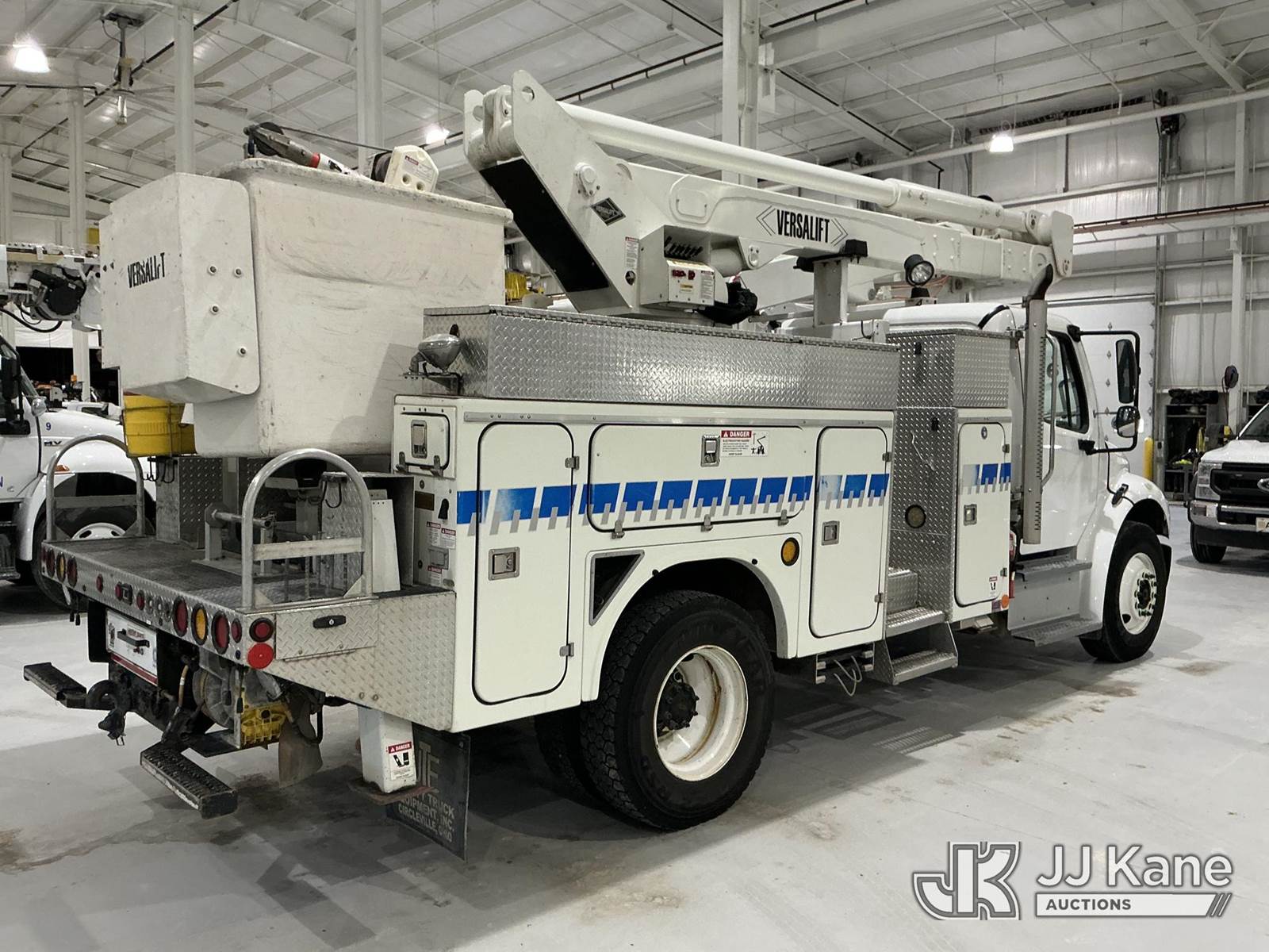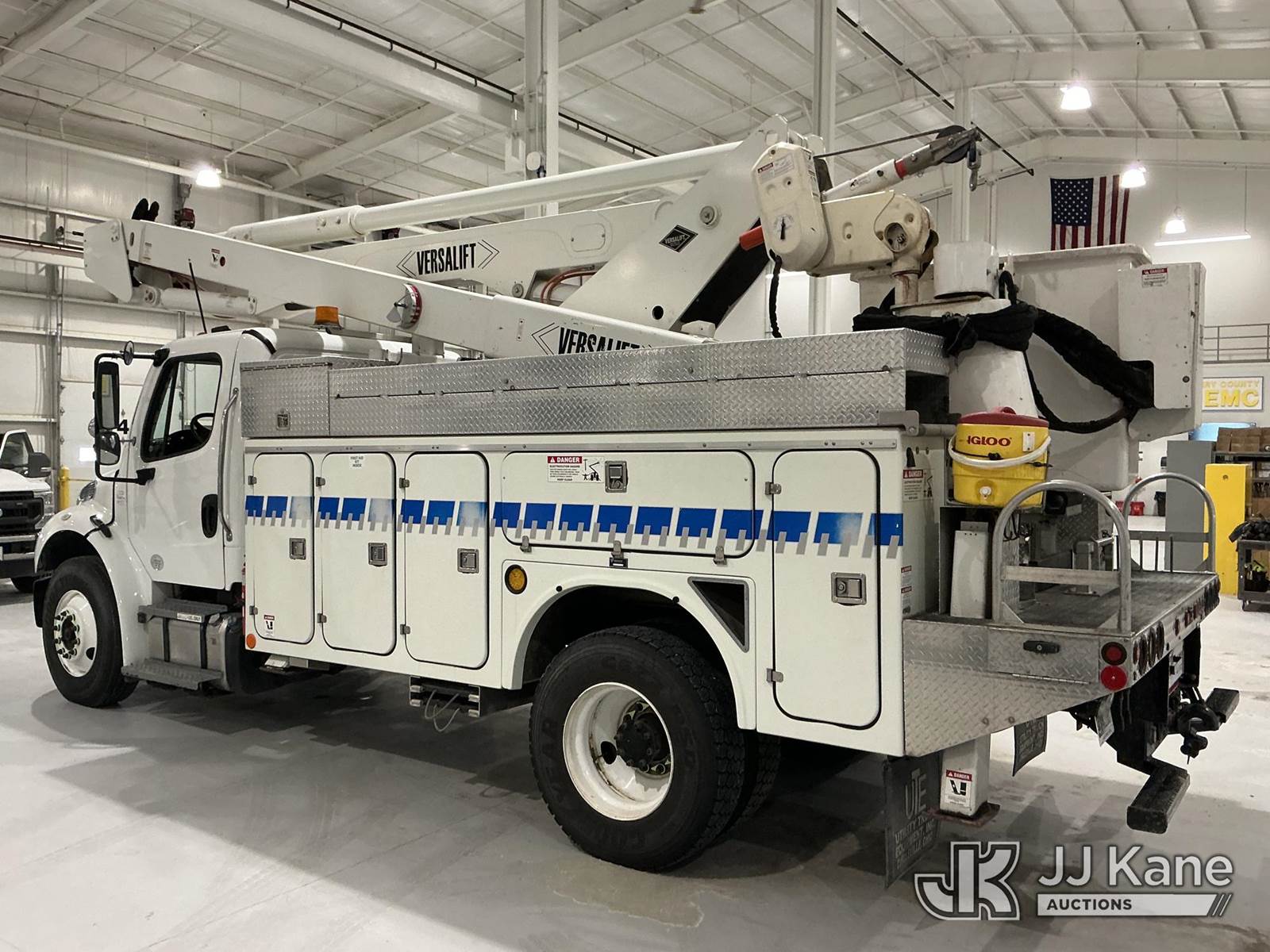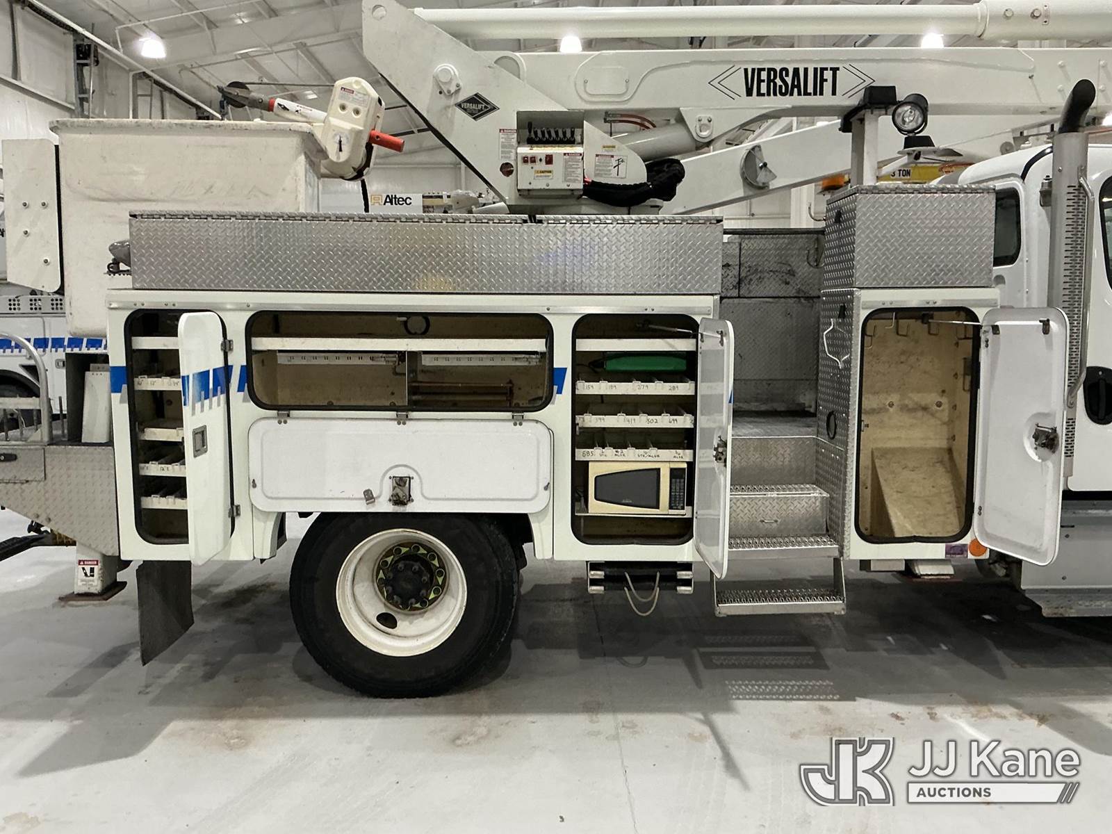Versalift VST-6000I01, 65 ft, Articulating & Telescopic Material Handling Bucket Truck s/n GJ140014, with two-man bucket & 4 hyd outriggers, center mounted on 2015 Freightliner M2 106 Utility Truck, 6.7L L6 diesel, Auto, 4X2, (86,591 miles) (Per Seller: Due for Dielectric Testing) (Starts, Runs, Moves, And Upper Operates. Co-Op Owned And Maintained Since New) (Reads 8,795 hours) This is a Titled Item NOTE: This unit is being sold AS IS/WHERE IS via Timed Auction and is located in New Castle, IN. (Missing manuals, See Auction Company for Manufacturers Information to obtain manuals) (Buyer is responsible for removal. Assistance by consignor or JJ Kane Auctions is not assured.)