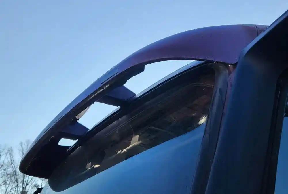 (Used) 2015 Volvo VNL, EXTERIOR SUN VISOR- Side: Center Of Truck, Color: Red Wine, Material: Fiberglass, Reference images for condition, For more information about this item, give us a call. We ship Worldwide! (CRG HEAVY TRUCK PARTS) 929 W PULASKI HWY ELKTON, MD 21921