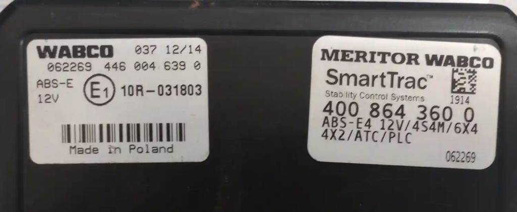 Wabco, Meritor ABS ECU, SmartTrac, ABS E, ABS E-4, 12v, 4S4M, 6X4, 4X2, ATC, PLC. Wabco P/N 4008643600, Meritor P/N 40086400900.