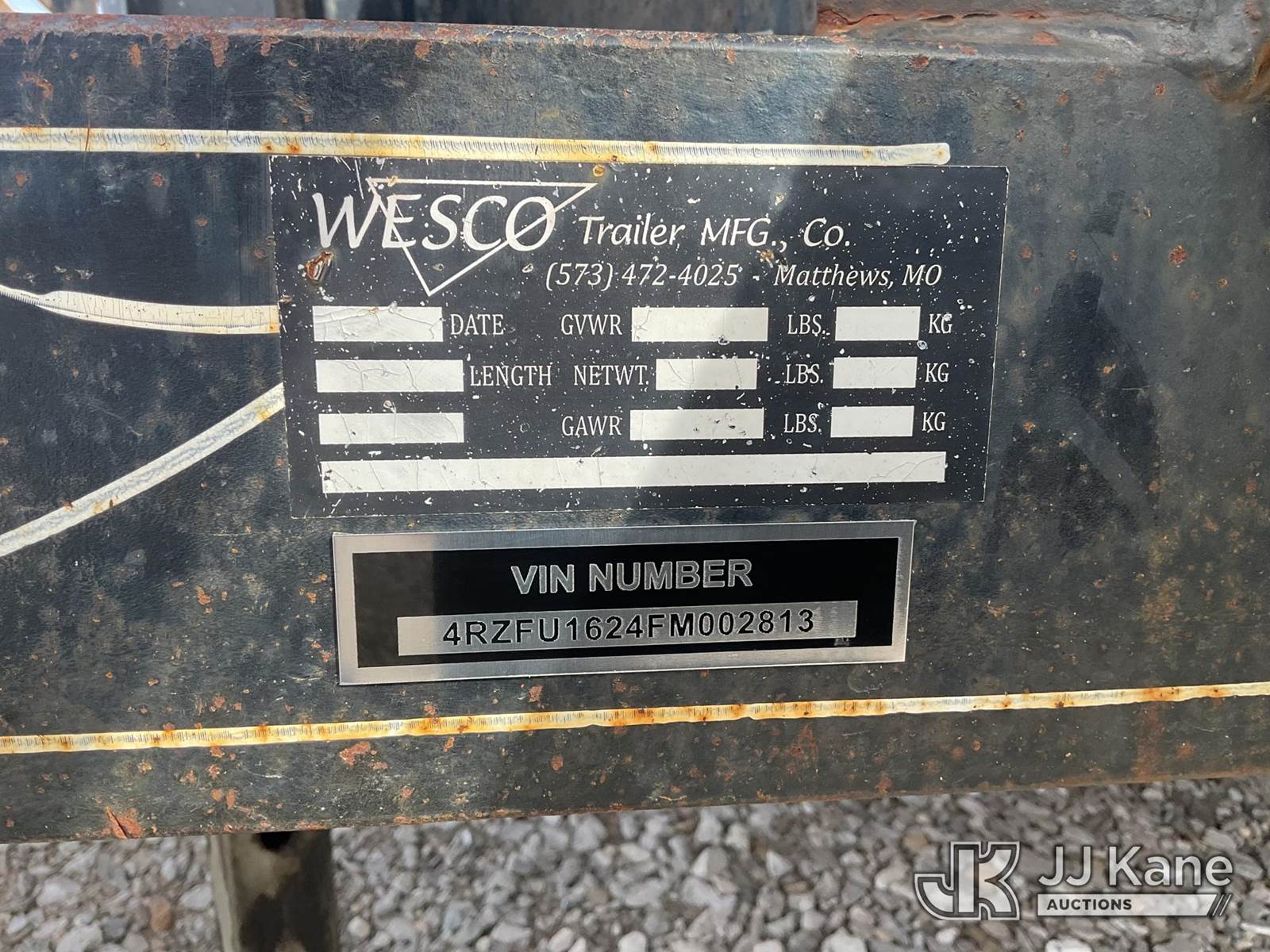 2015 Wesco T/A Tagalong Equipment Trailer, with 14ft, This is a Titled Item NOTE: This unit is being sold AS IS/WHERE IS via Timed Auction and is located in Sandoval, IL. Please call 24 hours in advance to arrange pickup. Mike Munnelly (417) 496-5889. Buyer responsible for loadout and removal of this asset. (Buyer is responsible for removal. Assistance by consignor or JJ Kane Auctions is not assured.)