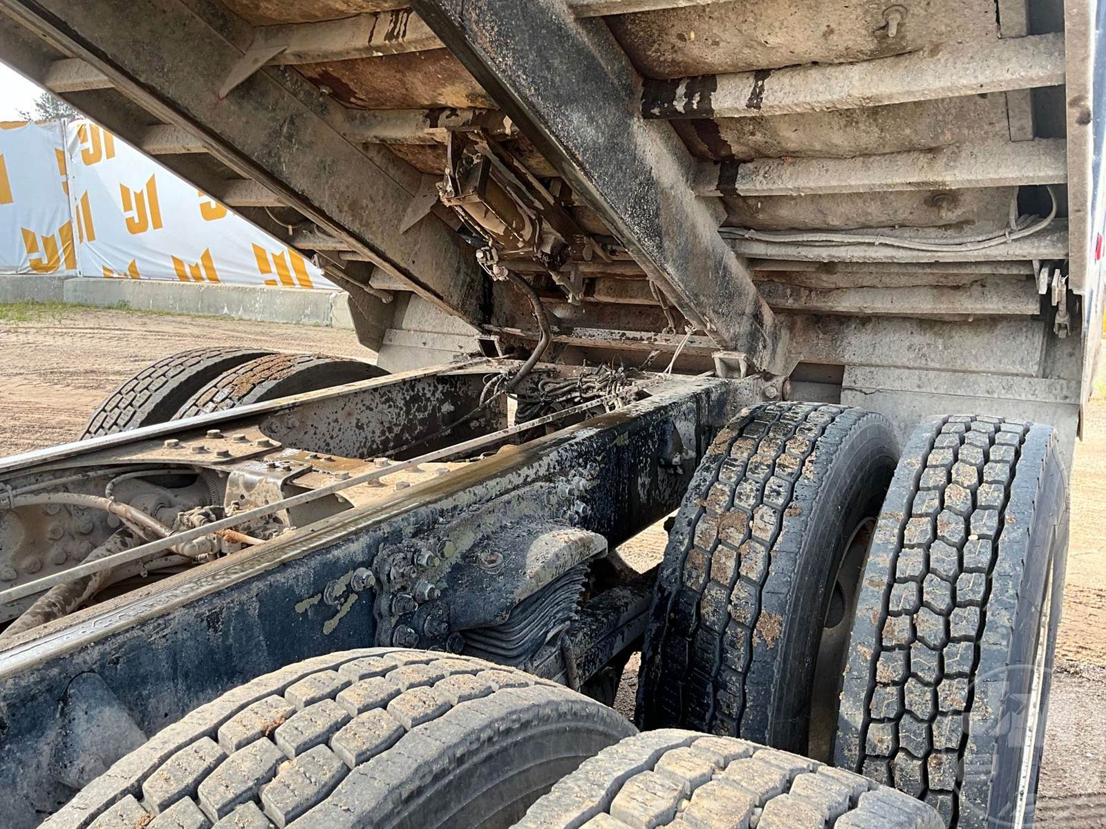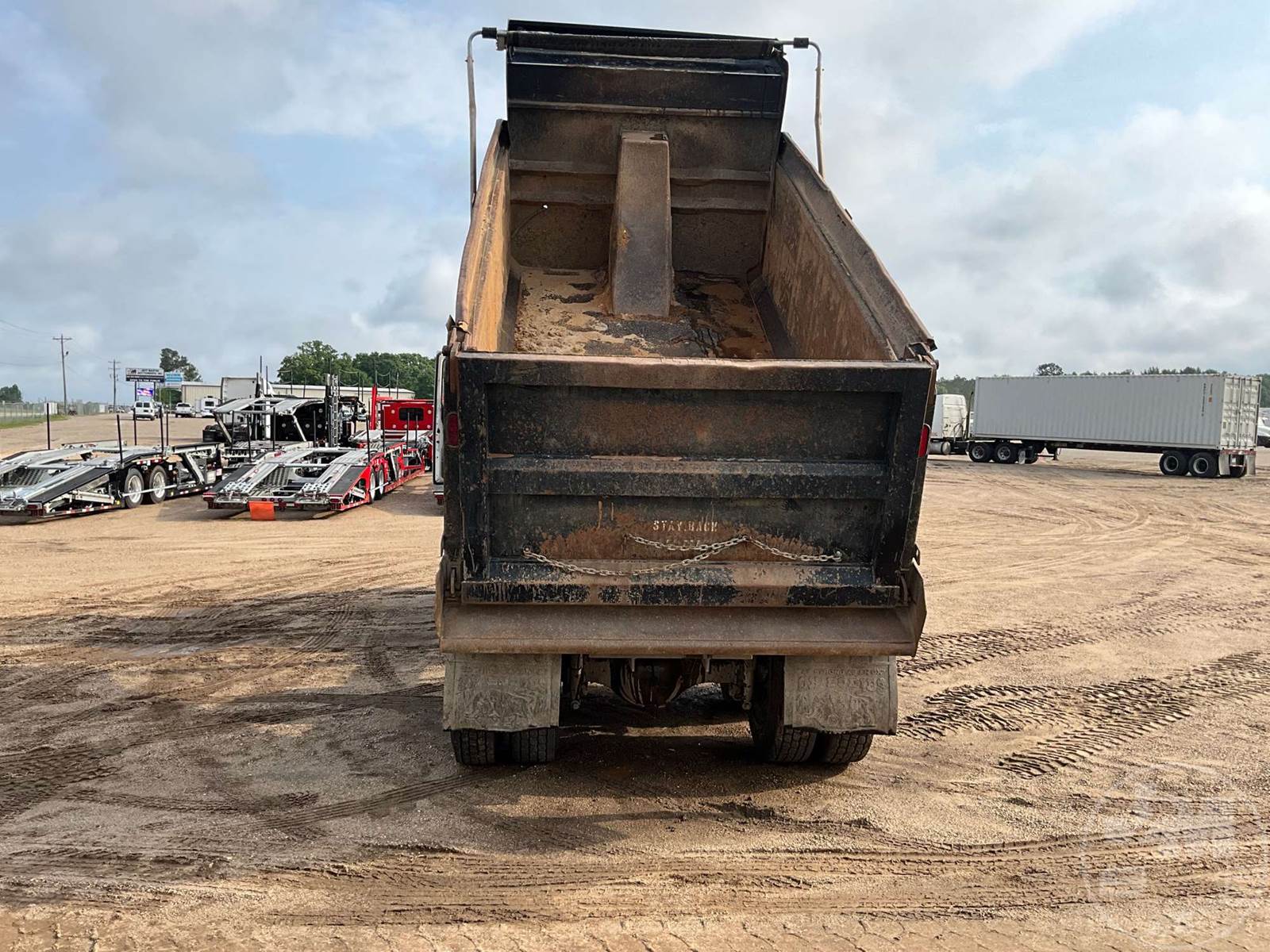 SINGLE AXLE DUMP TRUCK, CUMMINS, 550 DIESEL, AUTOMATIC, SPRING SUSPENSION, STEEL, DUMP BODY, TARP, MANUAL GATE, 19500 GVWR, ALUMINUM DISC...