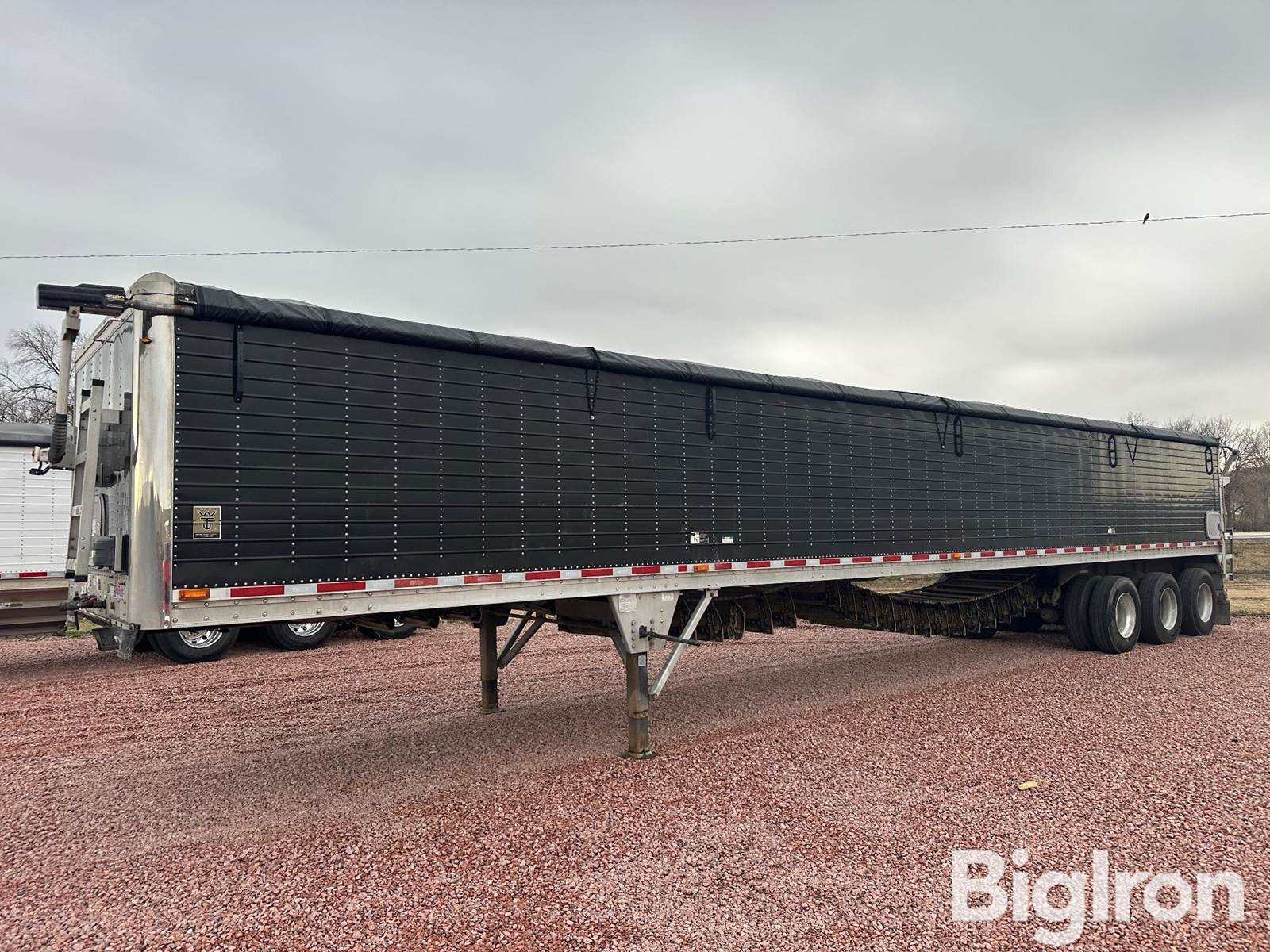 2015 Wilson DWBT-650B Tri/A Belt Trailer, Air Brakes, Belt Conveyor, 75,000lb GVWR, Electric Tarp, Front Hydraulic Couplers For Truck Hydraulics, 50' Length, 102" Width, 72" Sidewall Height, 48" Conveyor Belt Width W/57 Degree Slopes, Poly/Plastic Lined Hopper, Full Width Rear Mud Flap, Hydraulic Rear Door W/ Hydraulic Door Pins, 11R22.5 Tires W/Duals, Spring Suspension, LED Lighting Package, VIN: 1W14513S8F2264818