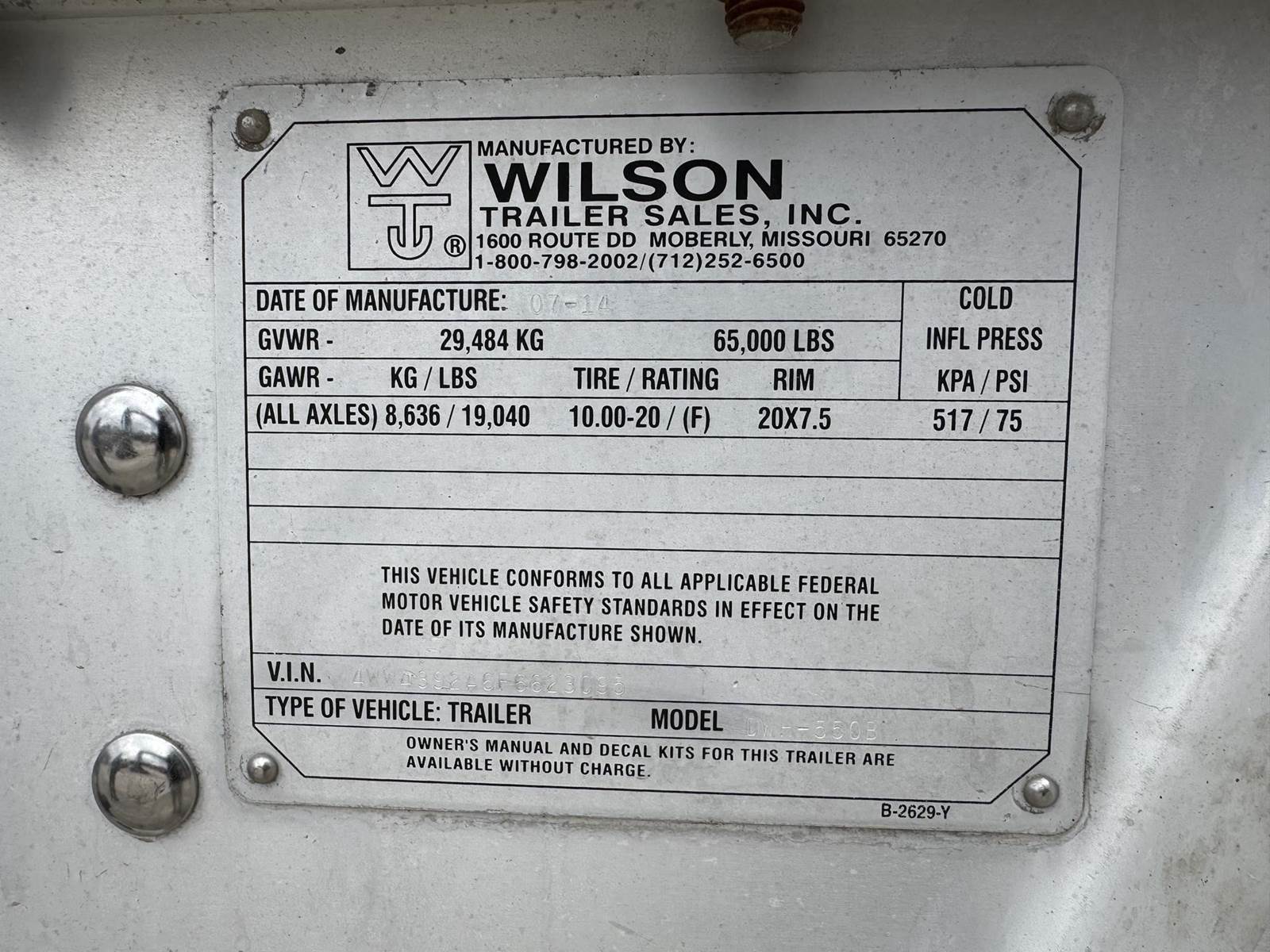 2015 WILSON DWH-550B, MANUAL TARP, AG HOPPERS, VIBRATORS, 11R24.5, REAR AND FRONT CATWALKS, REAR AND FRONT LADDERS, HOLLAND JACKS. REAR STAINLESS!!