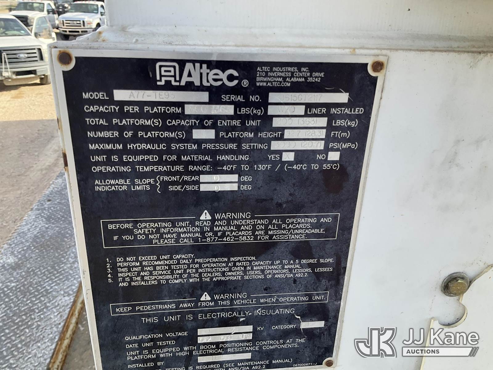 Altec A77T-E93, 98 ft, Articulating & Telescopic Material Handling Elevator Bucket Truck s/n 0615CT2117, with two man bucket, rear mounted on 2016 Freightliner M2 106 T/A Flatbed/Utility Truck, 8.9L diesel, 6X6, Auto, A/C, (36,968 miles) (Runs, Moves & Upper Operates) (Jump To Start, Check Engine Light On) This is a Titled Item NOTE: This unit is being sold AS IS/WHERE IS via Timed Auction and is located in Waxahachie, TX. Inspection & preview days for this unit are the 2 business days prior to the first day of items closing for this auction, item is located at 999 Solon Rd Waxahachie, TX 75165 and hours of operations are 8a-4p. For pre-sale questions, please contact Alex Bayless @ (469) 550-4938. (Manuals provided in cab) (Buyer is responsible for removal. Assistance by consignor or JJ Kane Auctions is not assured.)