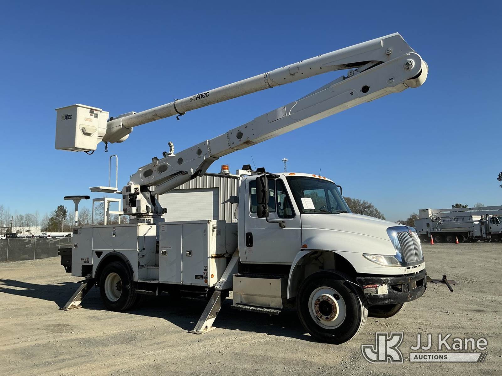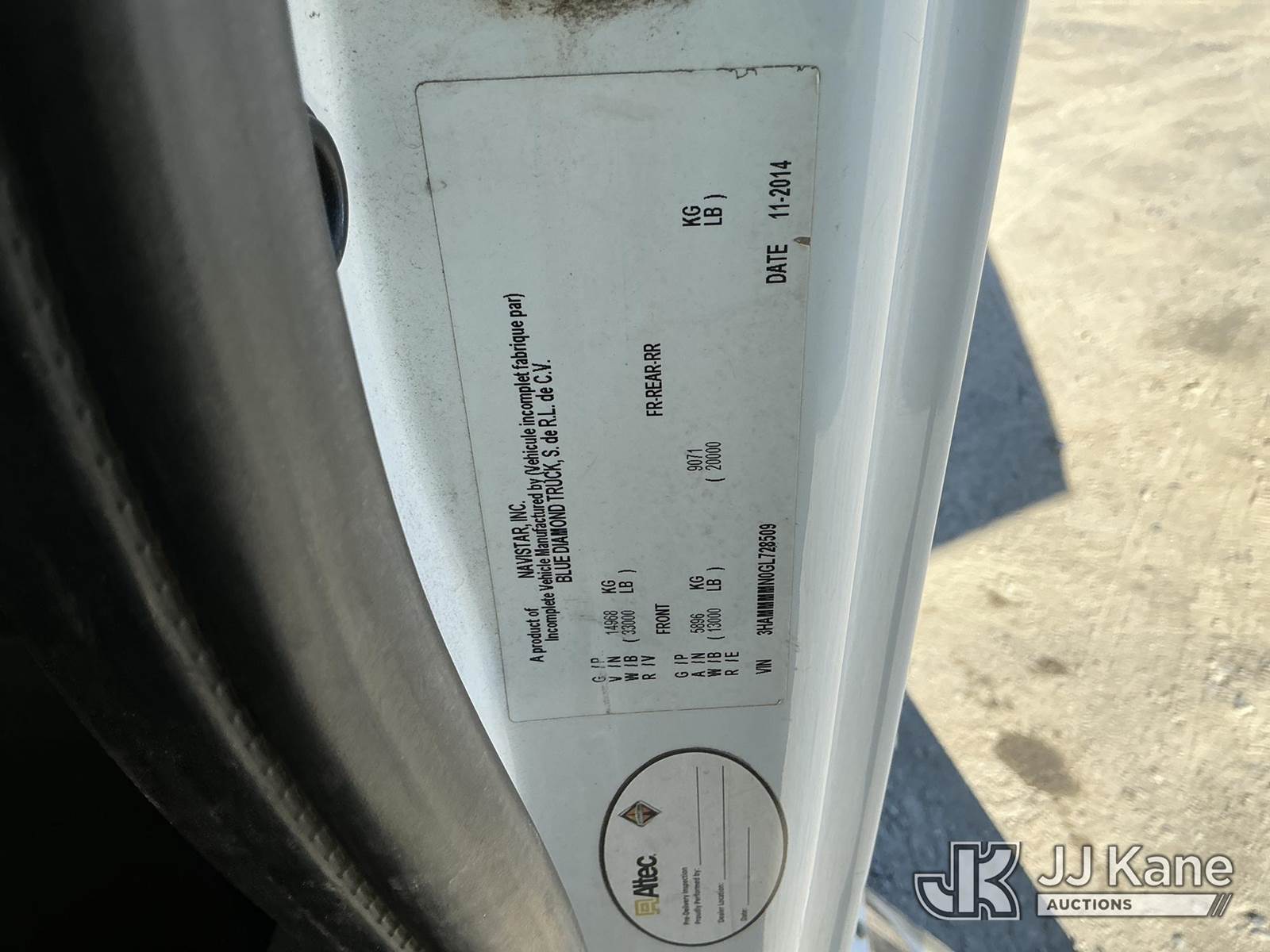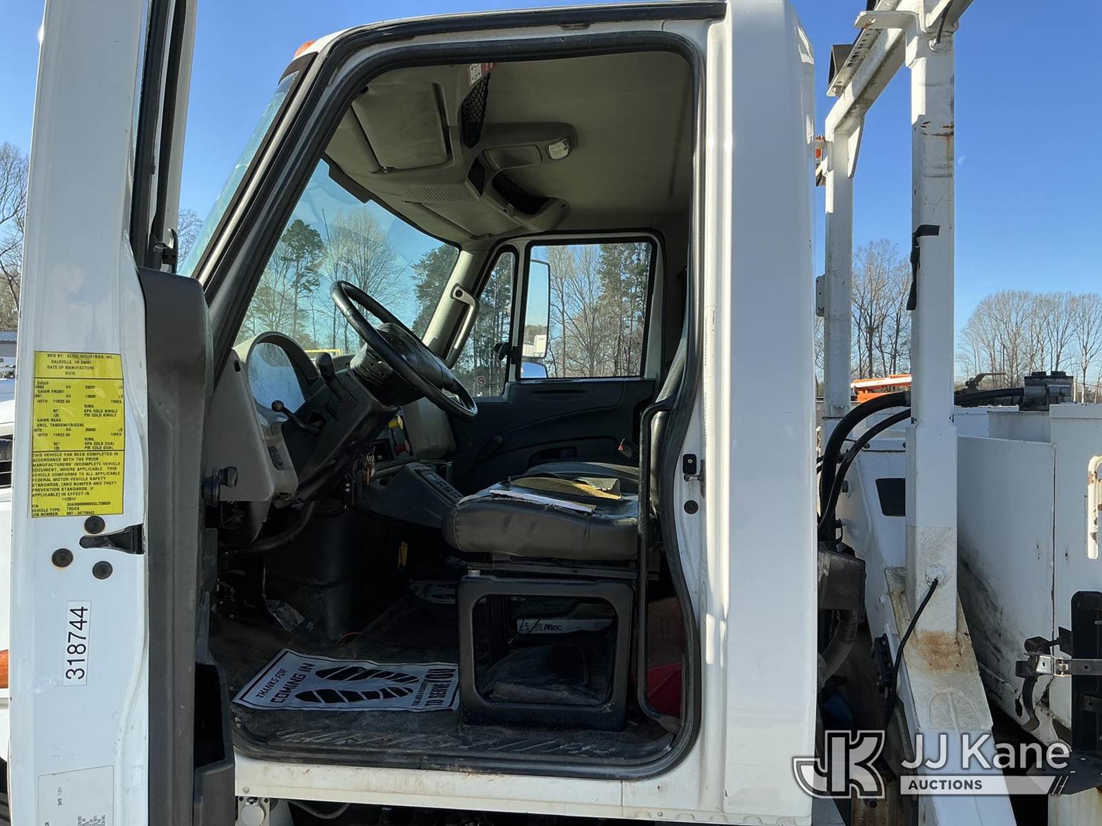 Altec AA55-MH, 61 ft, Material Handling Bucket Truck s/n 1214FH1634 (YEAR 2014), with two-man bucket, rear mounted on 2016 International DuraStar 4300 Utility Truck, Cummins 6.7L diesel, Auto, A/C, (83,114 miles) (Runs, Moves & Upper Operates) (Remounted Upper Unit YEAR 2015) (Check Engine Light On, Cracked Windshield, Exhaust Leak) (Seller States: Needs Rotation Bearing Kit) This is a Titled Item NOTE: This unit is being sold AS IS/WHERE IS via Timed Auction and is located in China Grove, NC. Inspection & preview days for this unit are the 2 business days prior to the first day of items closing for this auction, item is located at 820 E NC Hwy 152 China Grove, NC 28023 and hours of operations are 8a-4p. For pre-sale questions, please contact Office Staff @ (704) 674-1113. (Manuals provided in cab) (Buyer is responsible for removal. Assistance by consignor or JJ Kane Auctions is not assured.)
