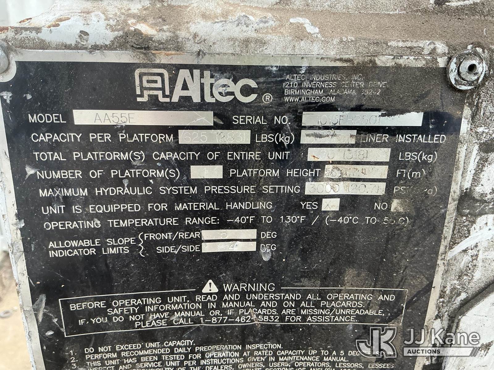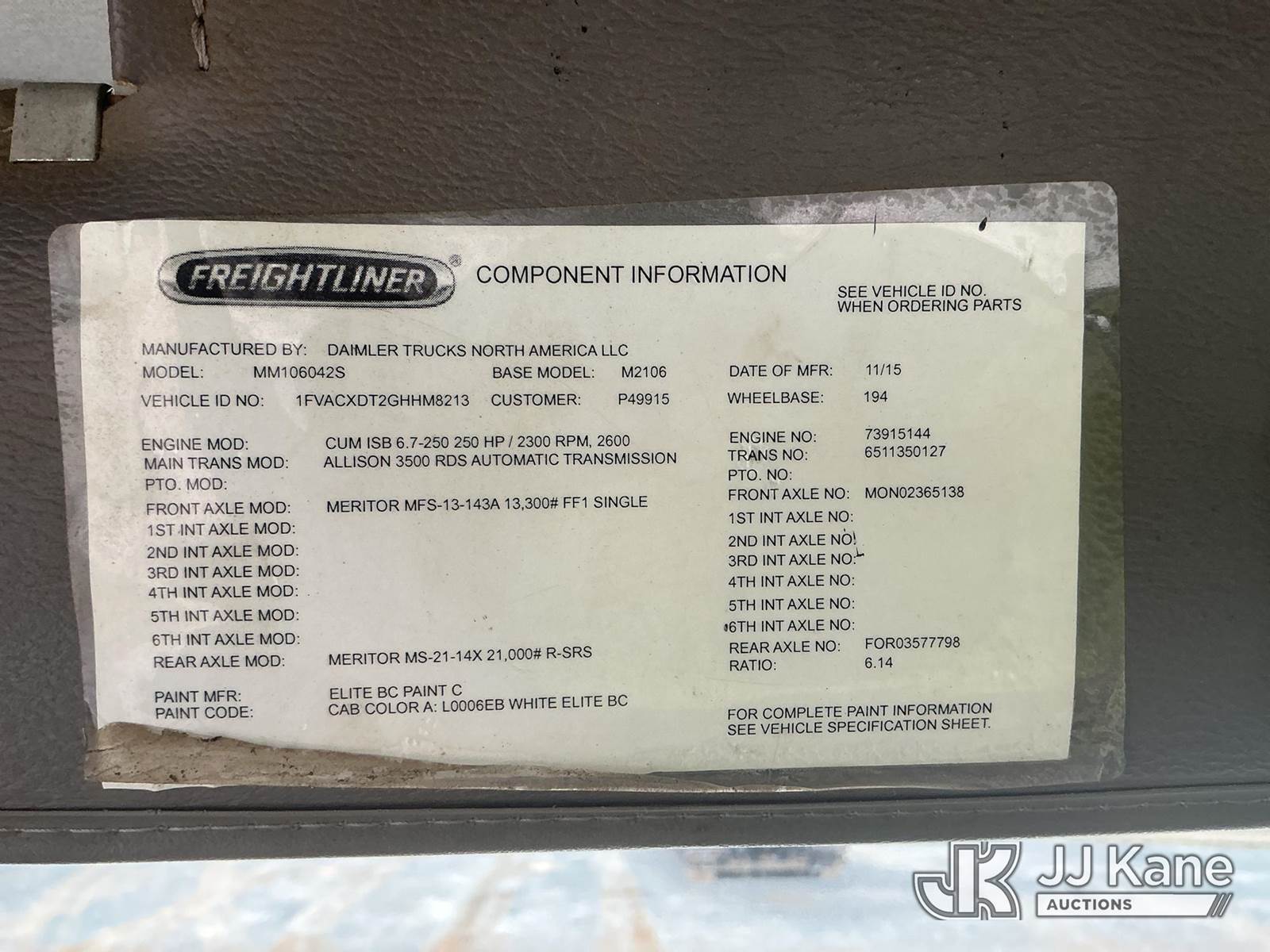Altec AA55E-MH, 60 ft, Material Handling Bucket s/n 1015FH2501, with two man bucket , rear mounted on 2016 Freightliner M2 106 Utility Truck, Cummins ISB 6.7L diesel, 4X2, Auto, A/C, (78,316 miles) (Duke Unit) (Runs, Moves & Upper Operates) (Transmission Light On ) This is a Titled Item NOTE: This unit is being sold AS IS/WHERE IS via Timed Auction and is located in China Grove, NC. Inspection & preview days for this unit are the 2 business days prior to the first day of items closing for this auction, item is located at 820 E NC Hwy 152 China Grove, NC 28023 and hours of operations are 8a-4p. For pre-sale questions, please contact Office Staff @ (704) 674-1113. (Manuals provided in cab) (Buyer is responsible for removal. Assistance by consignor or JJ Kane Auctions is not assured.)