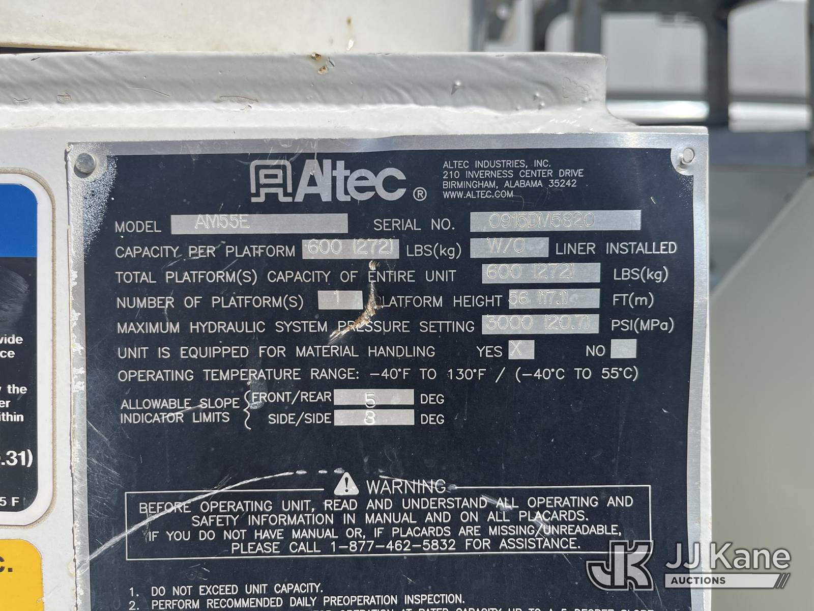 Altec AM55-E, 60 ft, Over-Center Material Handling Bucket Truck s/n 0915DM5820, with two-man bucket, mounted on 2016 Freightliner M2 106 Utility Truck, 6.7L L6 Diesel, 4X2, Automatic, A/C, (48,637 miles) (Runs, Moves & Operates) This is a Titled Item NOTE: This unit is being sold AS IS/WHERE IS via Timed Auction and is located in Smock, PA. Inspection & preview days for this unit are the 2 business days prior to the first day of items closing for this auction, item is located at 1000 Franklin Dr Smock, PA 15480 and hours of operations are 7:00 am to 3:30 pm. For pre-sale questions, please contact Alaina White @ (724) 562-2575 or Alaina.White@JJKane.com. (Manuals provided in cab) (Buyer is responsible for removal. Assistance by consignor or JJ Kane Auctions is not assured.)