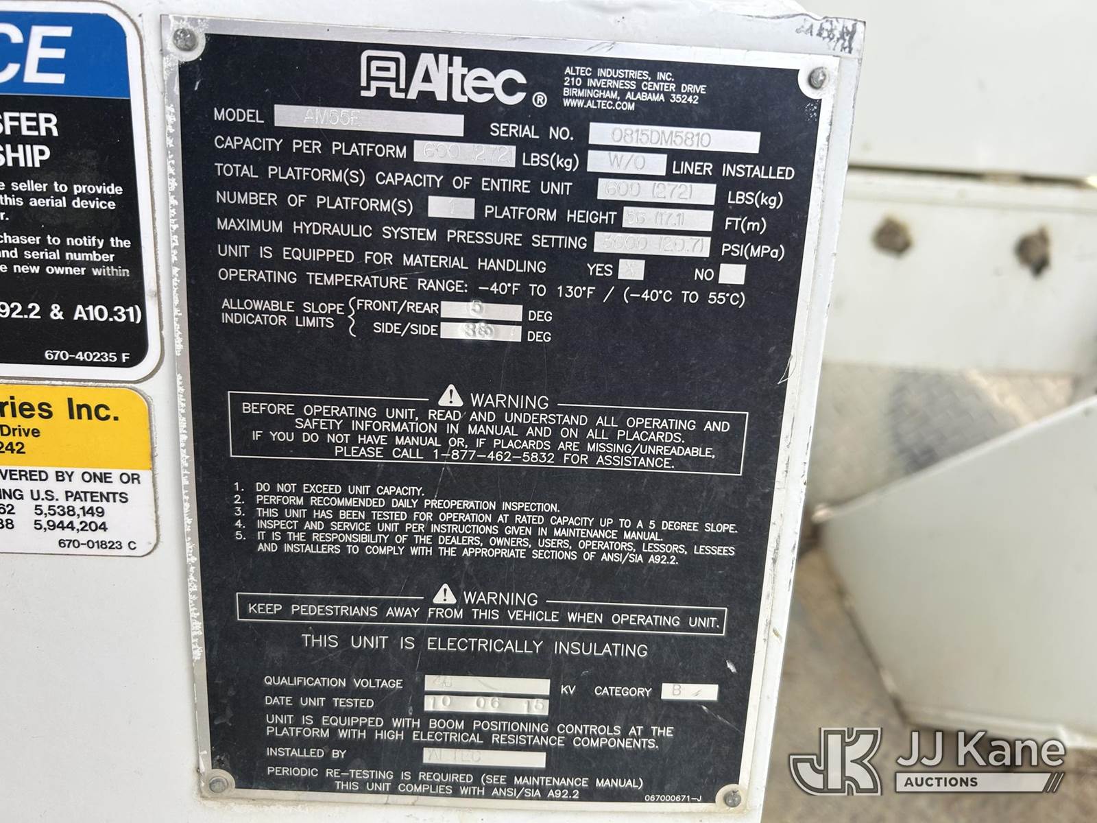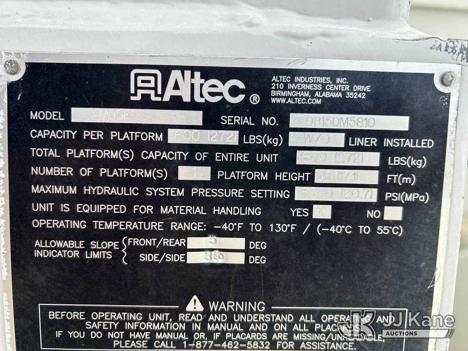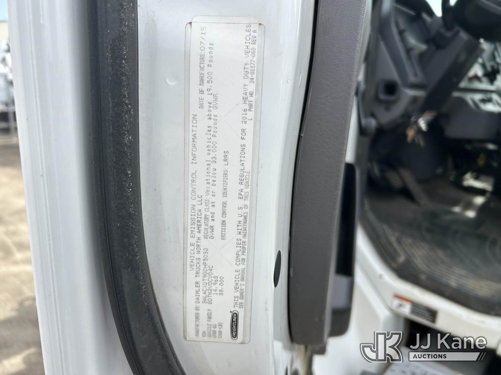 Altec AM55-E, 61 ft, Bucket Truck s/n 0815DM5810, with Two-Man Bucket, rear mounted on 2016 Freightliner M2 106 Utility Truck, 6.7L L6 DIESEL 4X2, Auto, A/C, with Front Bumper Winch, (75,008 miles) 3577 PTO hours (Runs, Moves & Upper Operates) (Outriggers Operate) This is a Titled Item NOTE: This unit is being sold AS IS/WHERE IS via Timed Auction and is located in Conway, AR. Inspection & preview days for this unit are by appointment only; please contact us at contact@jjkane.com or 84-Go-JJKane for more details. (Missing manuals, See Auction Company for Manufacturers Information to obtain manuals) (Buyer is responsible for removal. Assistance by consignor or JJ Kane Auctions is not assured.)