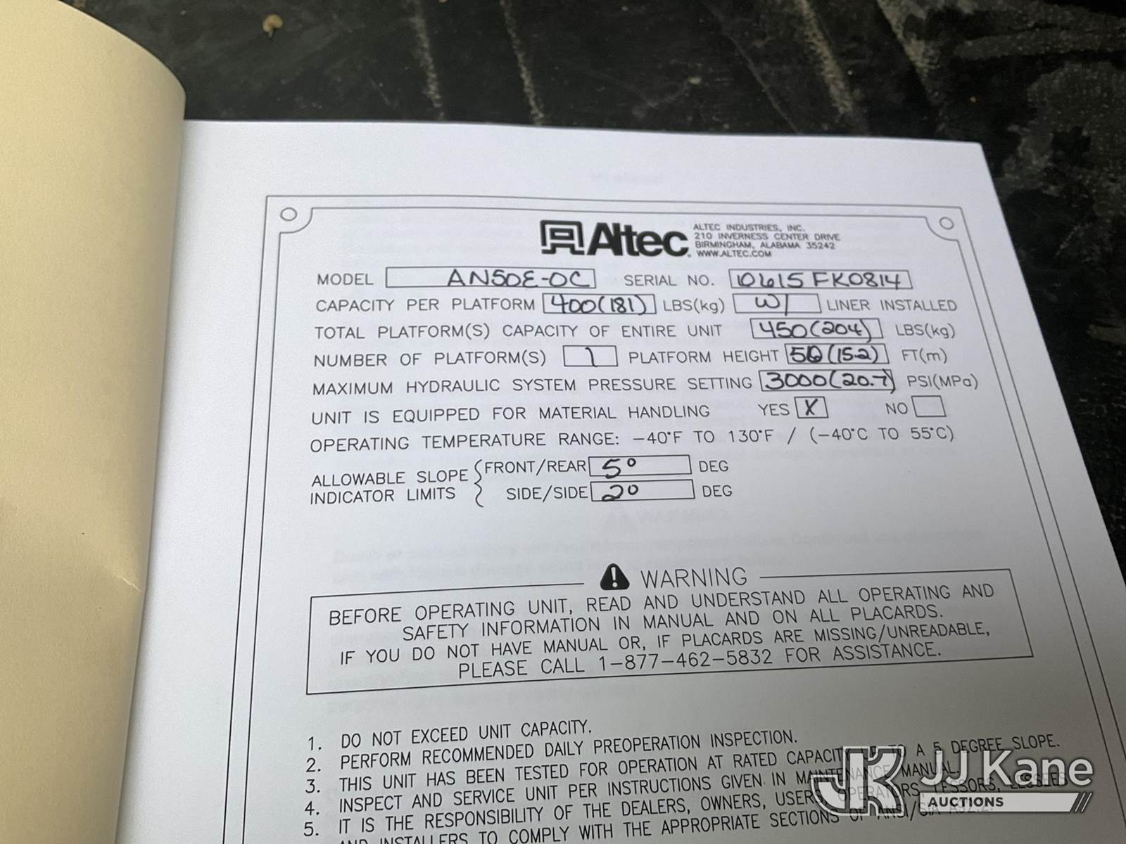 Altec AN50E-OC, 55 ft, Material Handling Bucket Truck s/n 0615EK0841, with Single Man Bucket & 4 Outriggers , rear mounted on 2016 Freightliner M2 106 Extended-Cab Utility Truck, 6.7L Auto, diesel, A/C, with Front Winch, (102,187 miles) (Jump To Start, Runs, Moves & Upper Operates, Body & Rust Damage ) (Reads 35,644 hours) This is a Titled Item NOTE: This unit is being sold AS IS/WHERE IS via Timed Auction and is located in Rome, NY. Inspection & preview days for this unit are the 2 business days prior to the first day of items closing for this auction, item is located at 5835 Success Dr Rome, NY 13440 and hours of operations are 8a-4p. For pre-sale questions, please contact Ryan Jackson @ (315) 749-3790 or Ryan.Jackson@jjkane.com. (Manuals provided in cab) Sales Tax Collected Based on Residency (Buyer is responsible for removal. Assistance by consignor or JJ Kane Auctioneers is not assured.)