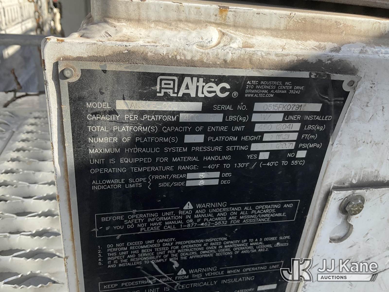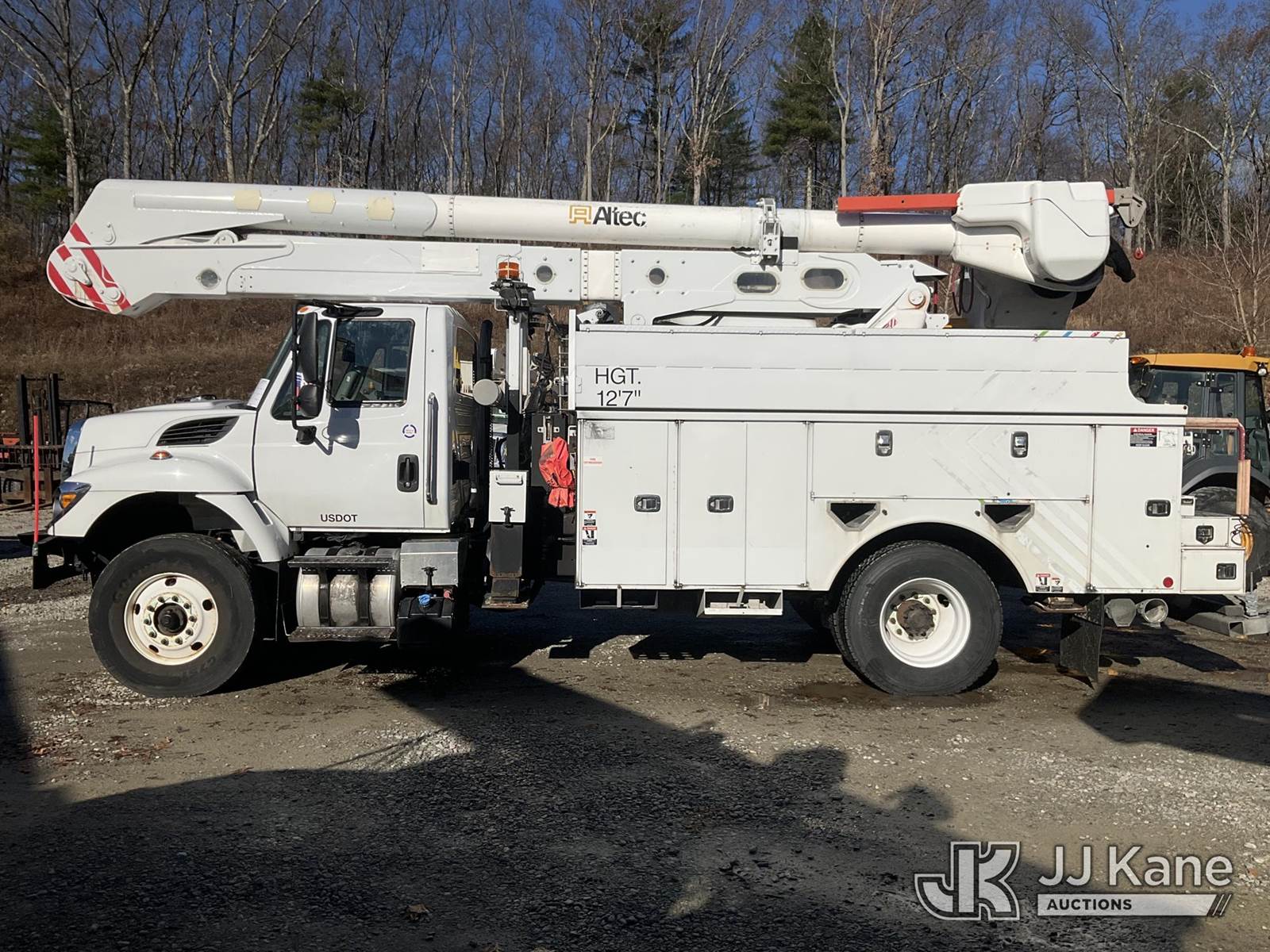 Altec AN50E-OC, 55 ft, Material Handling Bucket Truck s/n 0515FK0791, with single-man bucket & 4 hyd outriggers, rear mounted on 2016 International 7400 Utility Truck, 9.3L Auto, diesel, A/C, (73,417 miles) (Runs, Moves & Upper Operates) (Check Engine Light On) (Reads 10,169 hours) This is a Titled Item NOTE: This unit is being sold AS IS/WHERE IS via Timed Auction and is located in Shrewsbury, MA. Inspection & preview days for this unit are the 2 business days prior to the first day of items closing for this auction, item is located at 11 Fortune Blvd Shrewsbury, MA 01545 and hours of operations are 8a-4p. For pre-sale questions, please contact Rob Gifford @ (508) 864-4126. (Manuals provided in cab) Sales Tax Collected Based on Residency (Buyer is responsible for removal. Assistance by consignor or JJ Kane Auctioneers is not assured.)