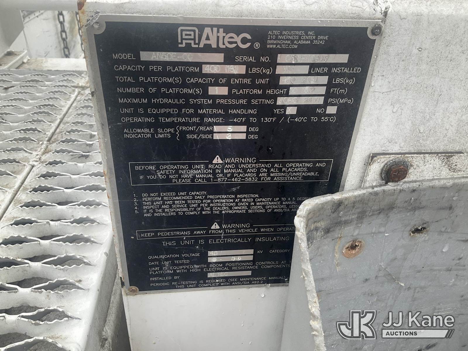 Altec AN50E-OC, 55 ft, Material Handling Bucket Truck s/n 0515FK0805, with Single Man Bucket & 4 Outriggers , rear mounted on 2016 Freightliner M2 106 Extended-Cab Utility Truck, 6.7L diesel, Auto, A/C, (94,087 miles) (Runs, Moves & Upper Operates ) (Reads 10,258 hours) This is a Titled Item NOTE: This unit is being sold AS IS/WHERE IS via Timed Auction and is located in Rome, NY. Inspection & preview days for this unit are the 2 business days prior to the first day of items closing for this auction, item is located at 5835 Success Dr Rome, NY 13440 and hours of operations are 8a-4p. For pre-sale questions, please contact Ryan Jackson @ (315) 749-3790 or Ryan.Jackson@jjkane.com. (Manuals provided in cab) Sales Tax Collected Based on Residency (Buyer is responsible for removal. Assistance by consignor or JJ Kane Auctions is not assured.)